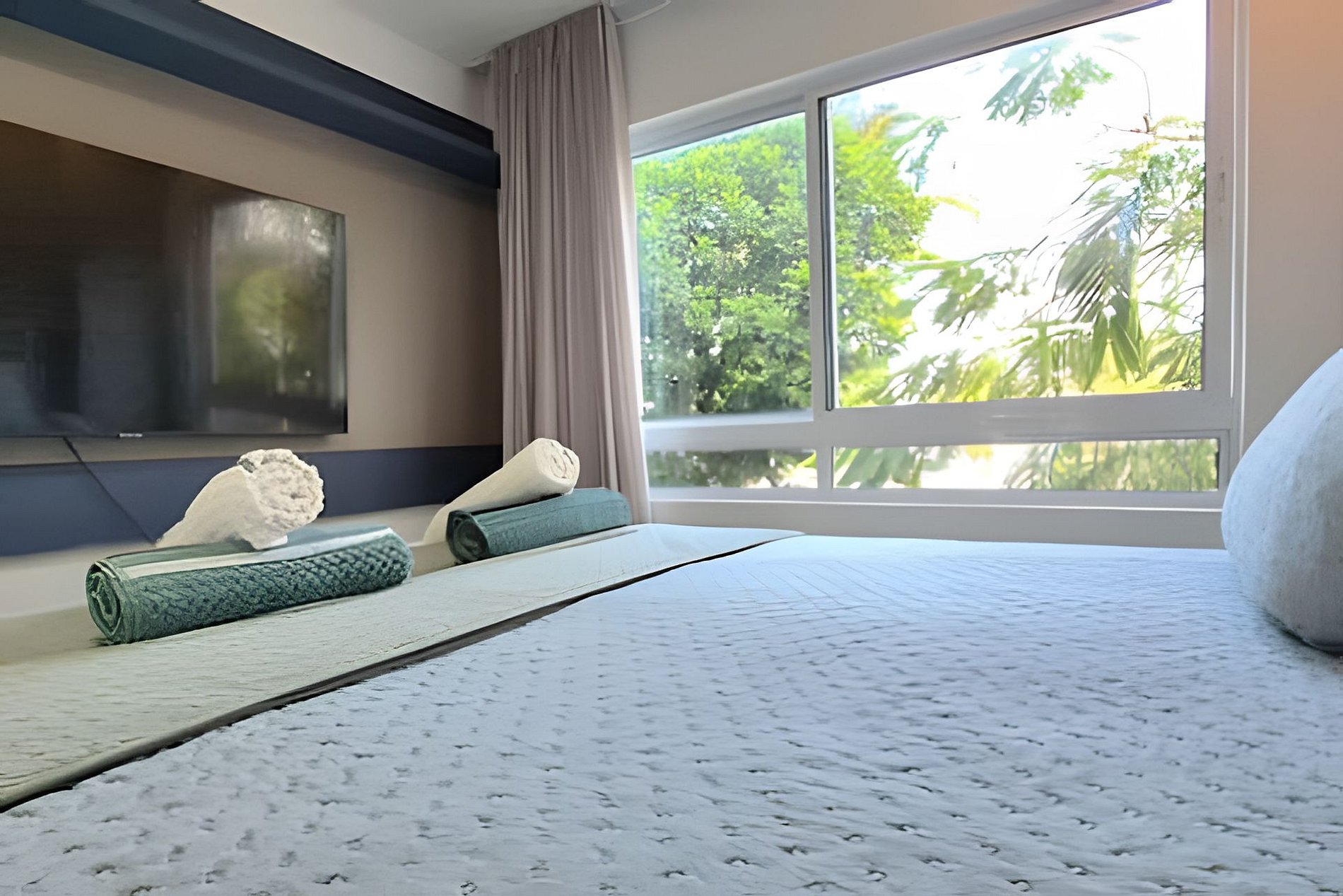 Além de estar localizado no centro de Porto de Galinhas e ter tudo ao lado caminhando, poderá desfrutar de uma área de lazer pensada no seu conforto e bem estar. Piscina adulto e infantil, churrasqueira, sala de ginástica com aparelhos, lavanderia, brinquedoteca e estacionamento rotativo. Tudo o que precisa após um dia de praia e passeio.