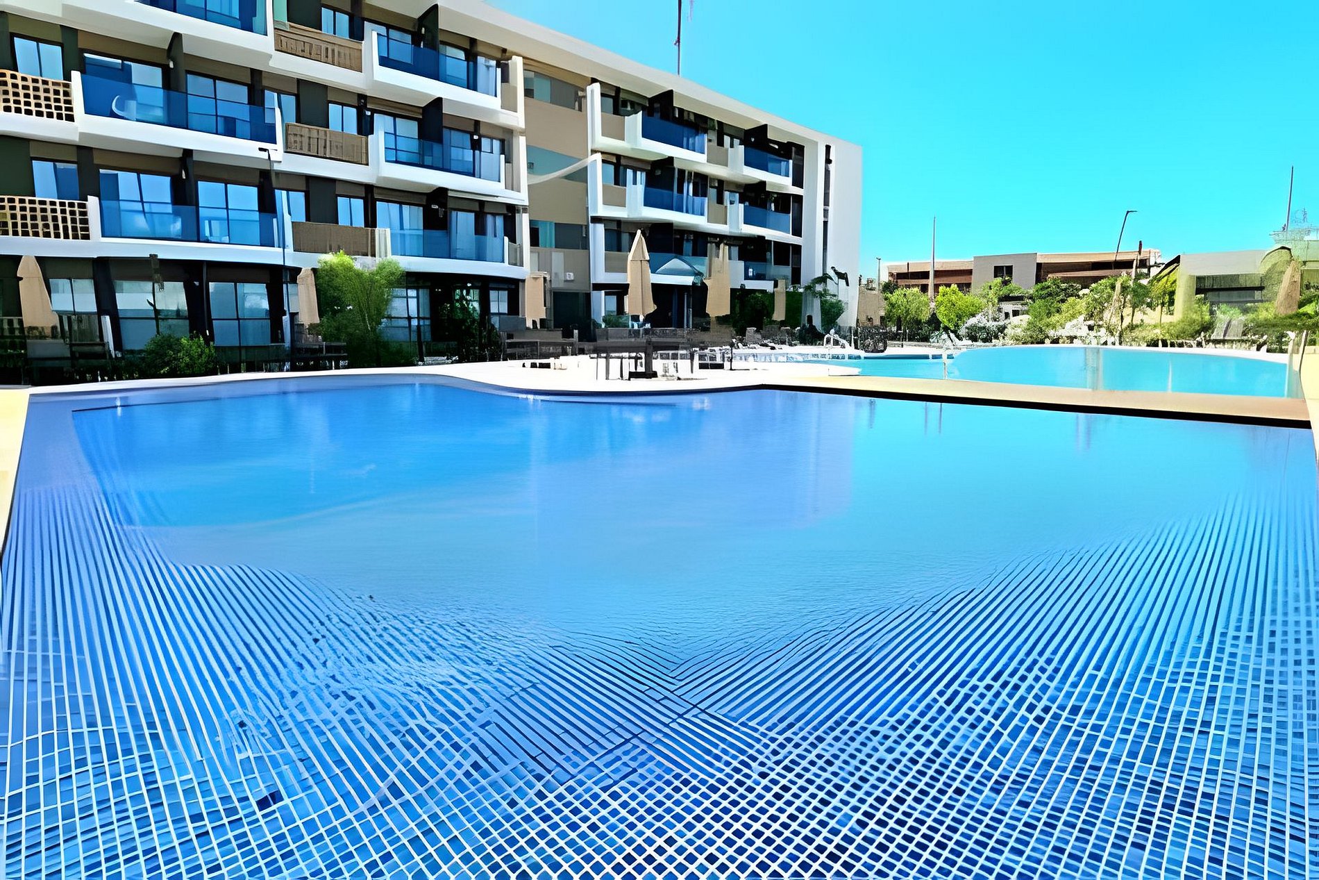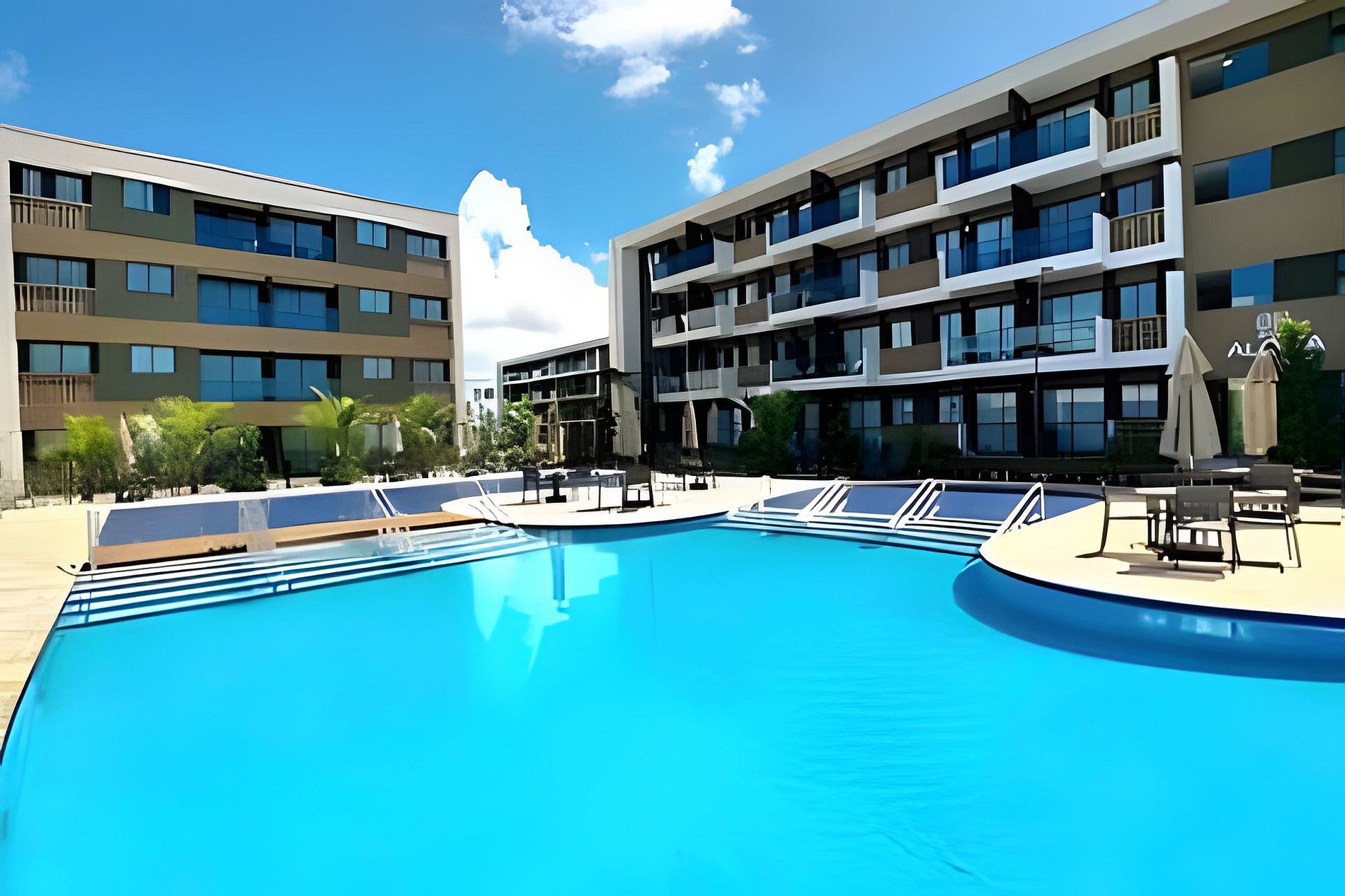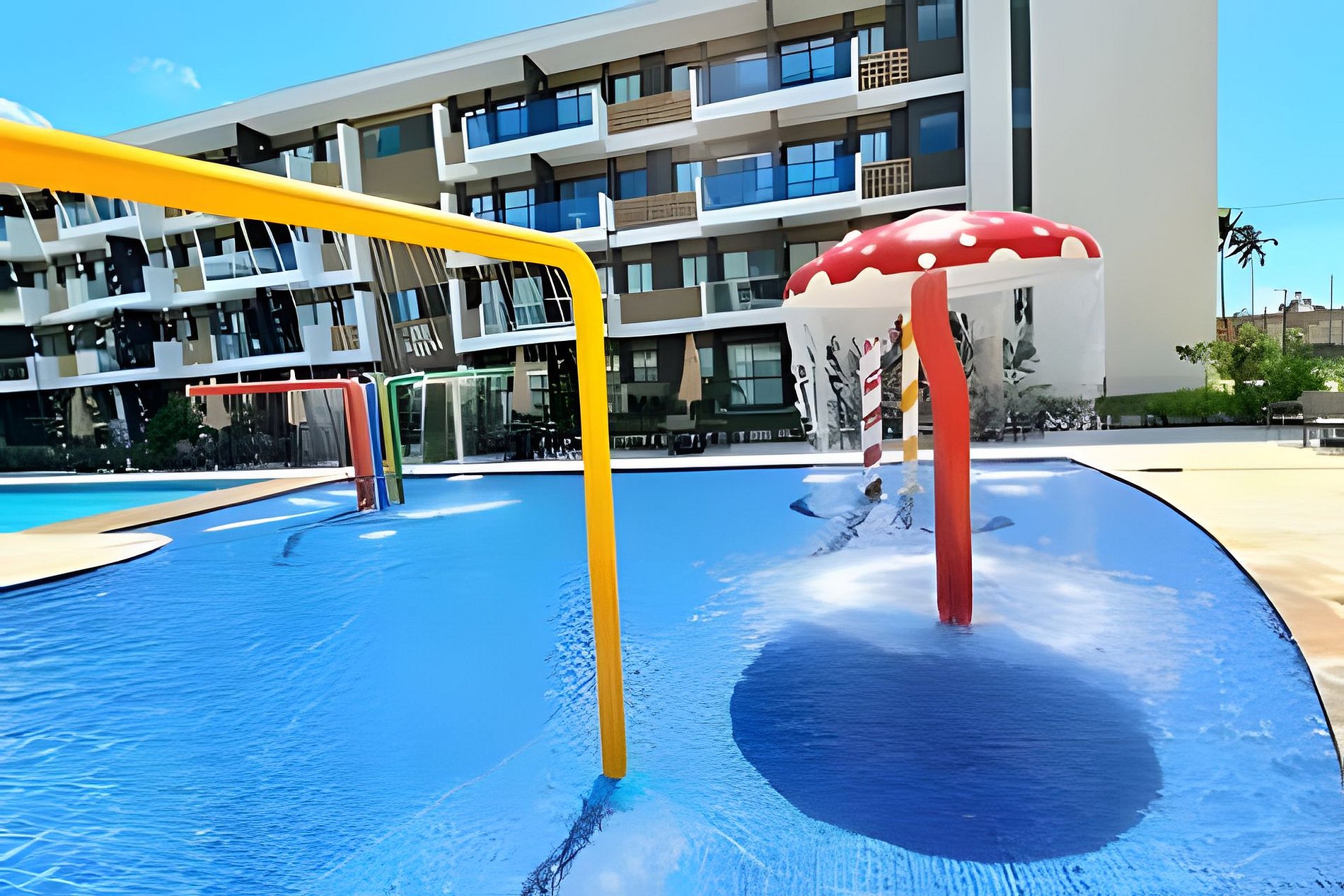 Este é um condomínio Resort, com varias piscinas, piscina com raia para um nado mais longo, piscina rasa e mais funda para lazer, piscina com brinquedos com parques aquáticos, campo de futebol, academia, ping-pong, sinuca, brinquedoteca, restaurante, conveniência entre outras coisas. Temos duas unidades extamente iguais, tipologia decoração, e roupa de cama mesa e banho
