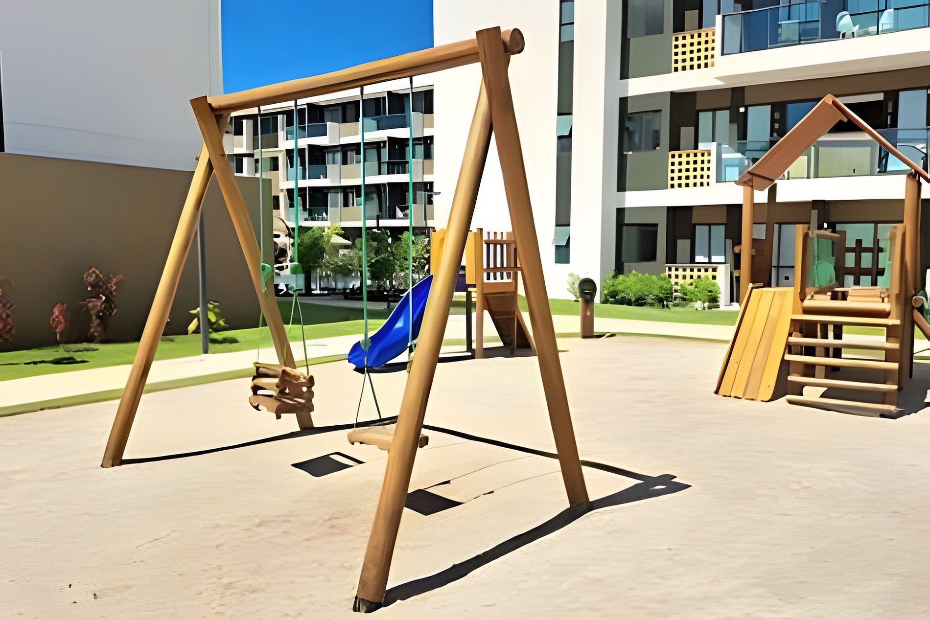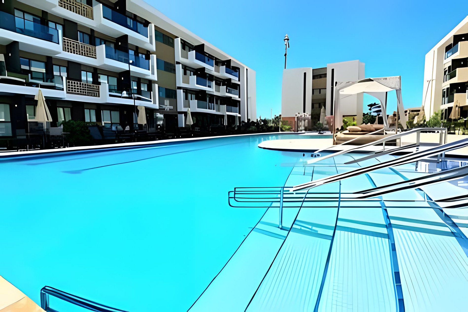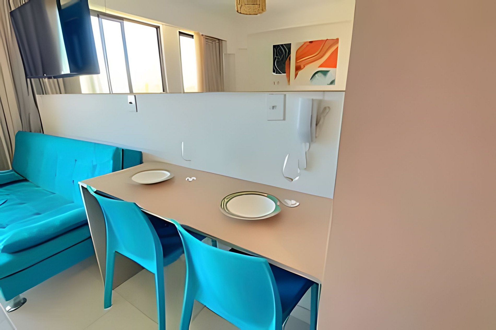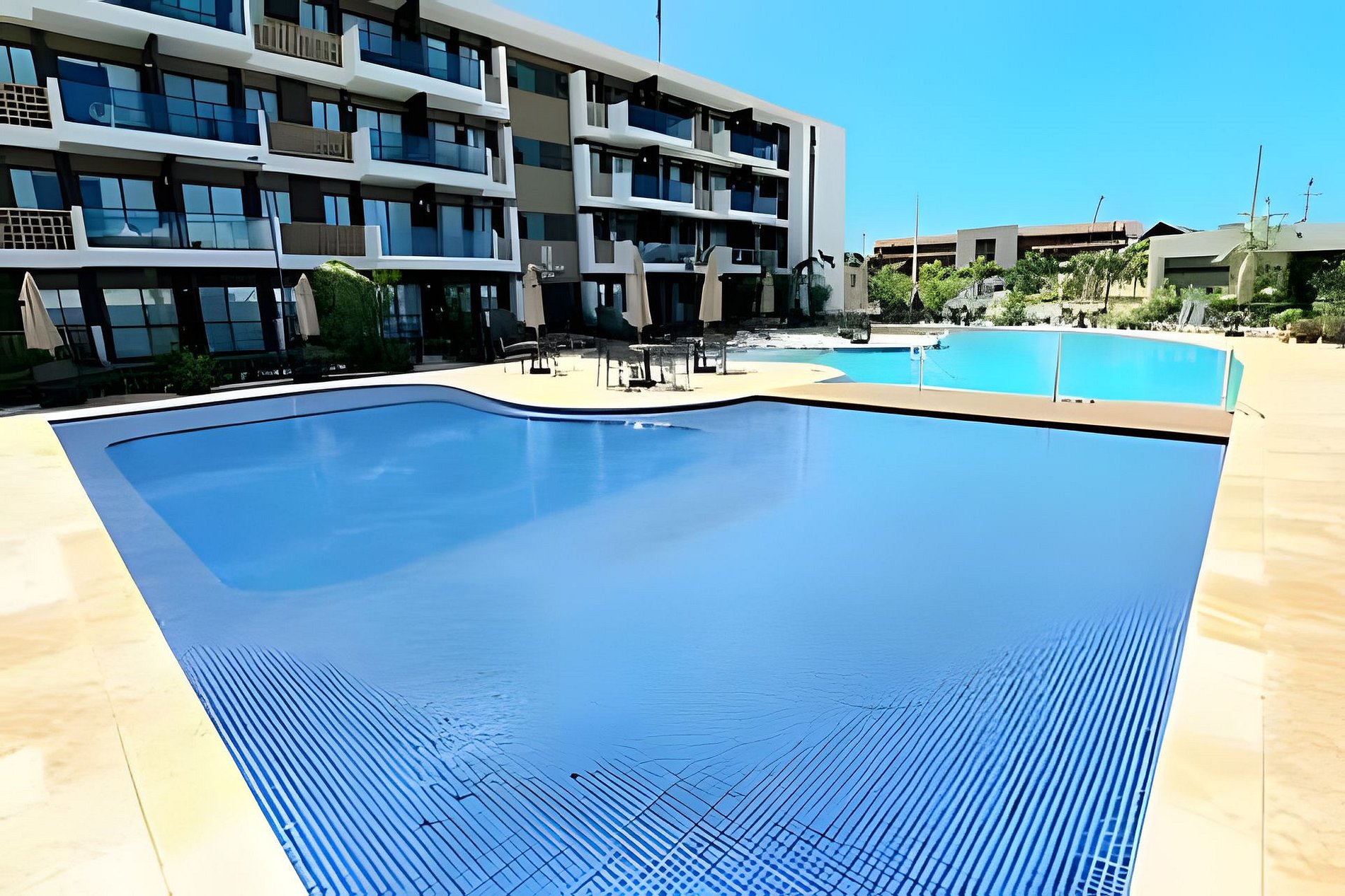 Este é um condomínio Resort, com varias piscinas, piscina com raia para um nado mais longo, piscina rasa e mais funda para lazer, piscina com brinquedos com parques aquáticos, campo de futebol, academia, ping-pong, sinuca, brinquedoteca, restaurante, conveniência entre outras coisas. Temos duas unidades extamente iguais, tipologia decoração, e roupa de cama mesa e banho
