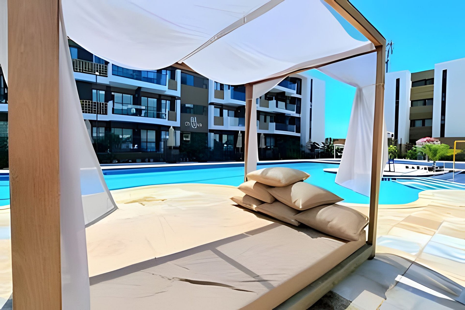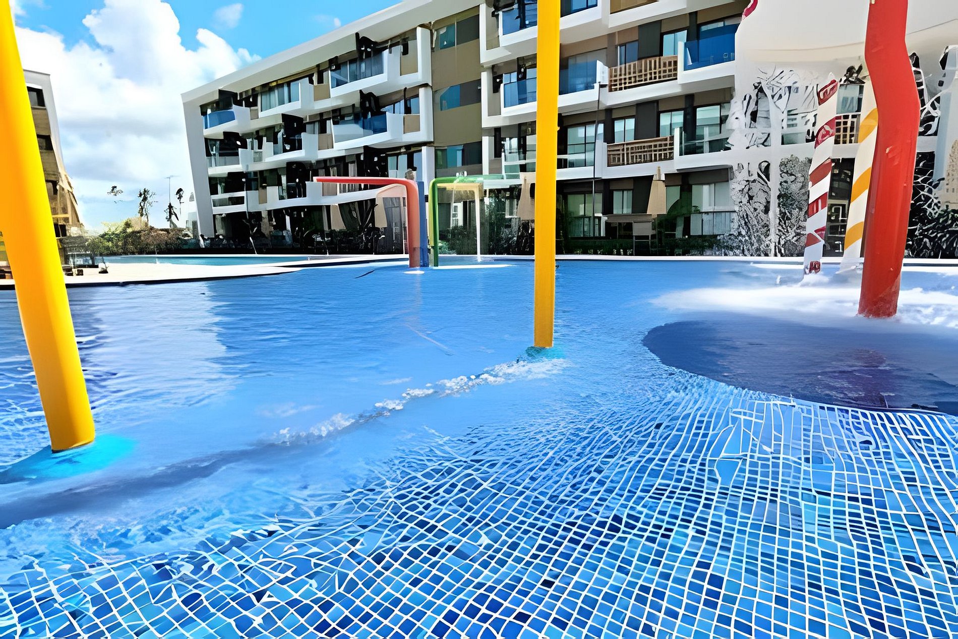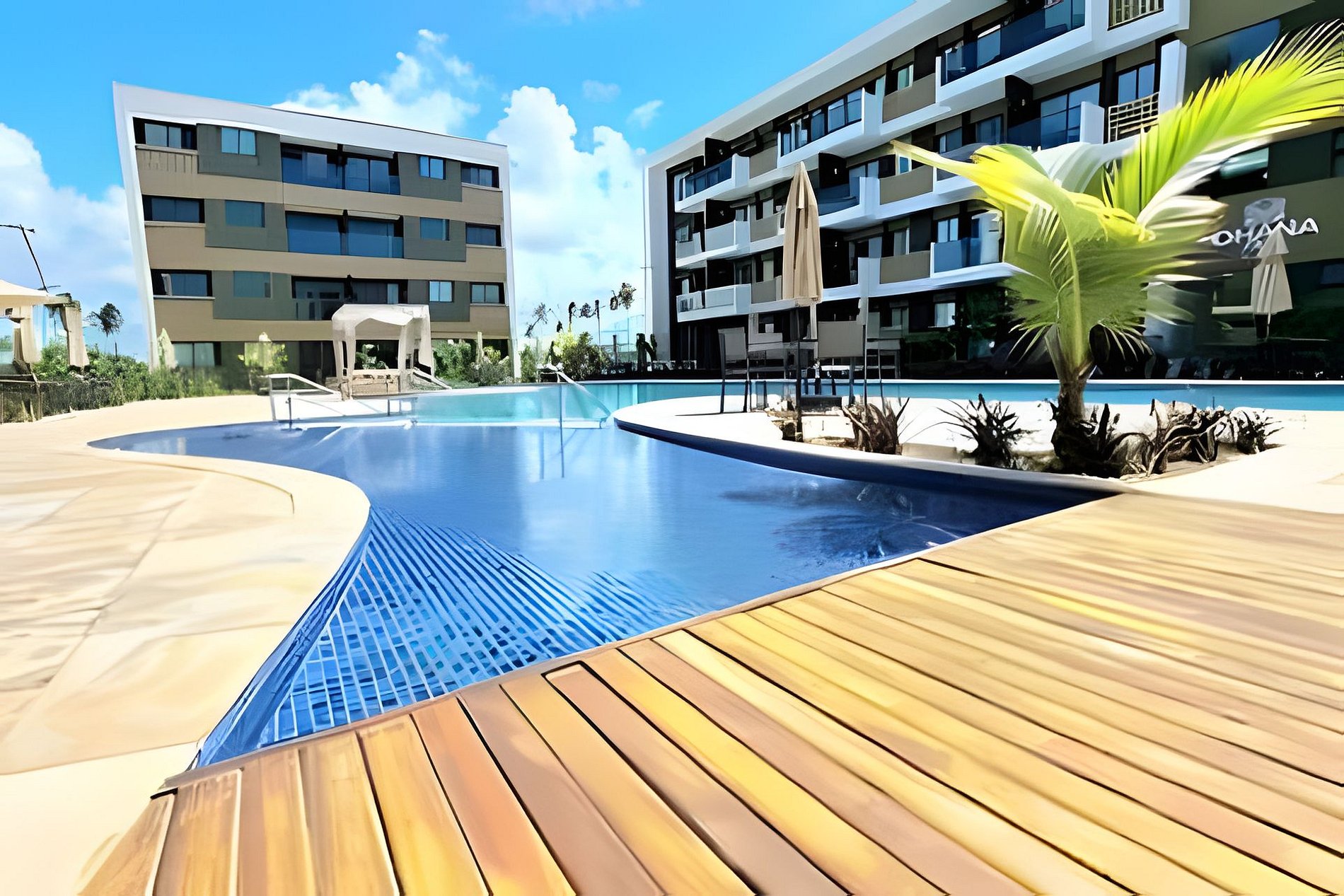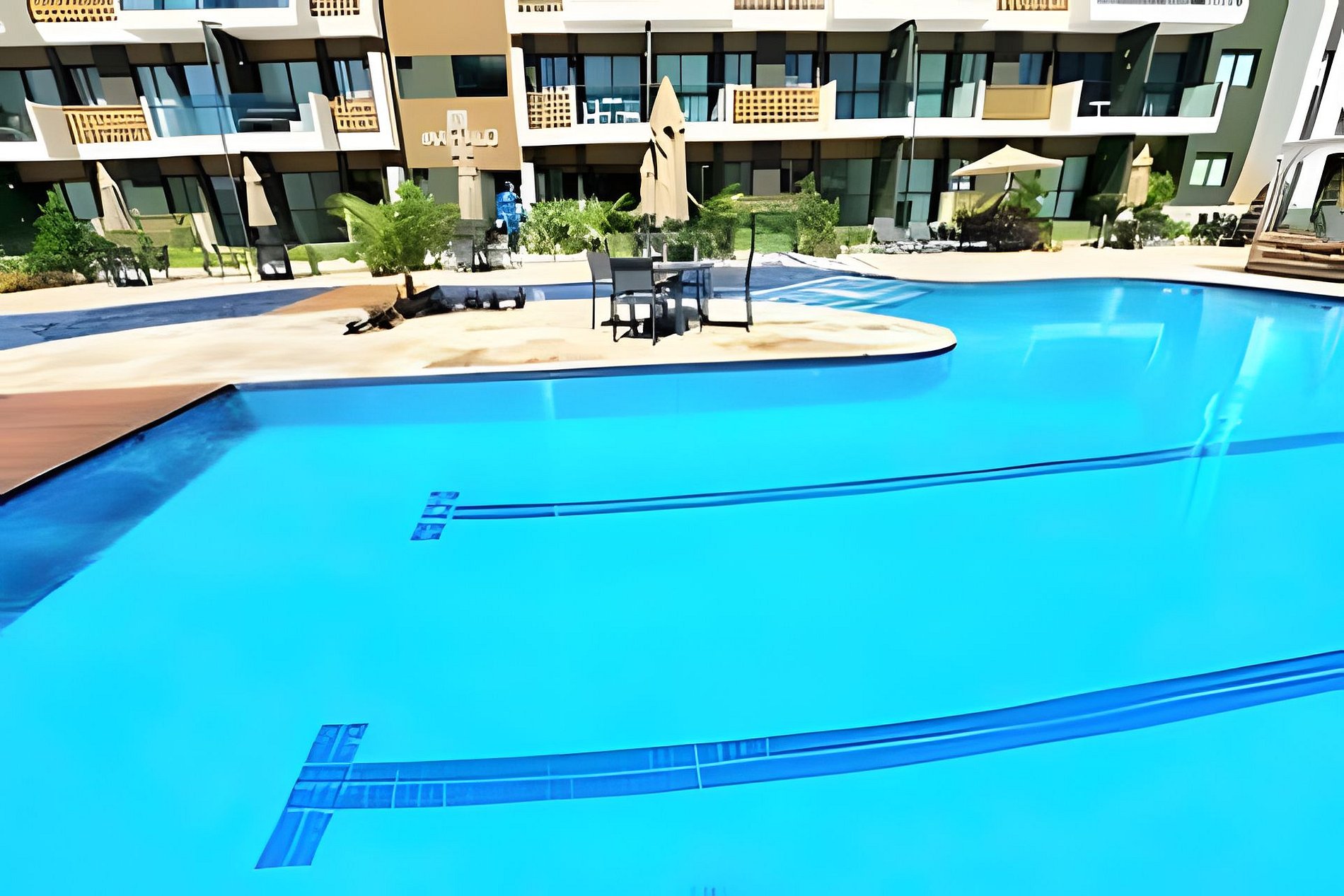 Este é um condomínio Resort, com varias piscinas, piscina com raia para um nado mais longo, piscina rasa e mais funda para lazer, piscina com brinquedos com parques aquáticos, campo de futebol, academia, ping-pong, sinuca, brinquedoteca, restaurante, conveniência entre outras coisas. Temos duas unidades extamente iguais, tipologia decoração, e roupa de cama mesa e banho