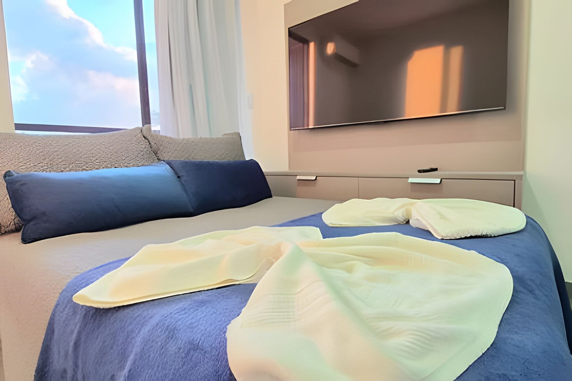 Espaço é novíssimo, tudo do bom e do melhor, os melhores produtos e materias do mecardo, decorado e ambientizado por profissionais, para tornar o apartamento confortável, belo e inteligente com tudo que existe de melhor, colchões de alta qualidade, lençóes de algadão 250 fios, sala e quarto com ar-condicionado, conforto e praticidade a 50 metros do mar.