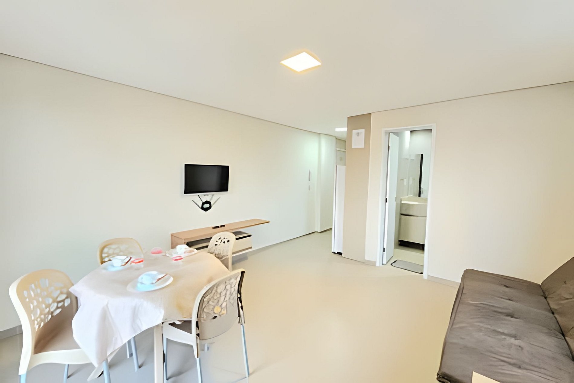 O apartamento conta com ar-condicionado, televisão, cozinha e tudo para um cotidiano normal, fica em uma excelente localização, em uma rua tranquila onde só se ouve o som do mar, perfeito para um sono revitalizante.
