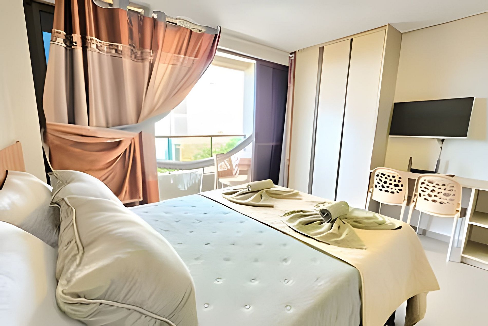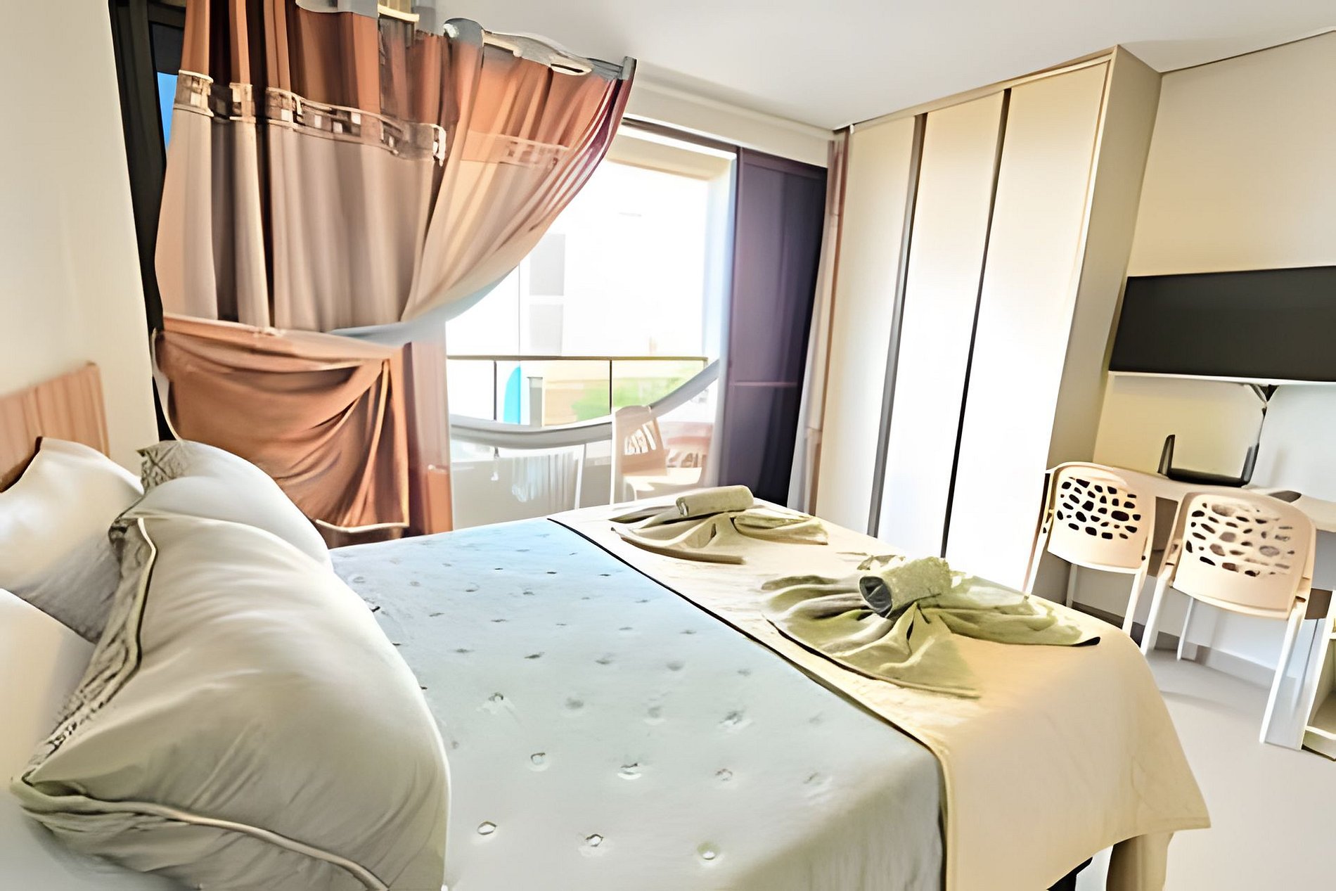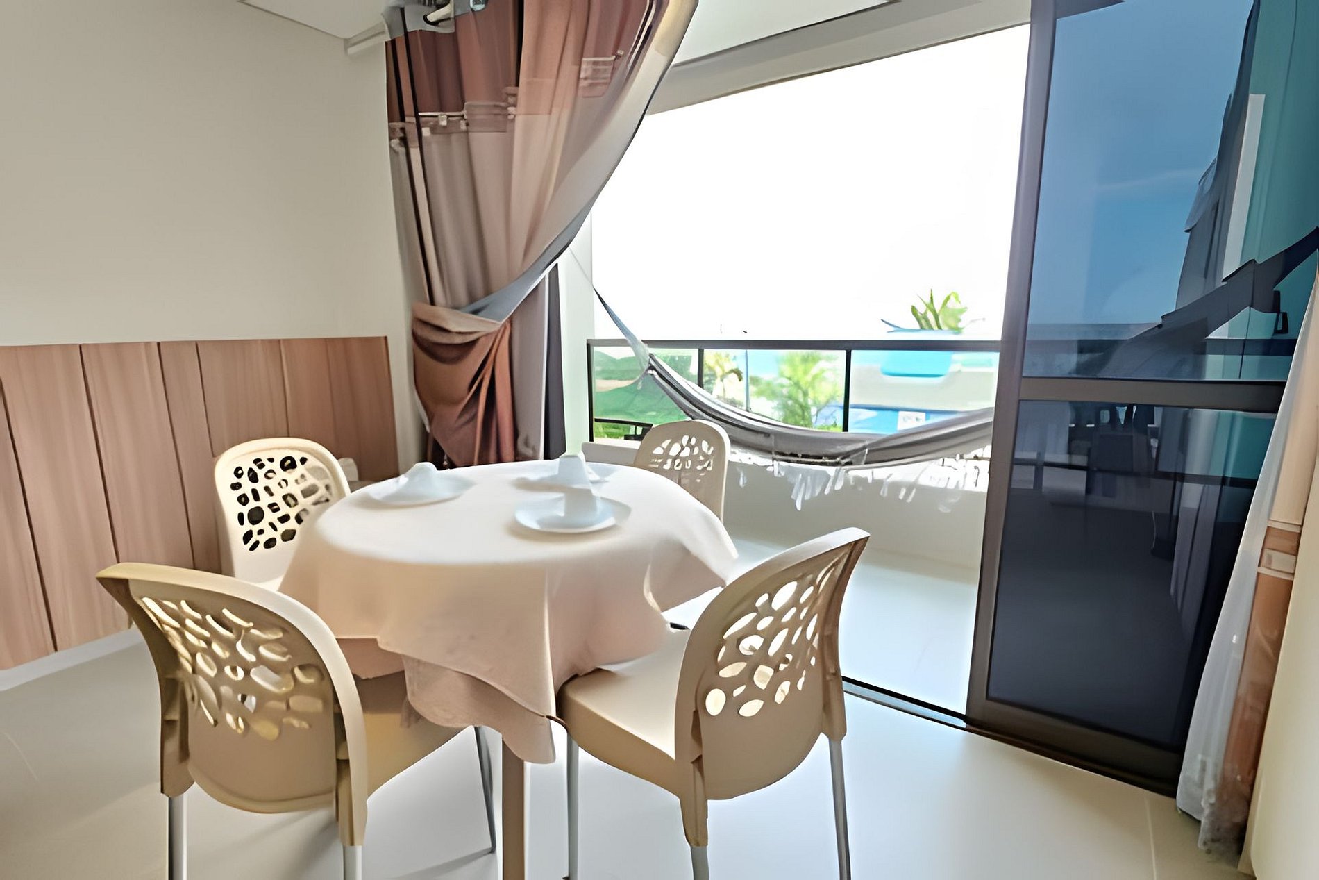 Apartamento bem amplo, projeto moderno, inteligente e prático e fica 60 metros da praia. Está disponível e ficariámos felizes com sua reserva.
