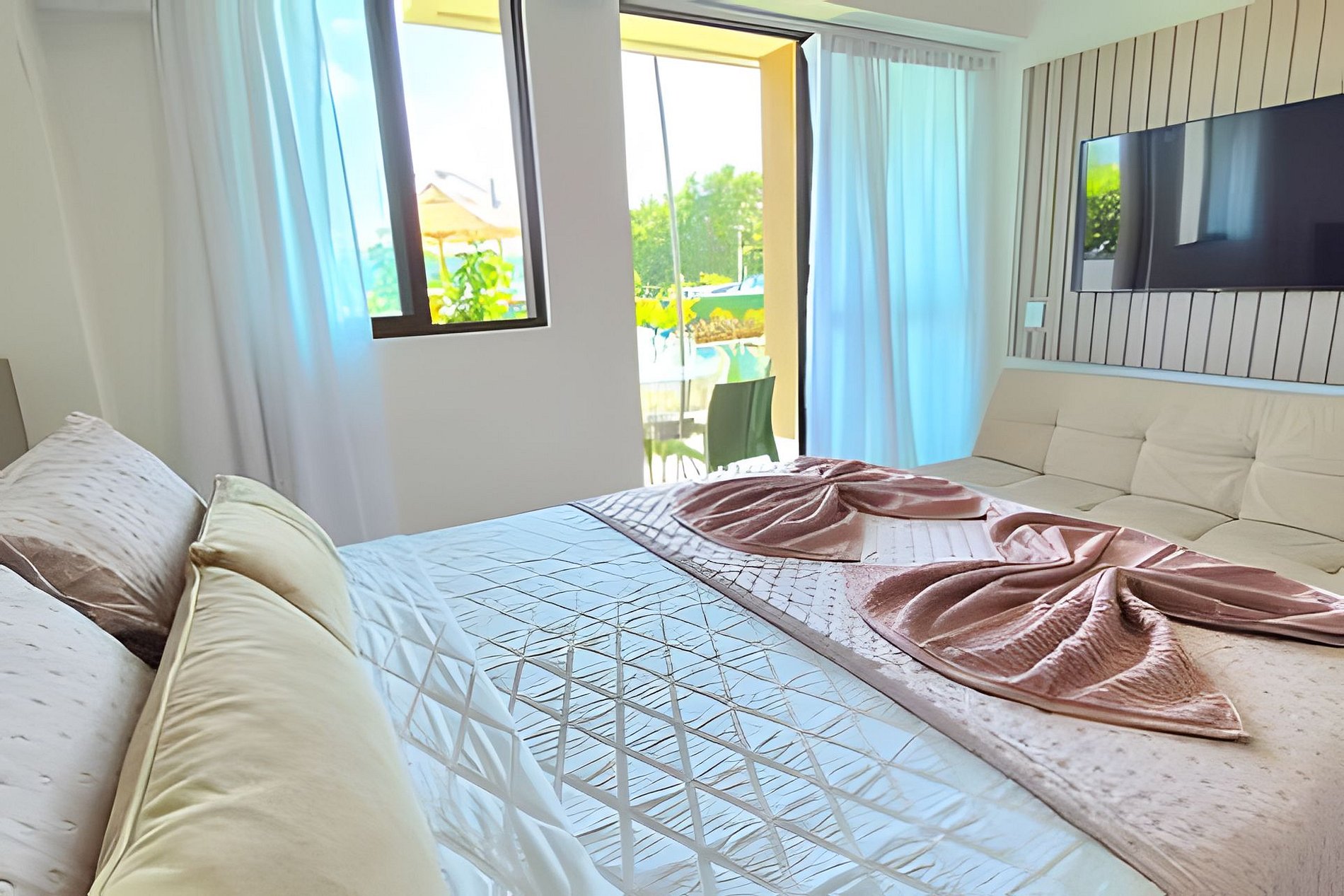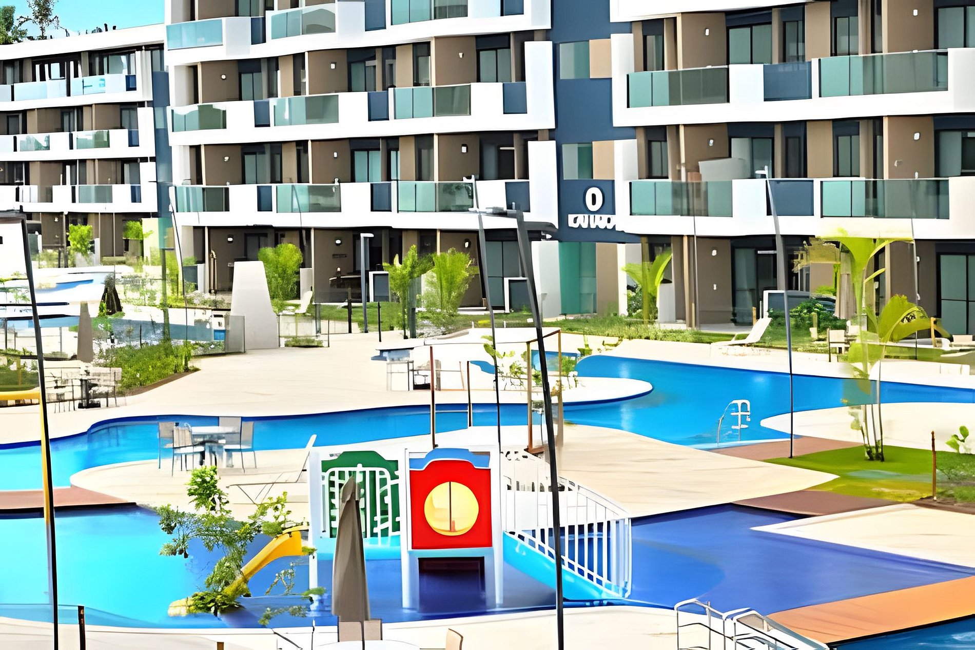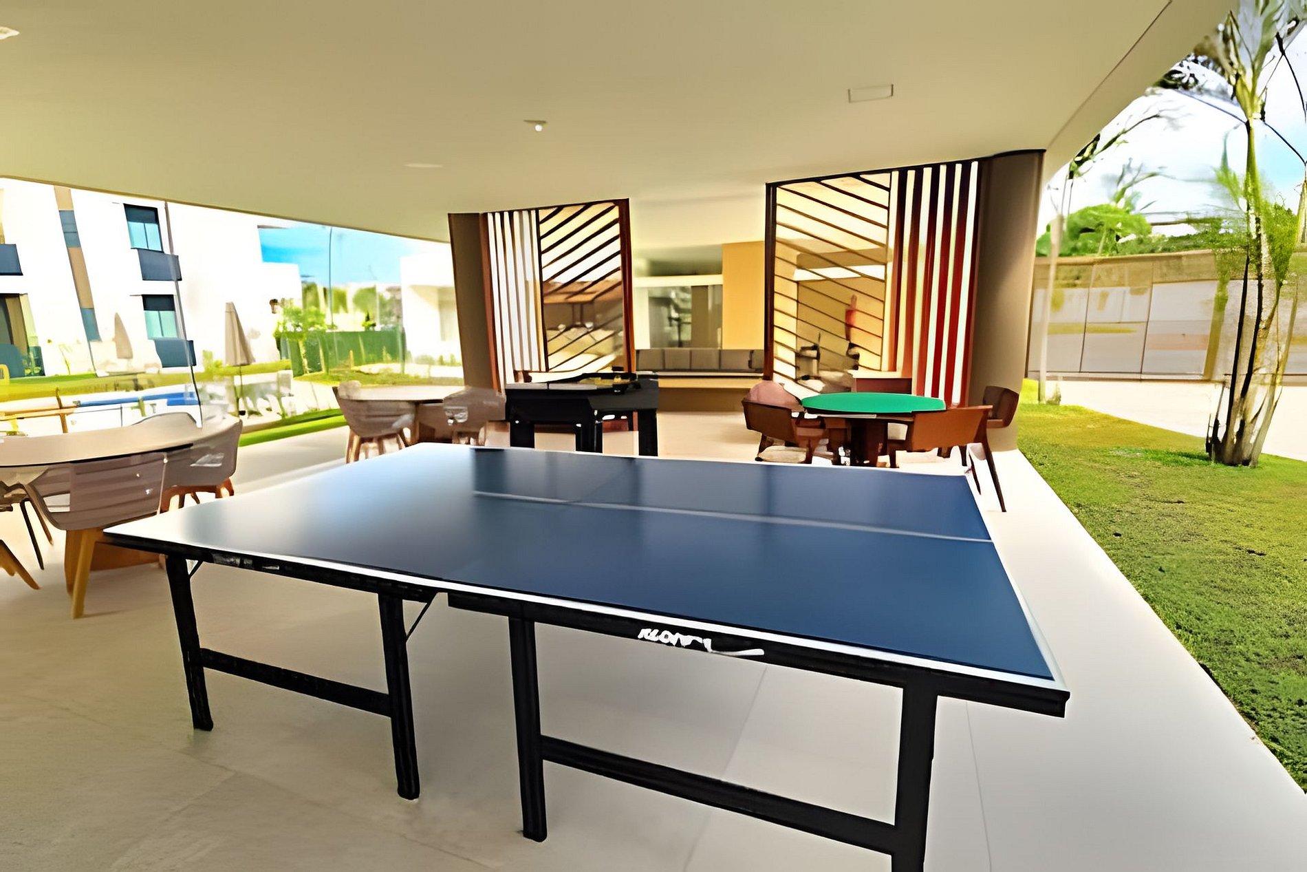 Este um condomínio Resort, com varias piscinas, piscina mais funda para um nado mais longo, piscina rasa e temática para lazer, piscina com brinquedos com parques aquáticos, campo de futebol, academia, ping-pong, sinuca, brinquedoteca, restaurante, conveniência entre outras coisas. Temos duas unidades exatamente iguais, tipologia decoração, e roupa de cama mesa e banho.