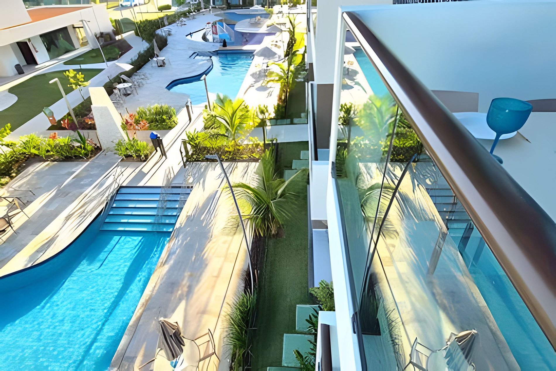 Este um condomínio Resort, com varias piscinas, piscina mais funda para um nado mais longo, piscina rasa e temática para lazer, piscina com brinquedos com parques aquáticos, campo de futebol, academia, ping-pong, sinuca, brinquedoteca, restaurante, conveniência entre outras coisas. Temos duas unidades exatamente iguais, tipologia decoração, e roupa de cama mesa e banho.