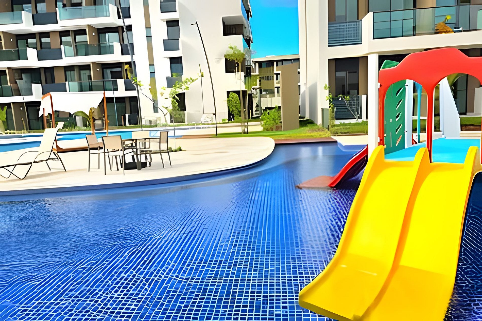 Este um condomínio Resort, com varias piscinas, piscina mais funda para um nado mais longo, piscina rasa e temática para lazer, piscina com brinquedos com parques aquáticos, campo de futebol, academia, ping-pong, sinuca, brinquedoteca, restaurante, conveniência entre outras coisas.