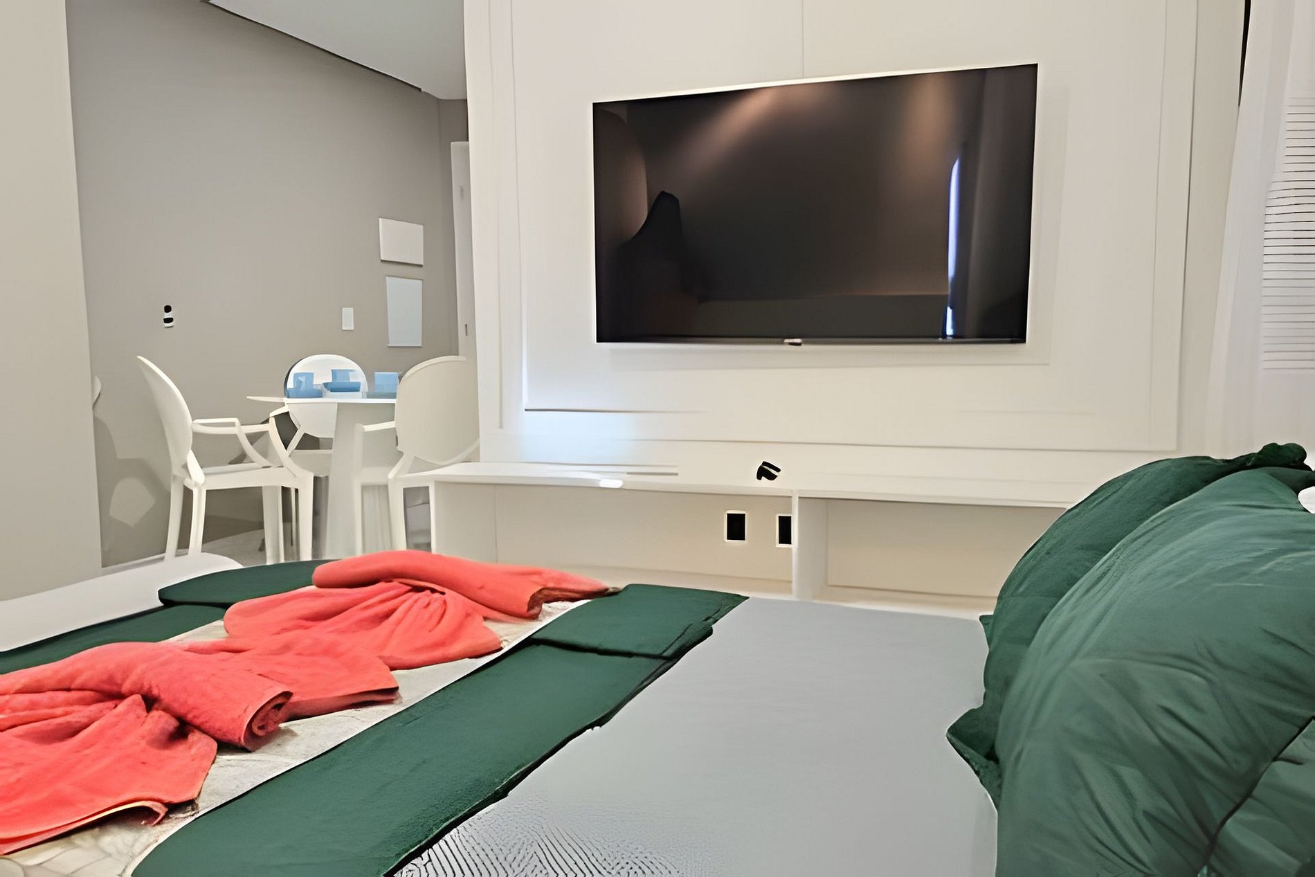 Apartamento ambientado, decocorado e mobilhado com tudo que existe de melhor, colchões de alta qualidade, moveis planejados , lençóes de algodão 250 fios, sala e quarto com ar , decorações e obras de arte assinadas, recepção 24 horas... conforto e praticidade à 80 metros do mar.