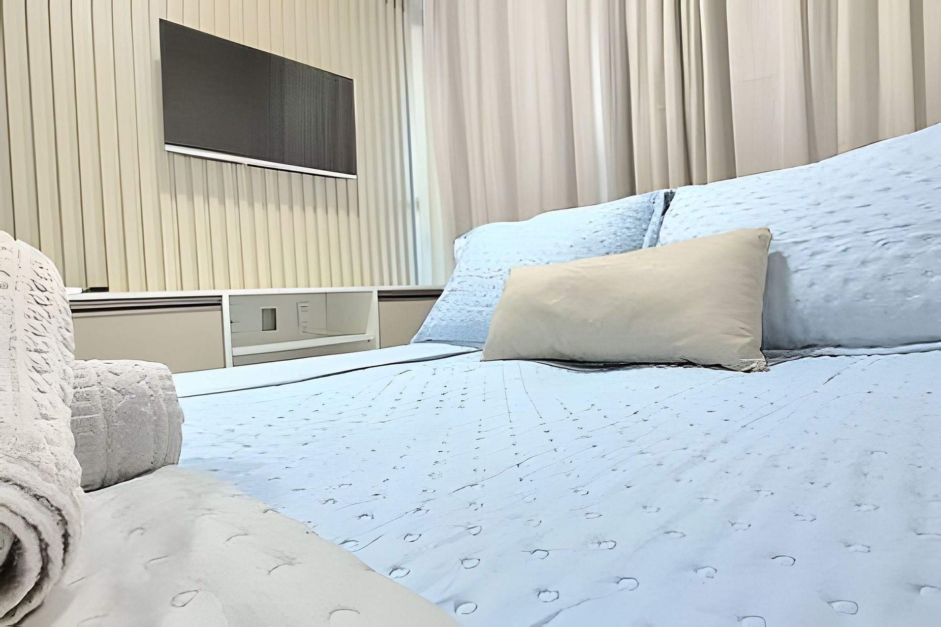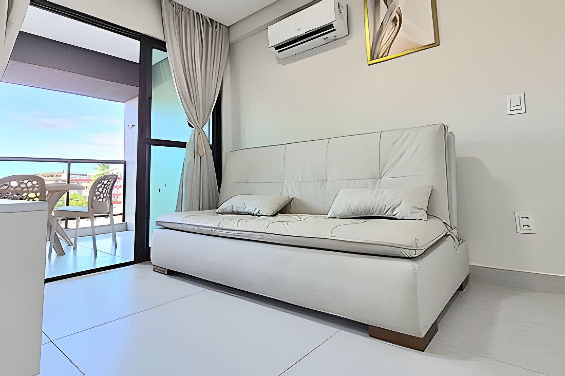 O espaço é novíssimo, tudo do bom e do melhor, os melhores produtos e materias do mecardo, decorado e ambientizado por profissionais, para tornar o apartamento confortável, belo e inteligente, com tudo que existe de melhor, lençóes de algadão 250 fios, sala e quarto com ar, conforto e praticidade a 80 metros do mar.
