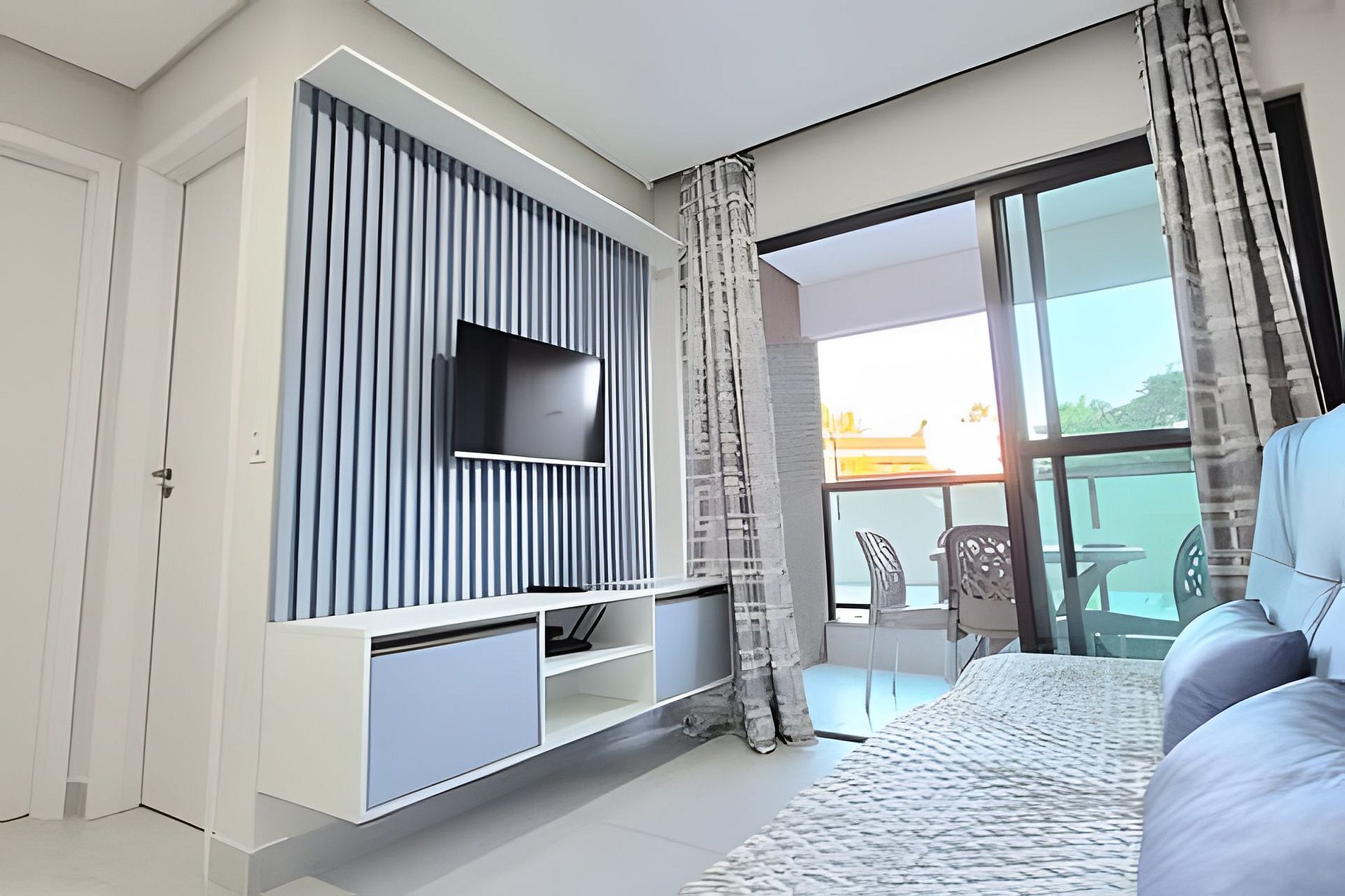 O apartamento é novíssimo, tudo do bom e do melhor, os melhores produtos e materias do mecardo, decorado e ambientado por profissionais, para tornar o apartamento confortável, belo e inteligente com tudo que existe de melhor, lençóes de algadão 250 fios, sala e quarto com ar, conforto e praticidade a 80 metros do mar.