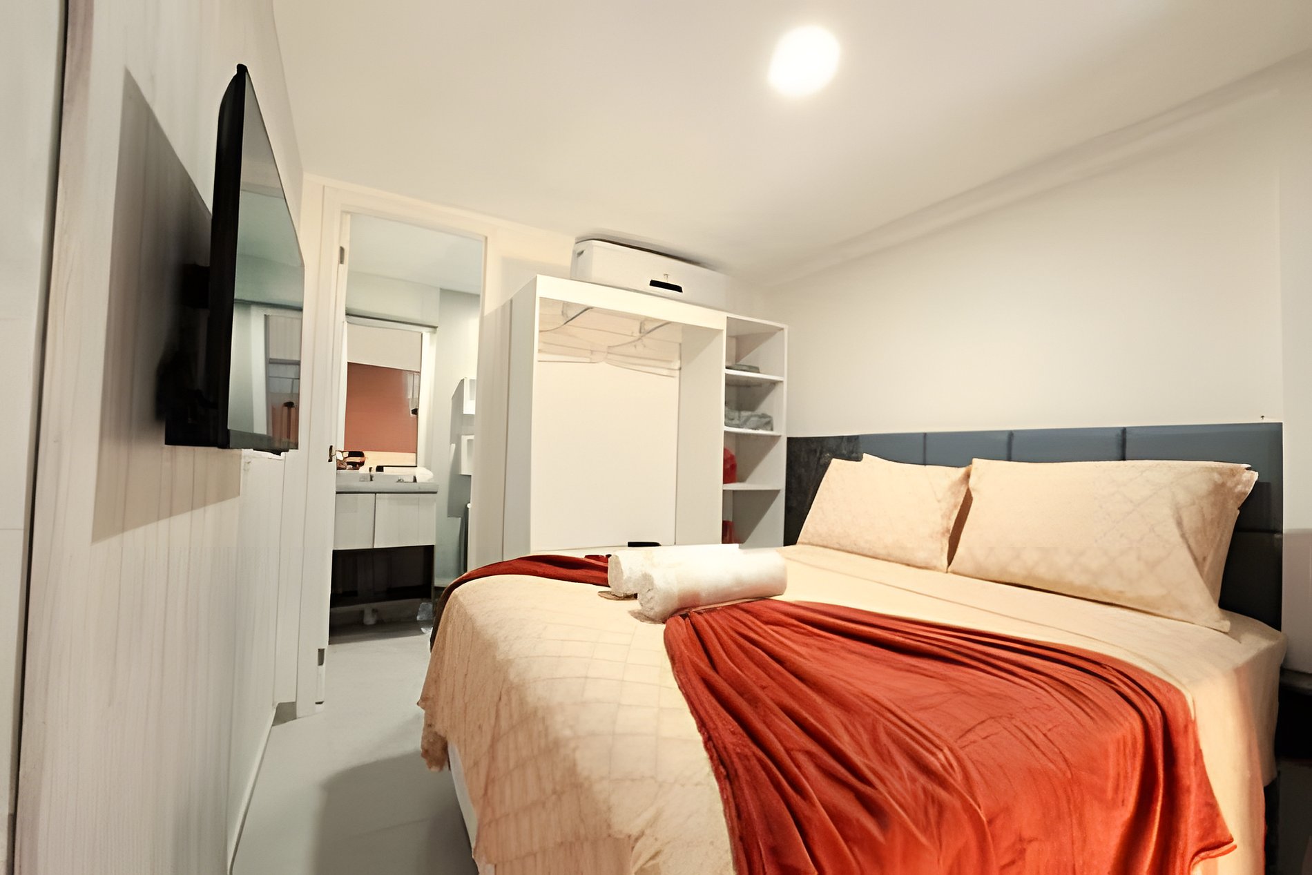 Colchão de alta qualidade, ar-condicionado silêncioso e cortina para não entrar luz, queremos oferecer uma noite revitalizante, para um dia perfeito, TV, wi-fi, sala com sofá grande, banheiro e tudo de melhor para suas férias.