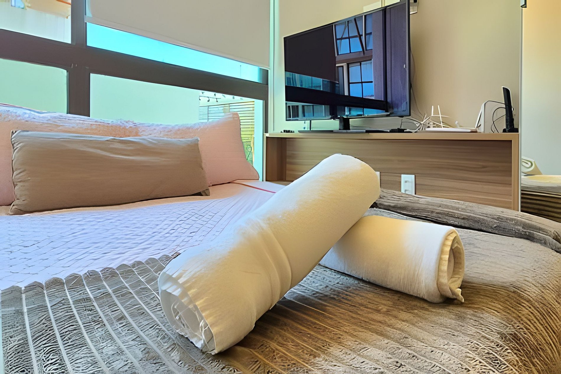 Colchão de alta qualidade, 2 ar-condicionados silêncioso e cortina para não entrar luz, queremos oferecer uma noite revitalizante, para um dia perfeito, TV, wi-fi, sala com sofá grande, banheiro e tudo de melhor para suas férias.