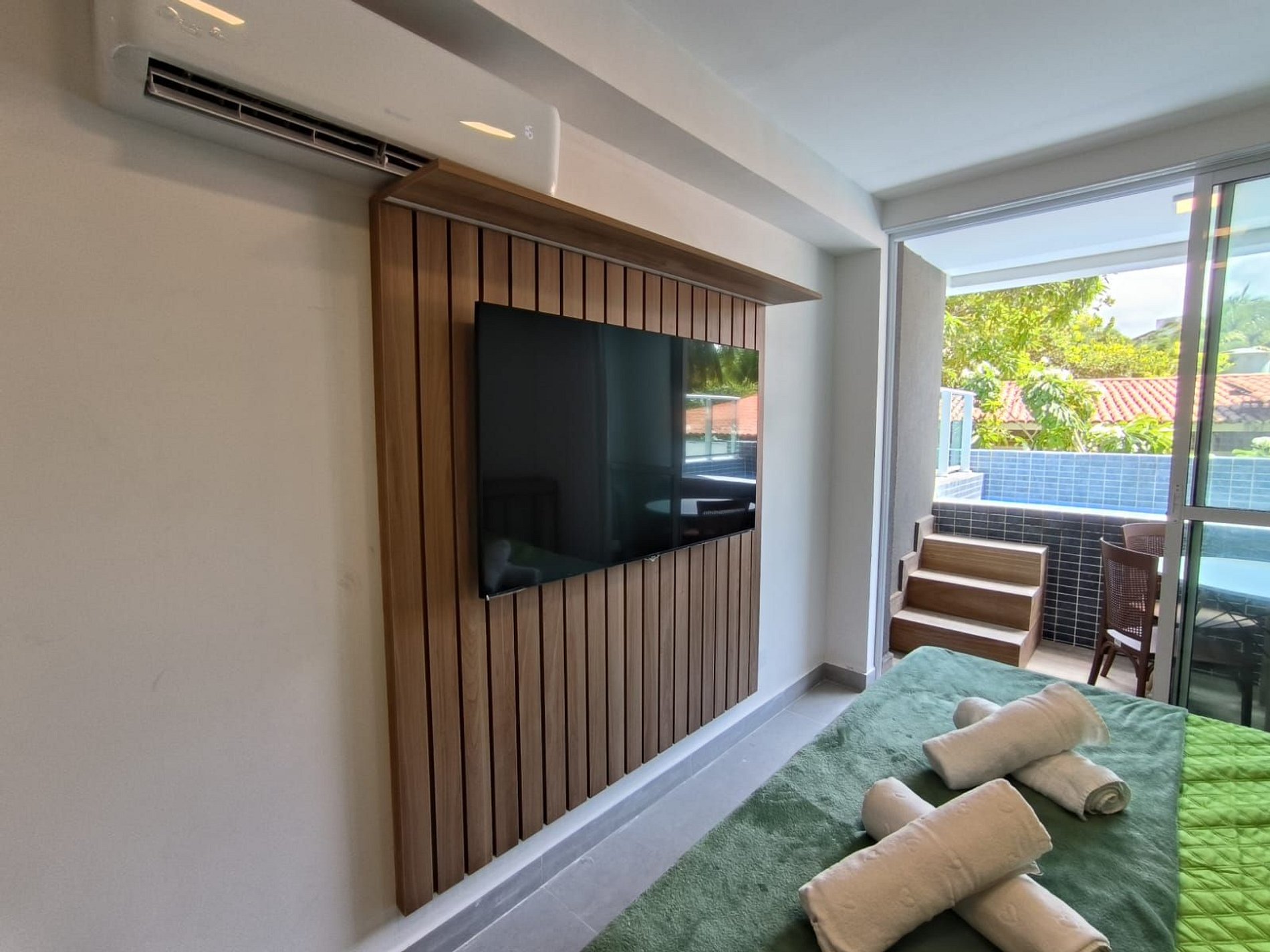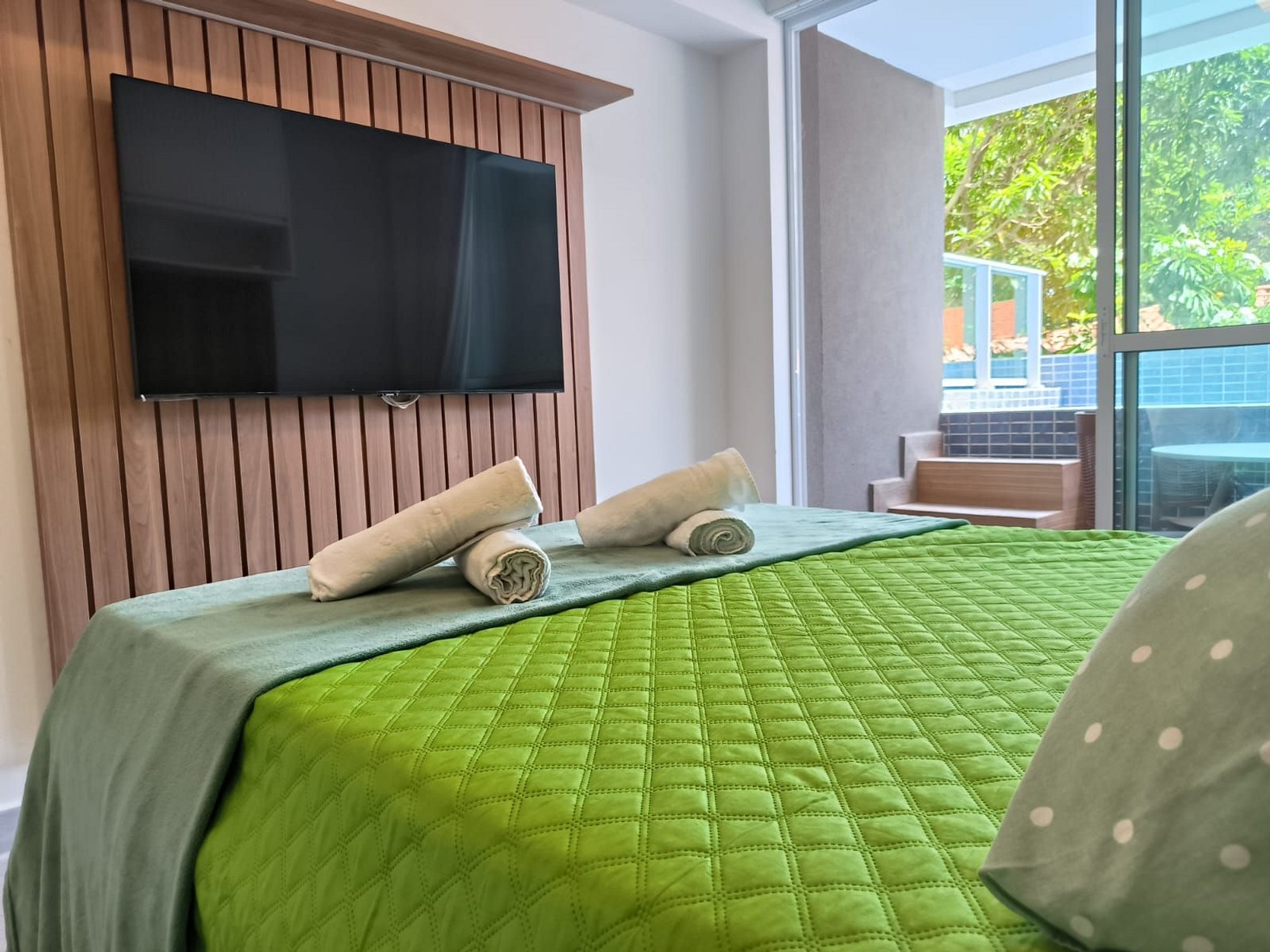 Espaço é novíssimo, tudo do bom e do melhor, os melhores produtos e materias do mercado, decorado e ambientado por profissionais, para tornar o apartamento confortável, belo e inteligente com tudo que existe de melhor, colchões de alta qualidade, lençóis de algodão 250 fios, ar condicionado, televisão, conforto e praticidade. Tudo isso apenas a 50 metros do mar e com uma piscina privativa para sua família desfrutar da melhor maneira! Além de tudo isso você tem uma piscina privativa em sua varanda!