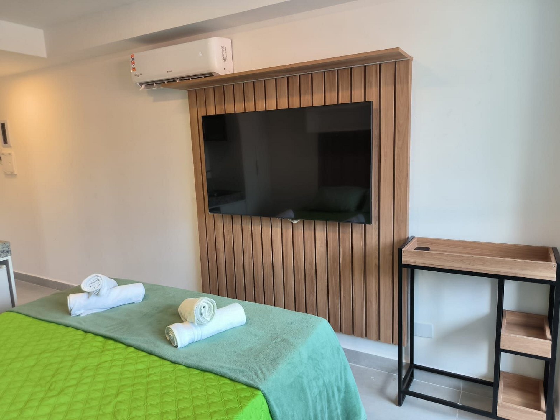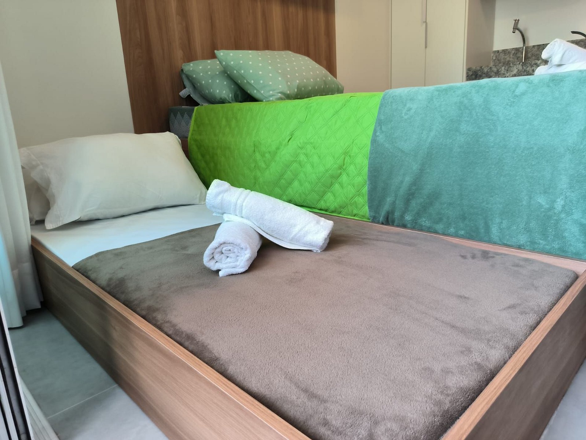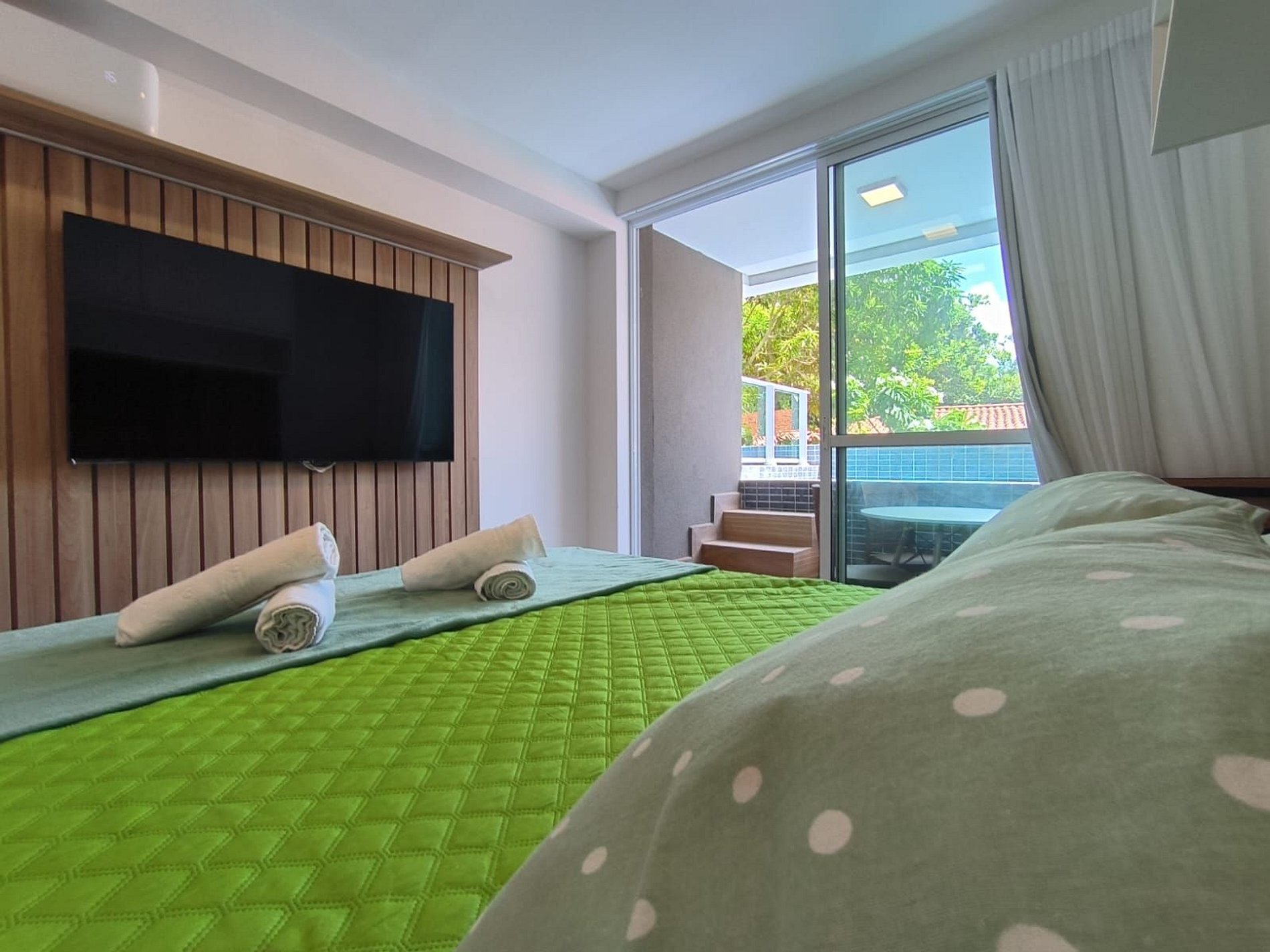 Espaço é novíssimo, tudo do bom e do melhor, os melhores produtos e materias do mercado, decorado e ambientado por profissionais, para tornar o apartamento confortável, belo e inteligente com tudo que existe de melhor, colchões de alta qualidade, lençóis de algodão 250 fios, ar condicionado, televisão, conforto e praticidade. Tudo isso apenas a 50 metros do mar e com uma piscina privativa para sua família desfrutar da melhor maneira! Além de tudo isso você tem uma piscina privativa em sua varanda!