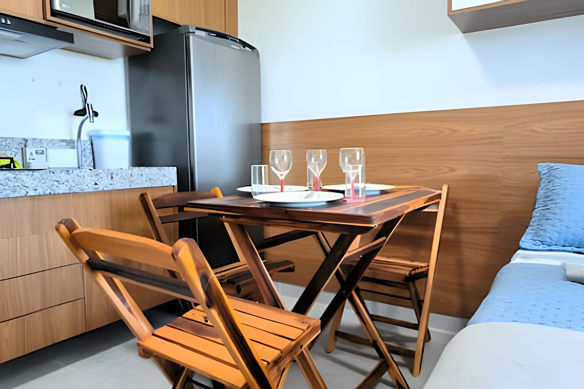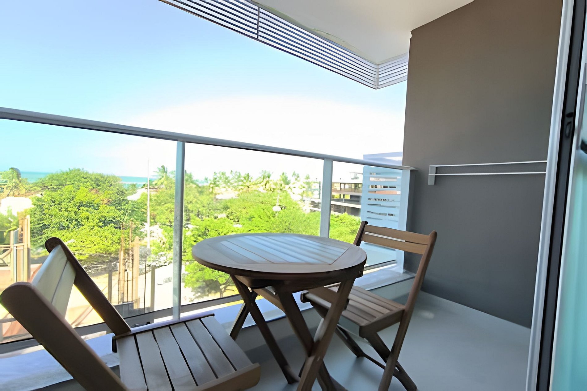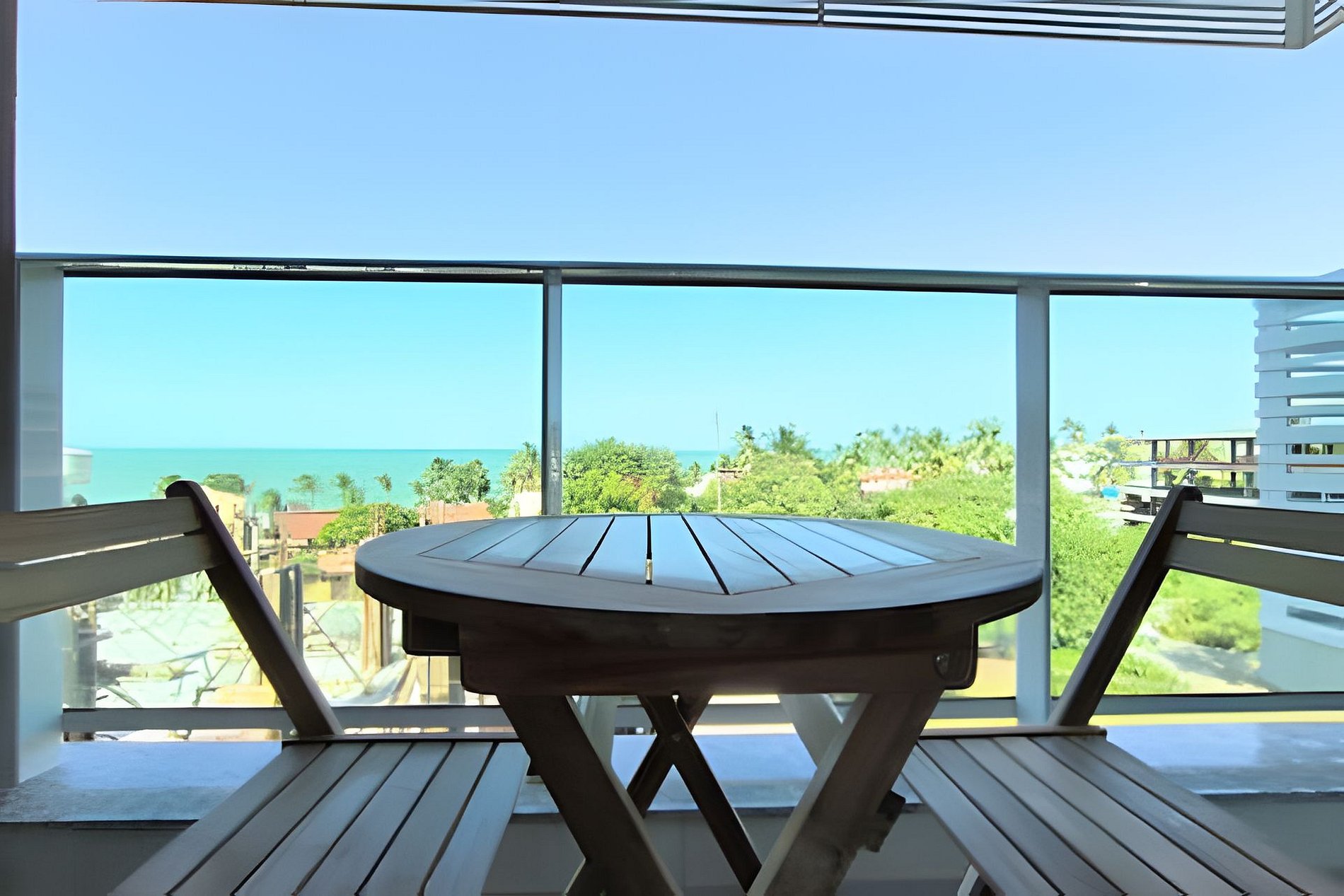 Vista para o mar, o espaço é novíssimo, tudo do bom e do melhor, os melhores produtos e materiais do mercado, decorado e ambientado por profissionais, para tornar o apartamento confortável, belo e inteligente com tudo que existe de melhor, colchões de alta qualidade, lençóis de algodão 250 fios, ar condicionado, televisão, conforto e praticidade. Tudo isso apenas a 50 metros do mar.