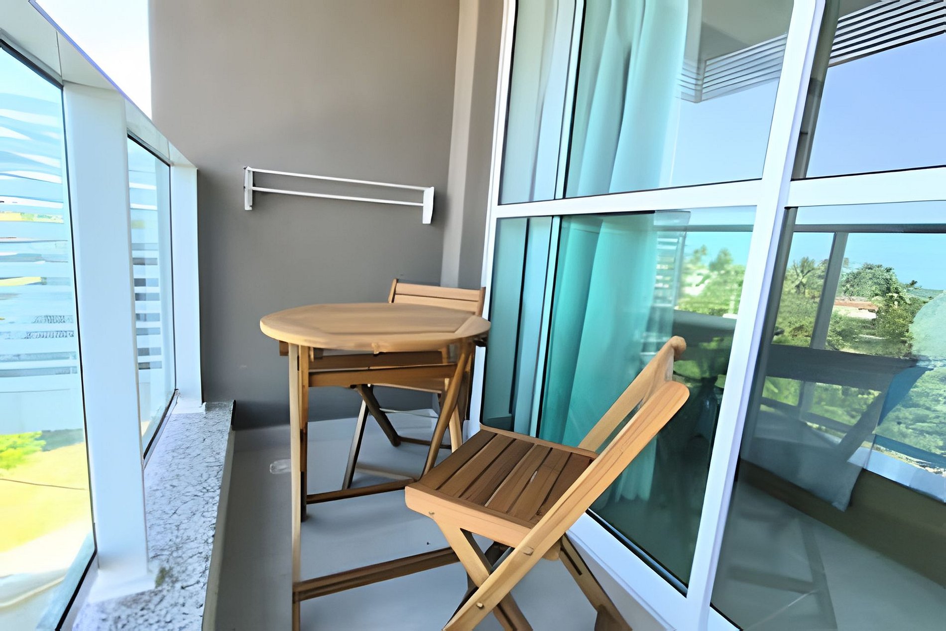Vista para o mar, o espaço é novíssimo, tudo do bom e do melhor, os melhores produtos e materiais do mercado, decorado e ambientado por profissionais, para tornar o apartamento confortável, belo e inteligente com tudo que existe de melhor, colchões de alta qualidade, lençóis de algodão 250 fios, ar condicionado, televisão, conforto e praticidade. Tudo isso apenas a 50 metros do mar.