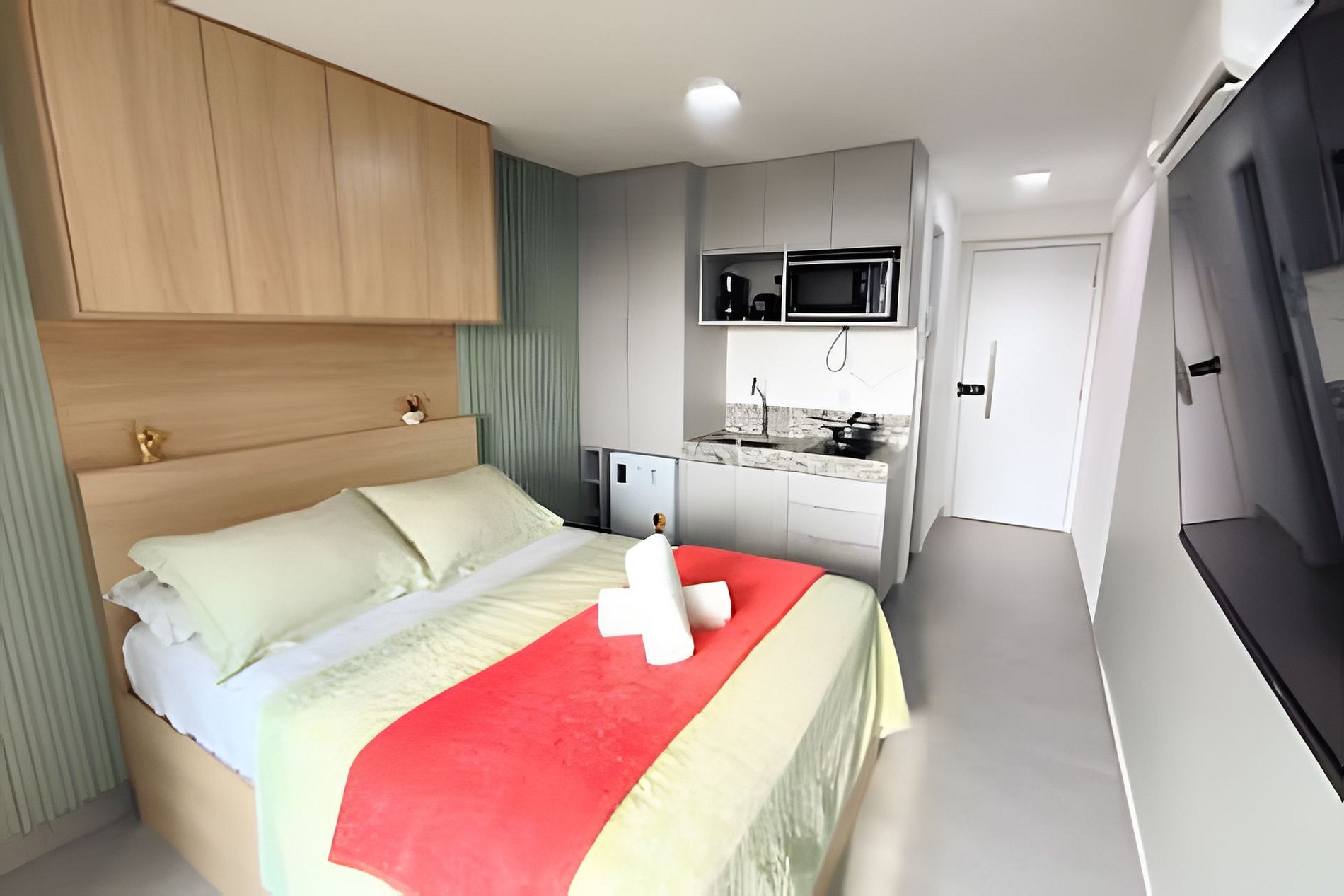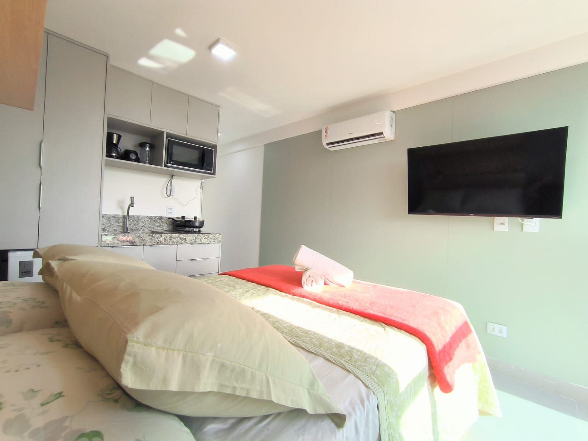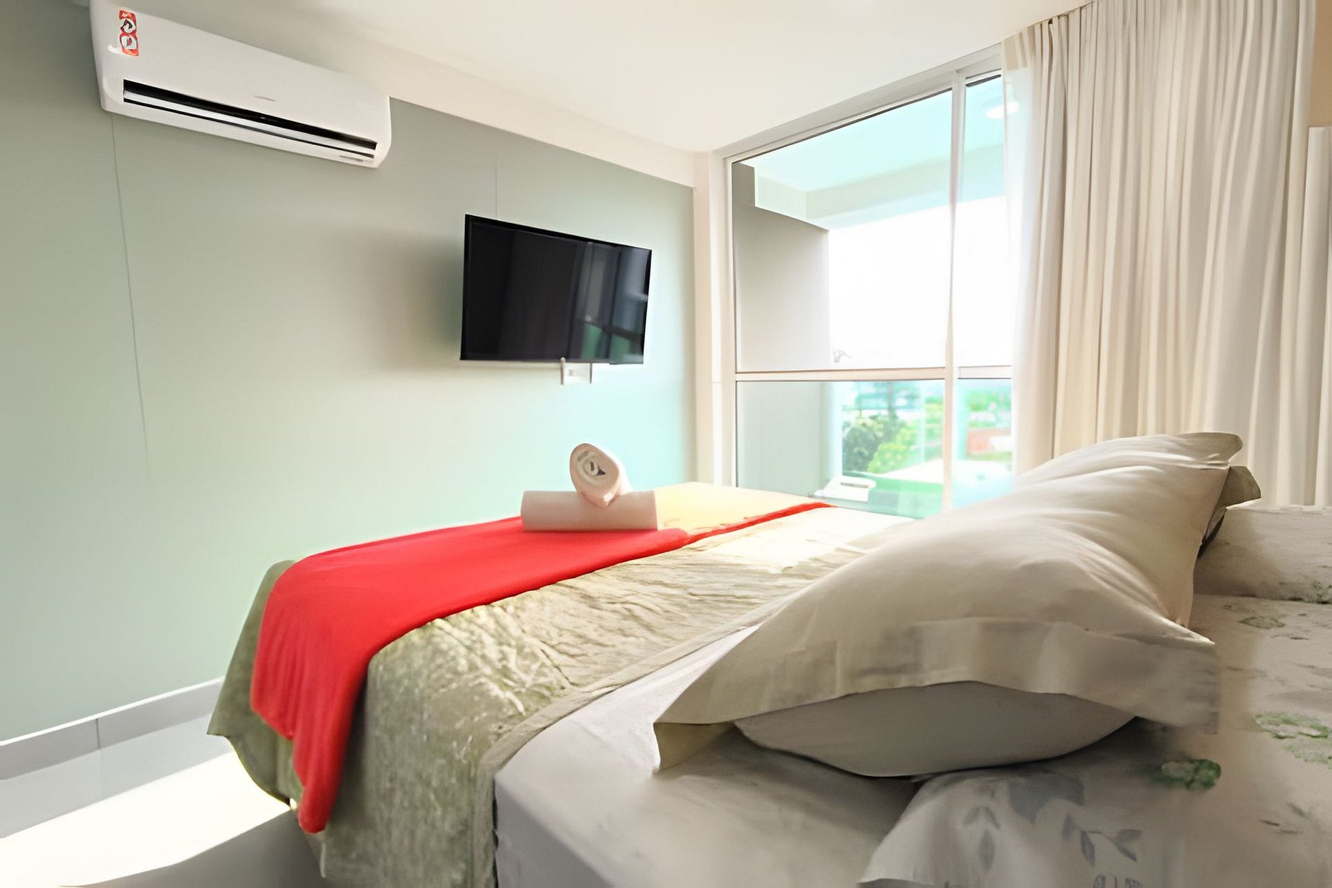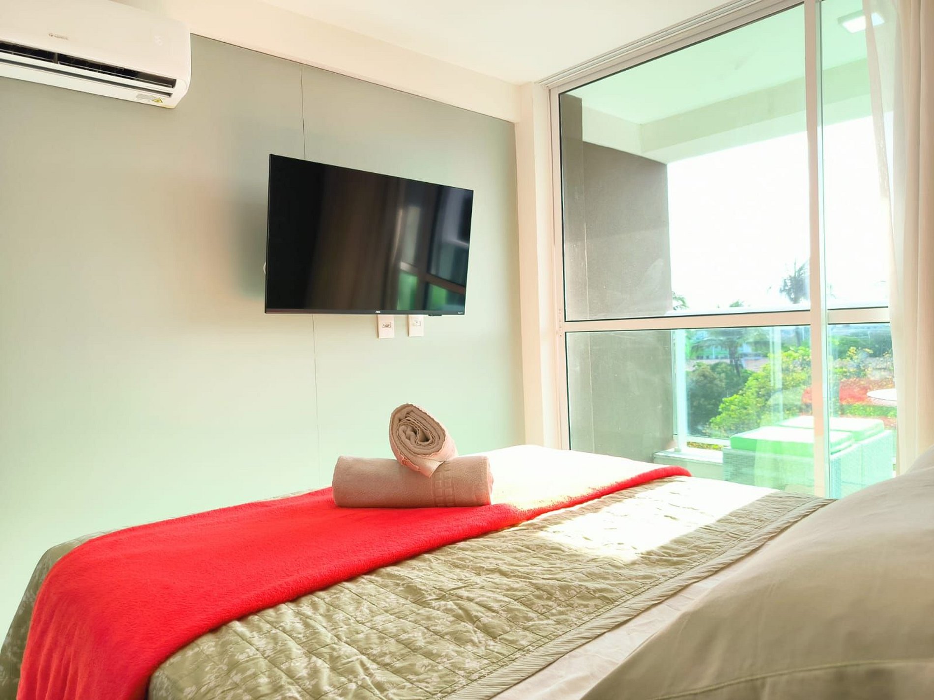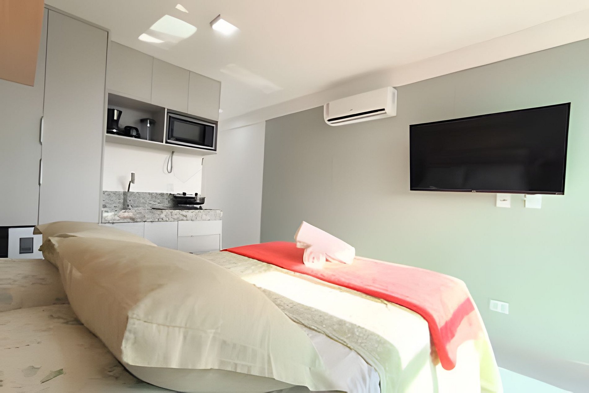 Espaço é novíssimo, tudo do bom e do melhor, os melhores produtos e materiais do mercado, decorado e ambientado por profissionais, para tornar o apartamento confortável, belo e inteligente com tudo que existe de melhor, colchões de alta qualidade, ar condicionado, televisão, conforto e praticidade. Tudo isso apenas a 50 metros do mar.