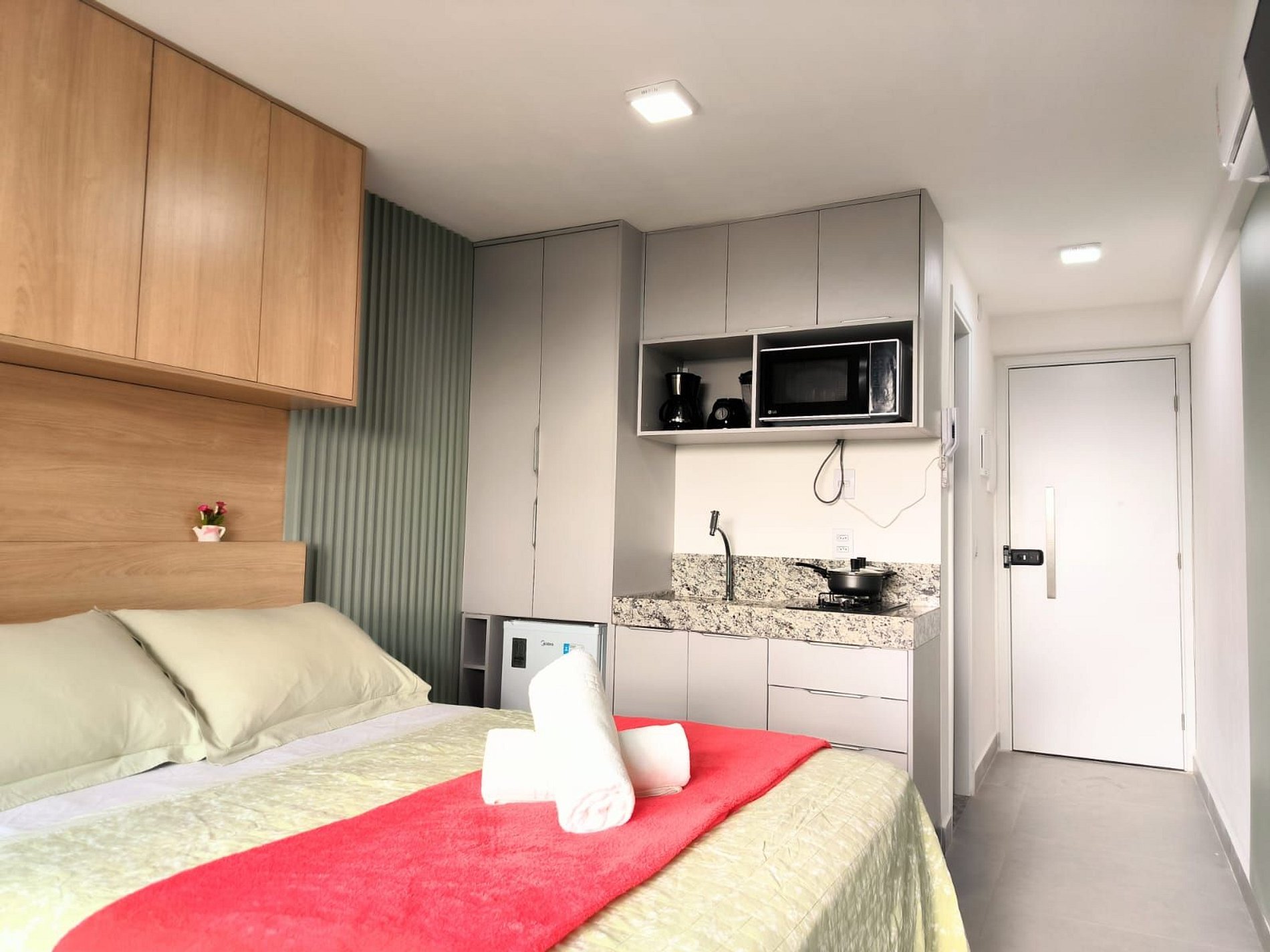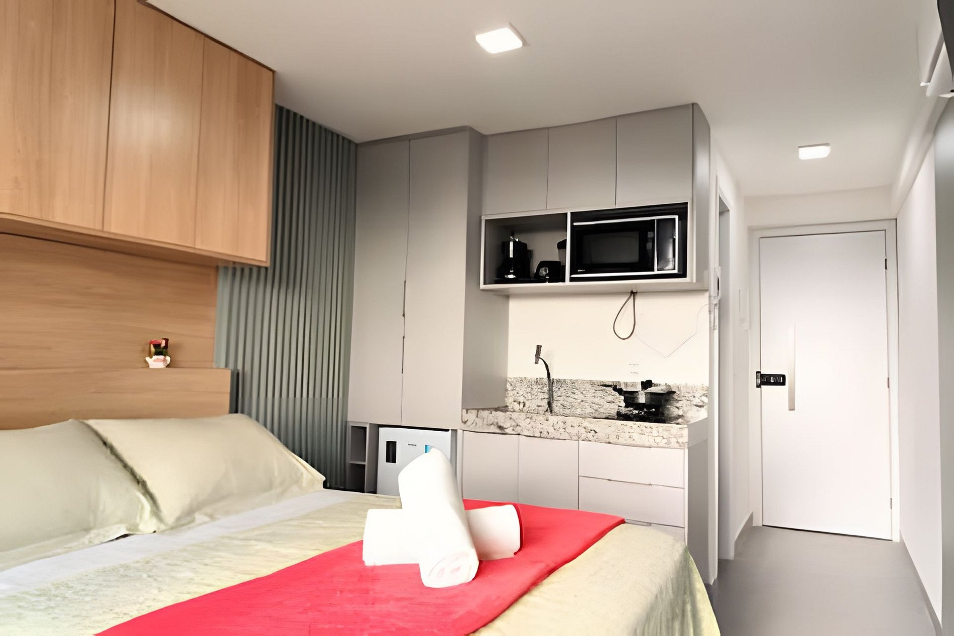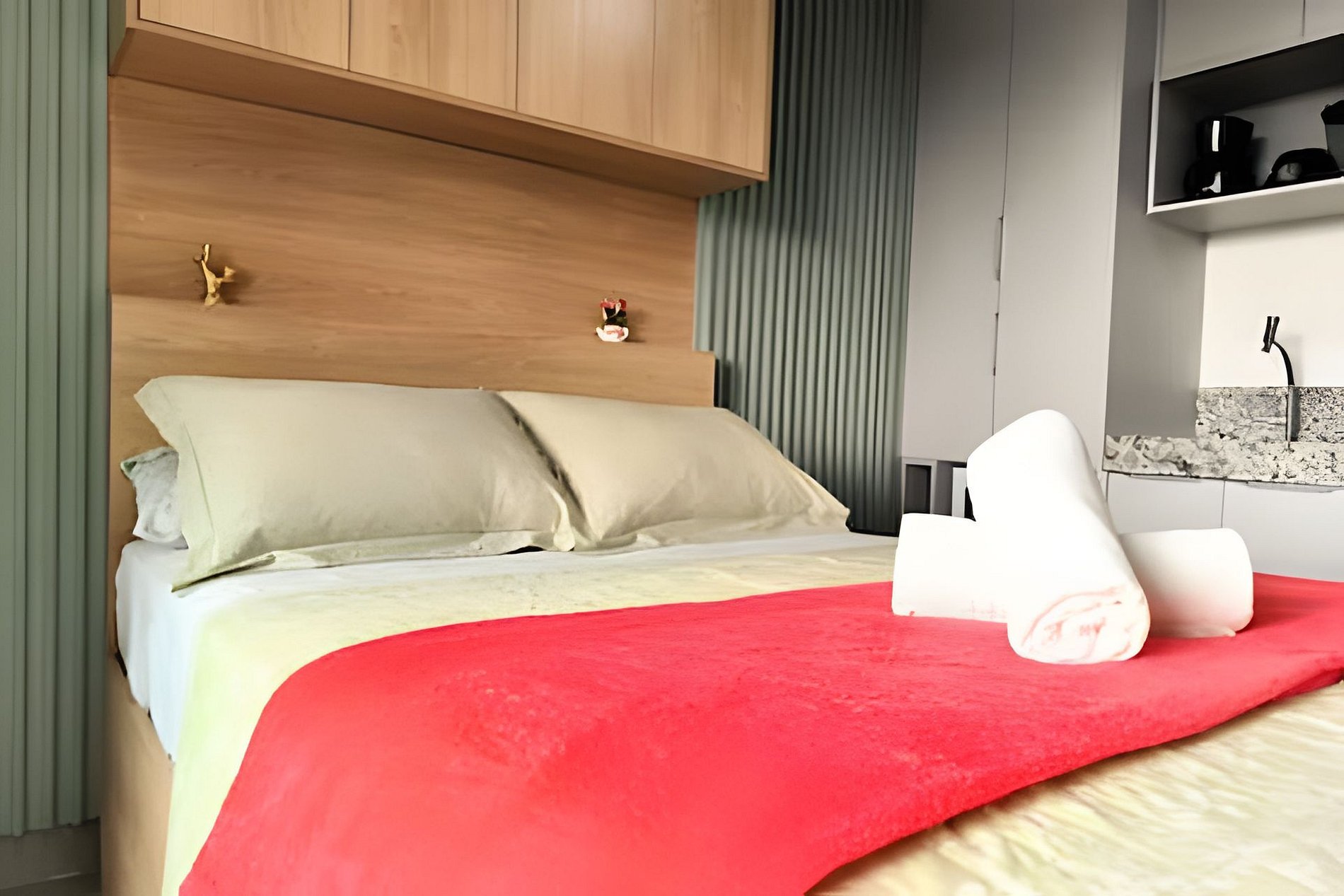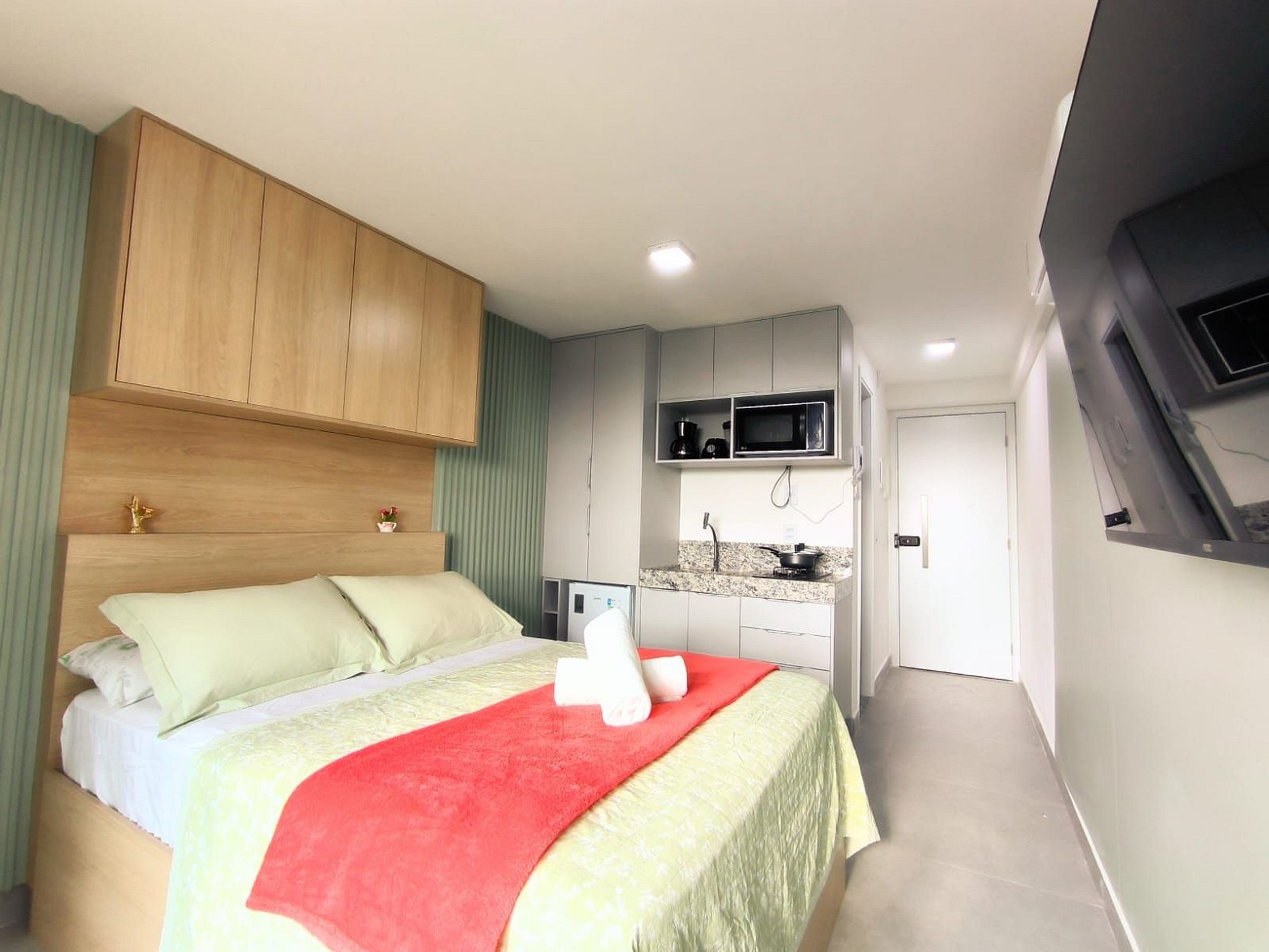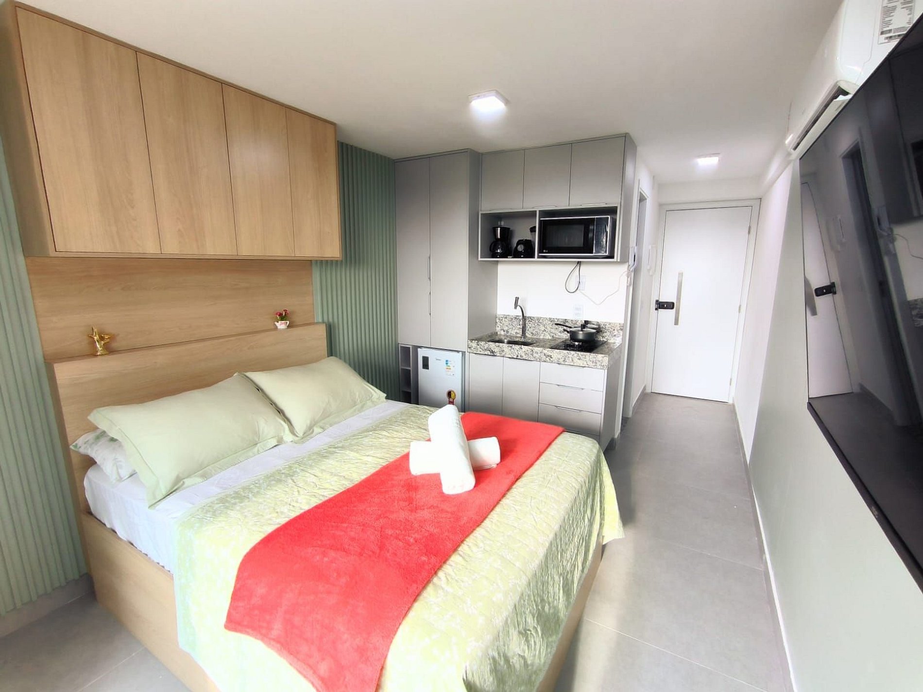Espaço é novíssimo, tudo do bom e do melhor, os melhores produtos e materiais do mercado, decorado e ambientado por profissionais, para tornar o apartamento confortável, belo e inteligente com tudo que existe de melhor, colchões de alta qualidade, ar condicionado, televisão, conforto e praticidade. Tudo isso apenas a 50 metros do mar.