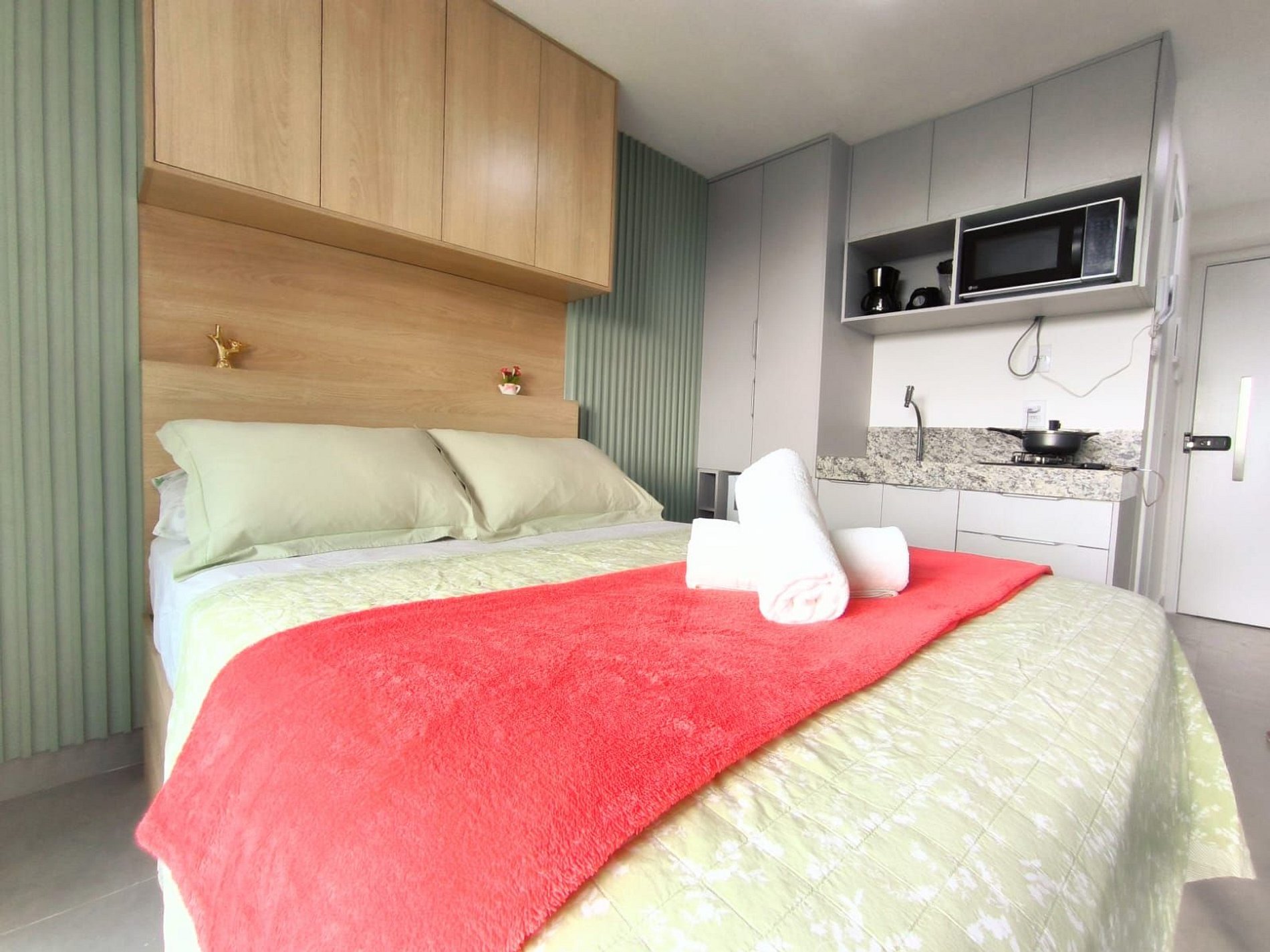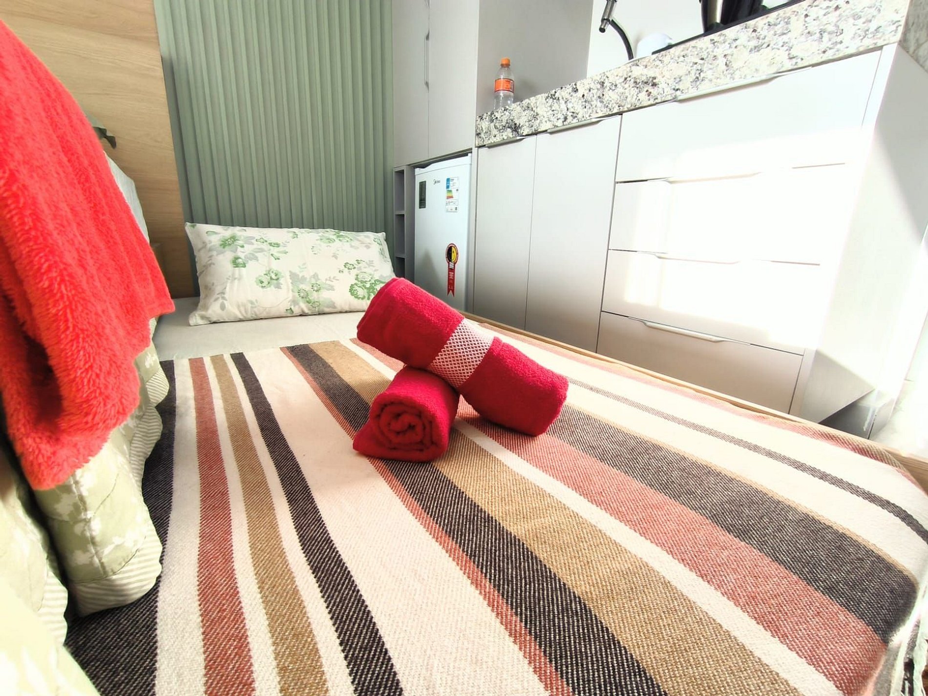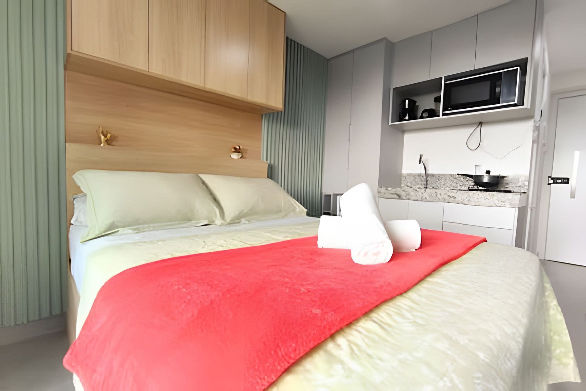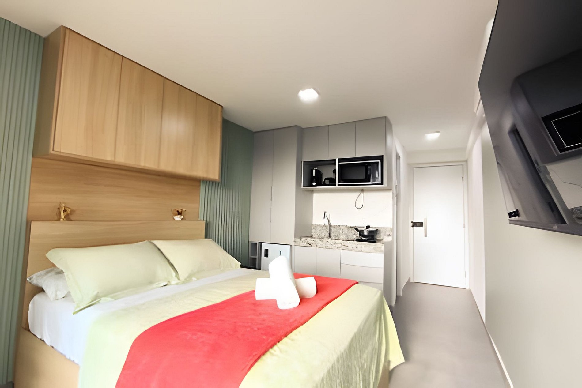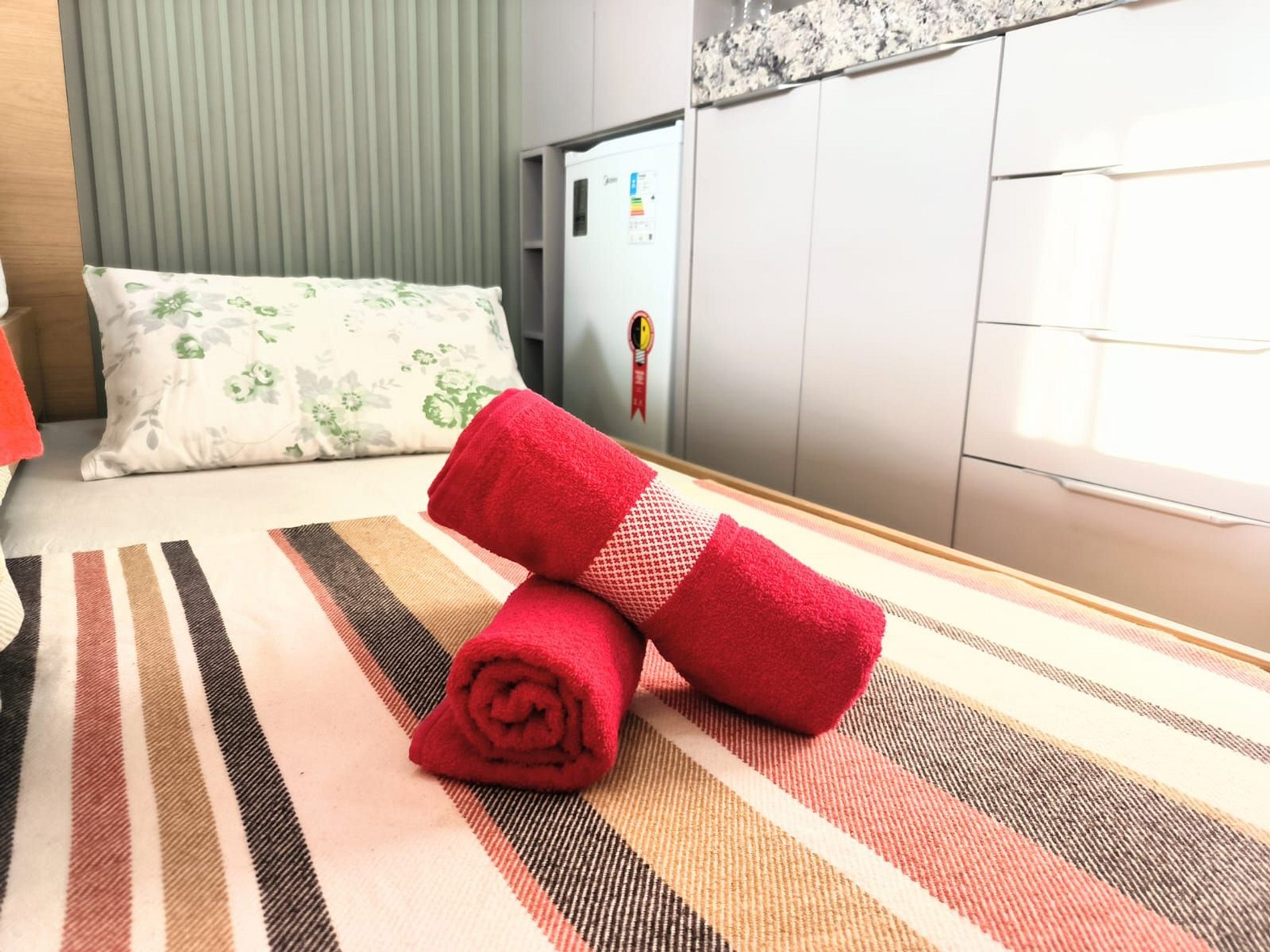 Espaço é novíssimo, tudo do bom e do melhor, os melhores produtos e materiais do mercado, decorado e ambientado por profissionais, para tornar o apartamento confortável, belo e inteligente com tudo que existe de melhor, colchões de alta qualidade, ar condicionado, televisão, conforto e praticidade. Tudo isso apenas a 50 metros do mar.