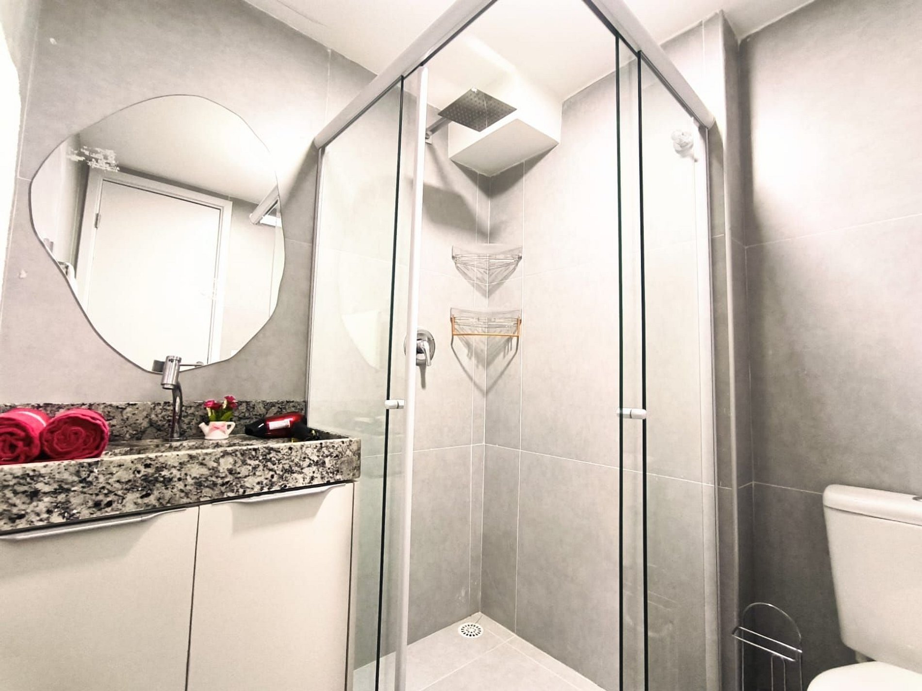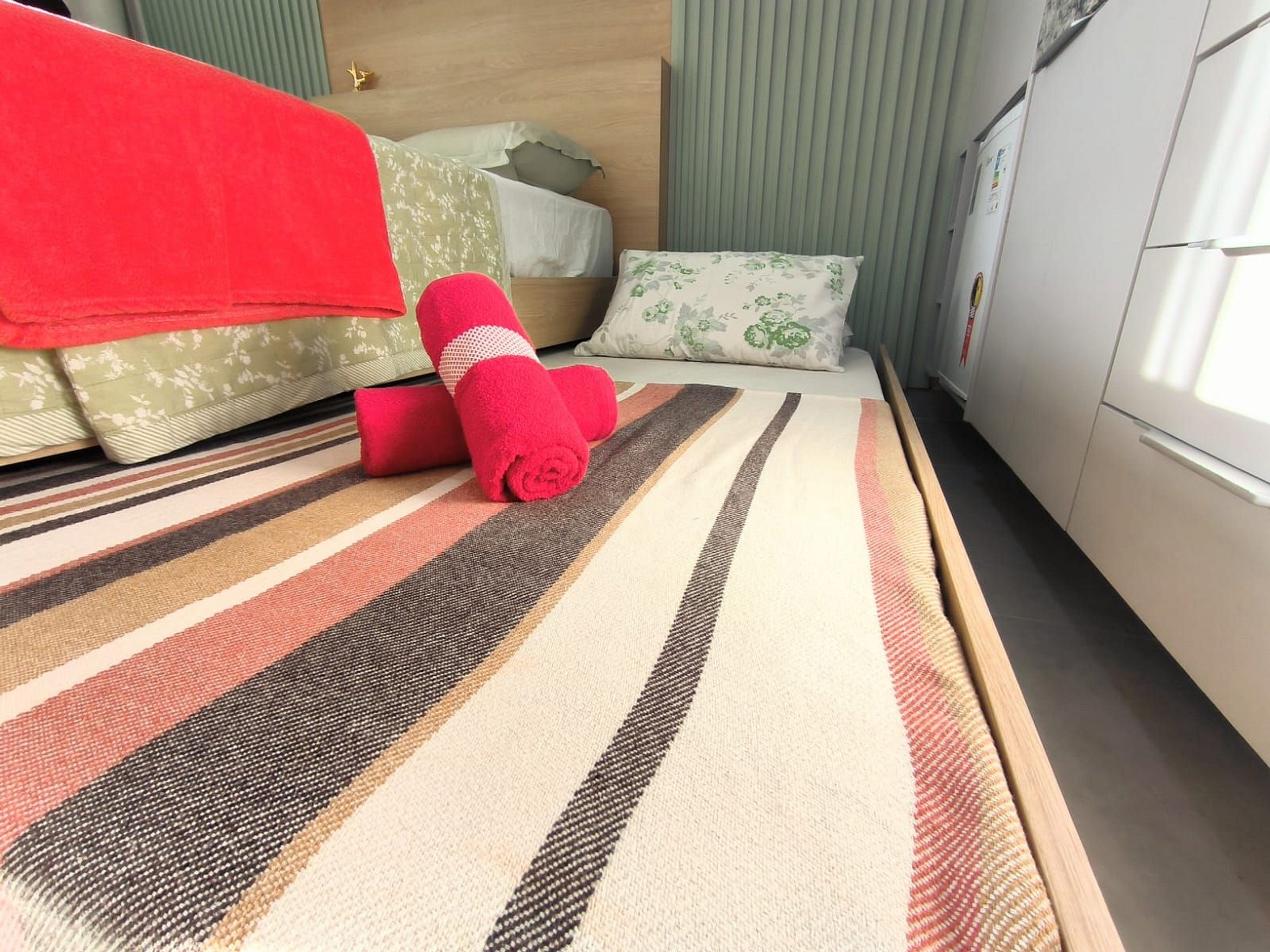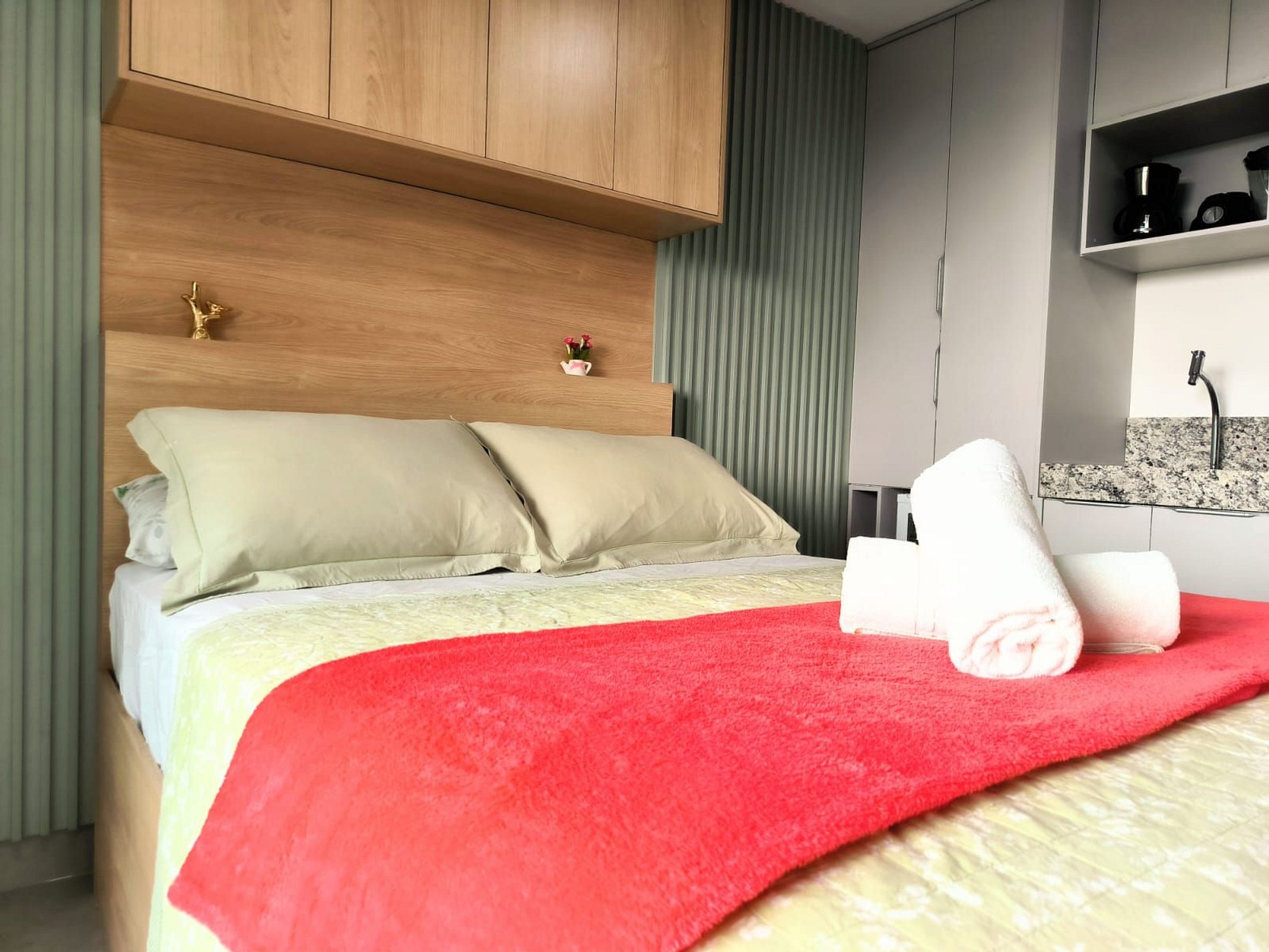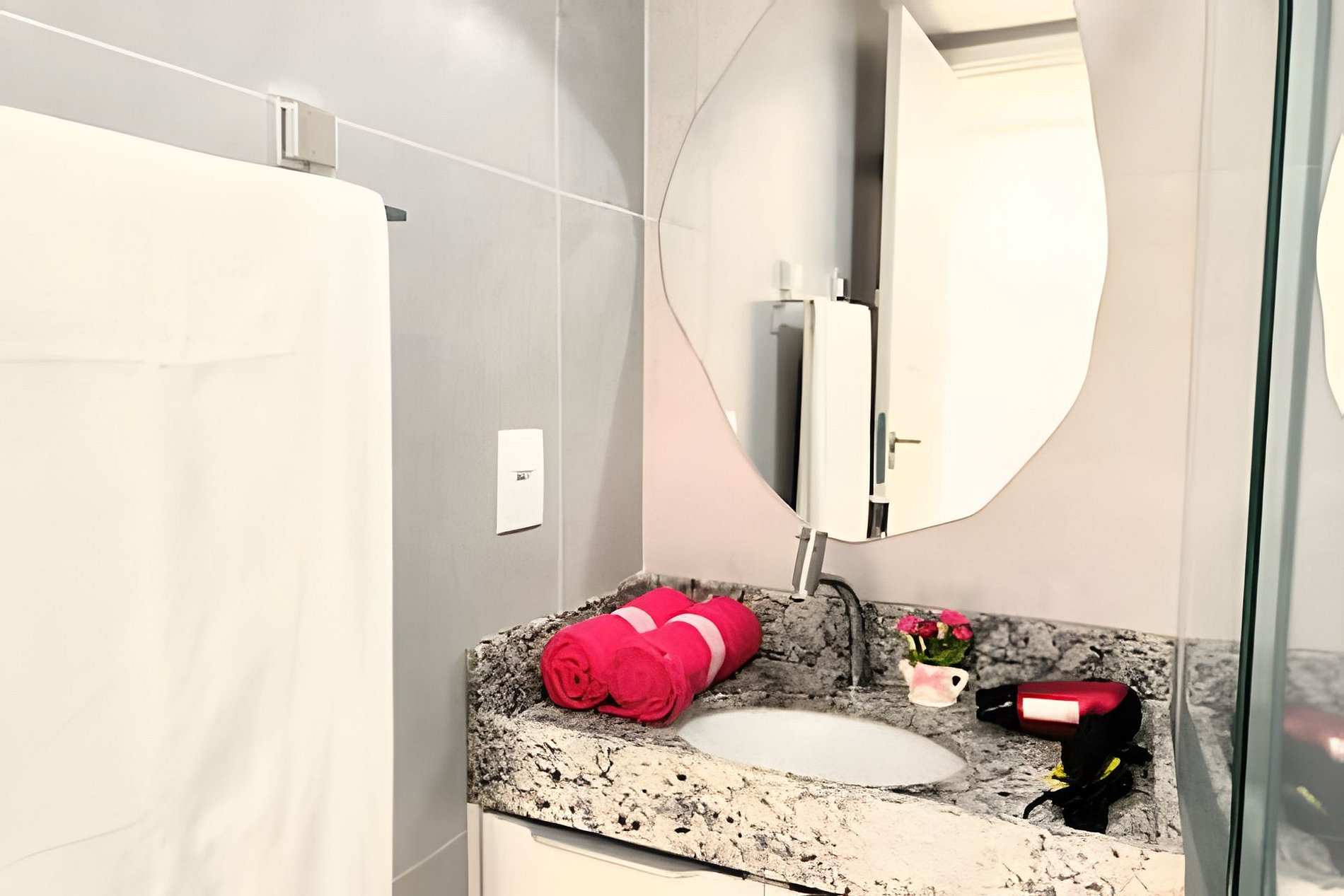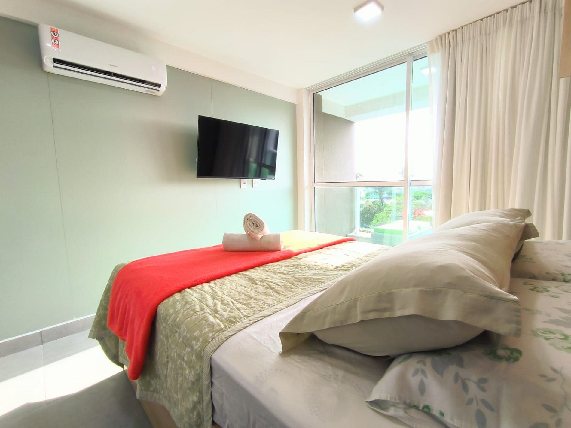 Espaço é novíssimo, tudo do bom e do melhor, os melhores produtos e materiais do mercado, decorado e ambientado por profissionais, para tornar o apartamento confortável, belo e inteligente com tudo que existe de melhor, colchões de alta qualidade, ar condicionado, televisão, conforto e praticidade. Tudo isso apenas a 50 metros do mar.