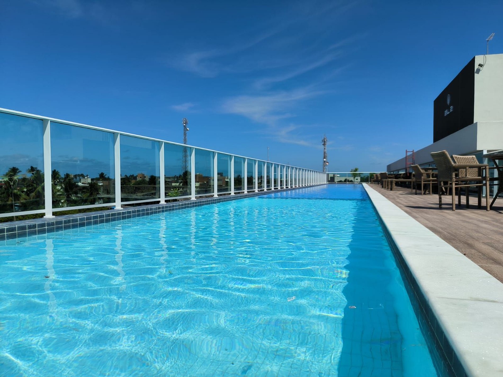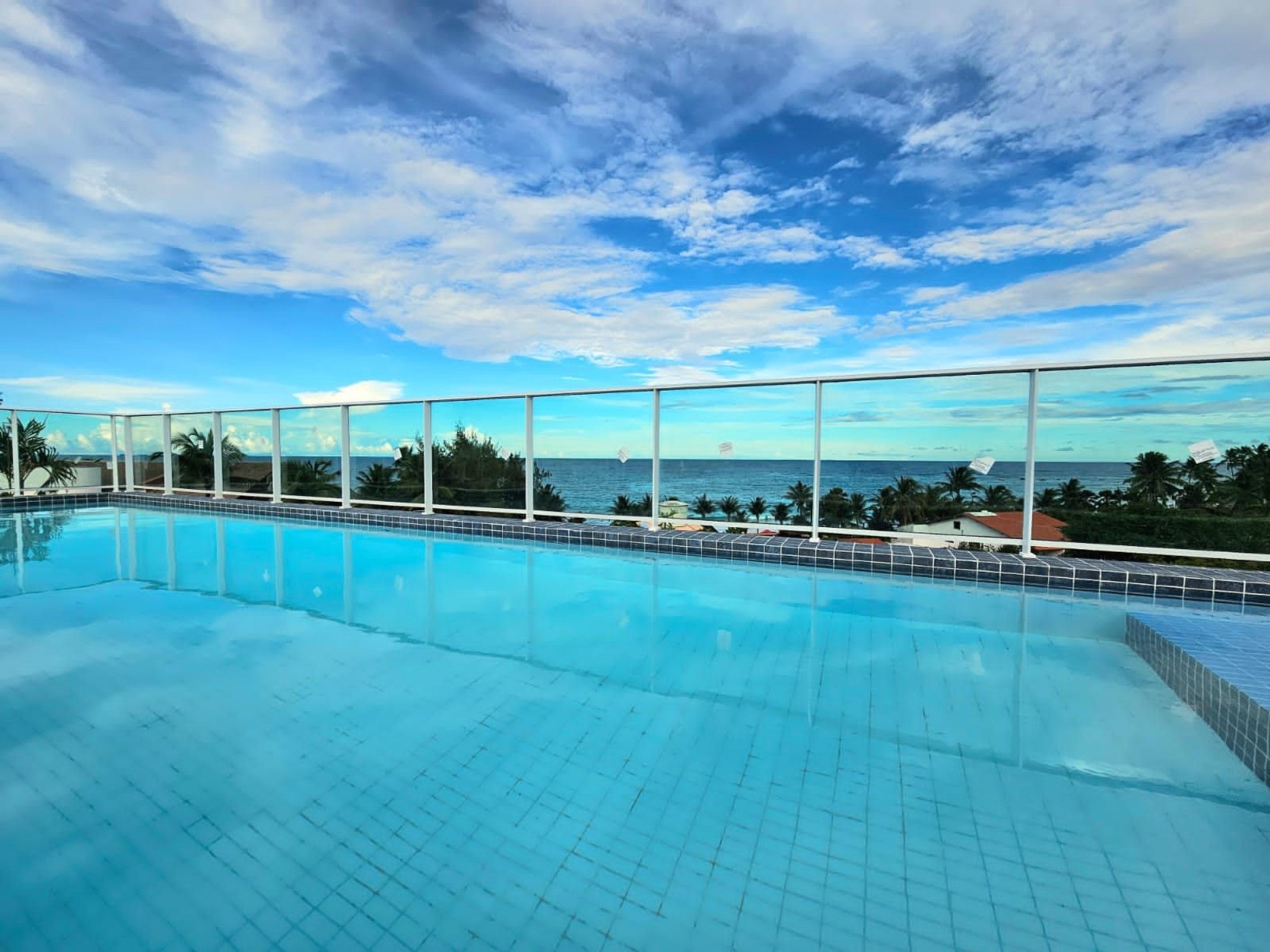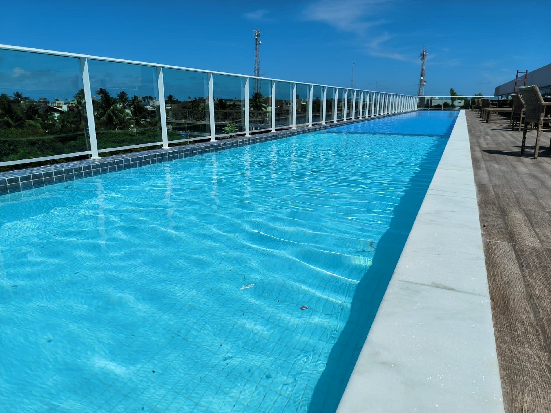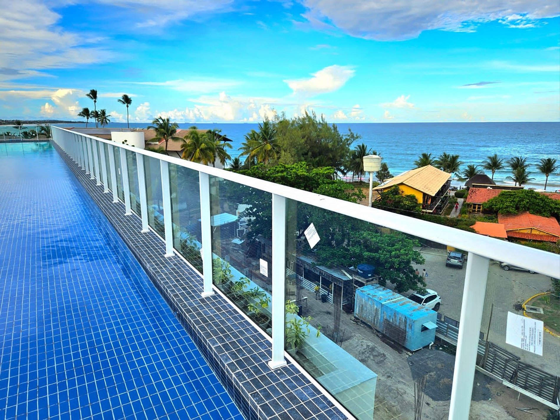 O prédio tem rooftop (cobertura) com a maior piscina de borda infinita de Porto de Galinhas, com vista para as tão famosas piscinas naturais e jangadas.