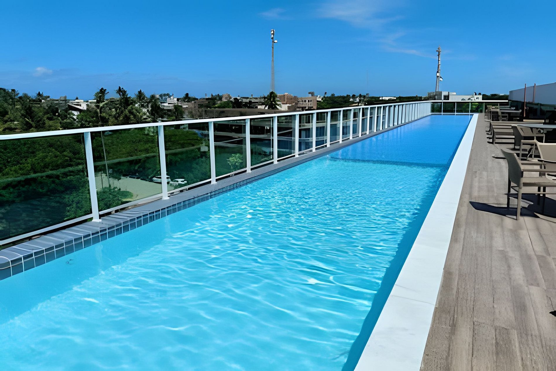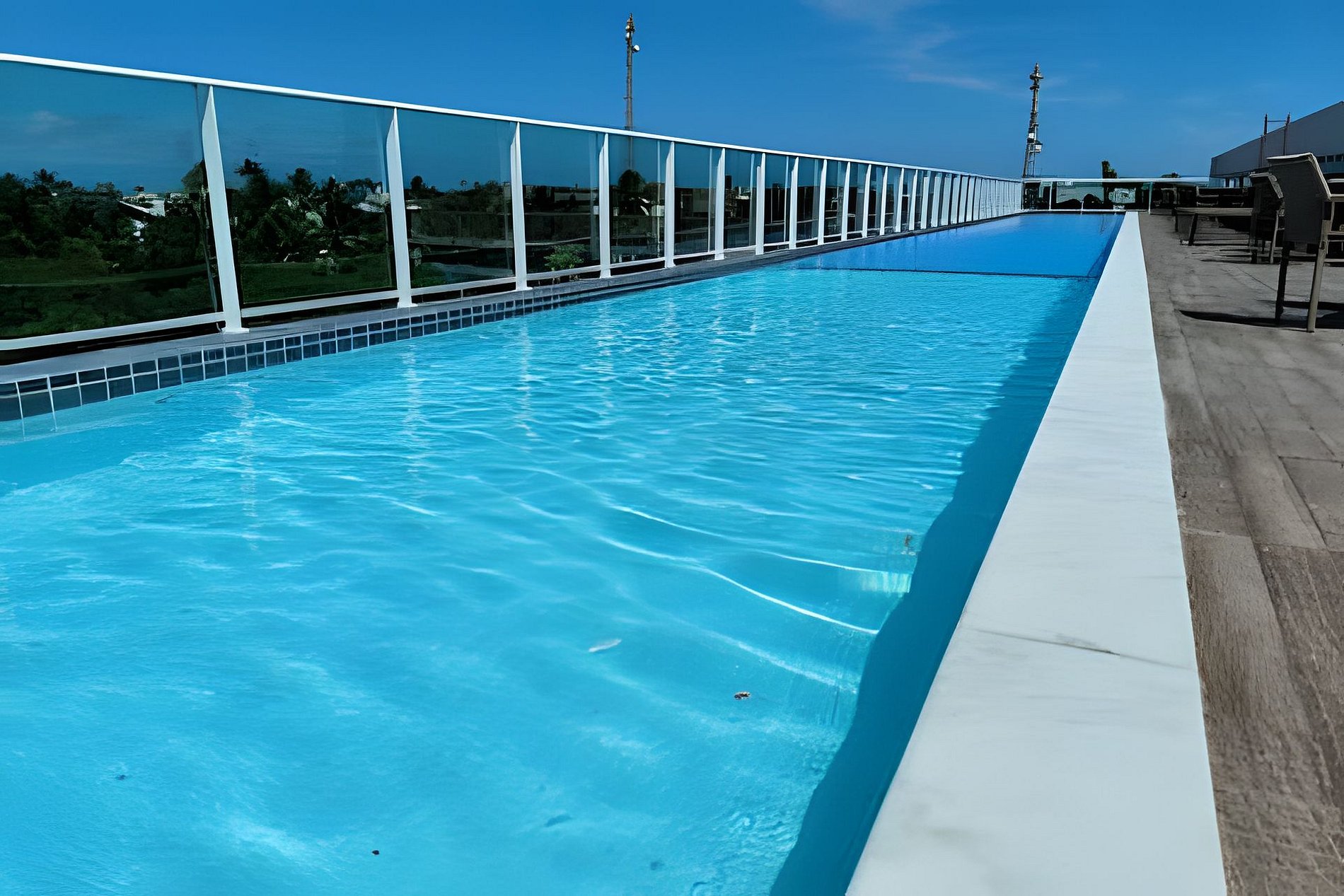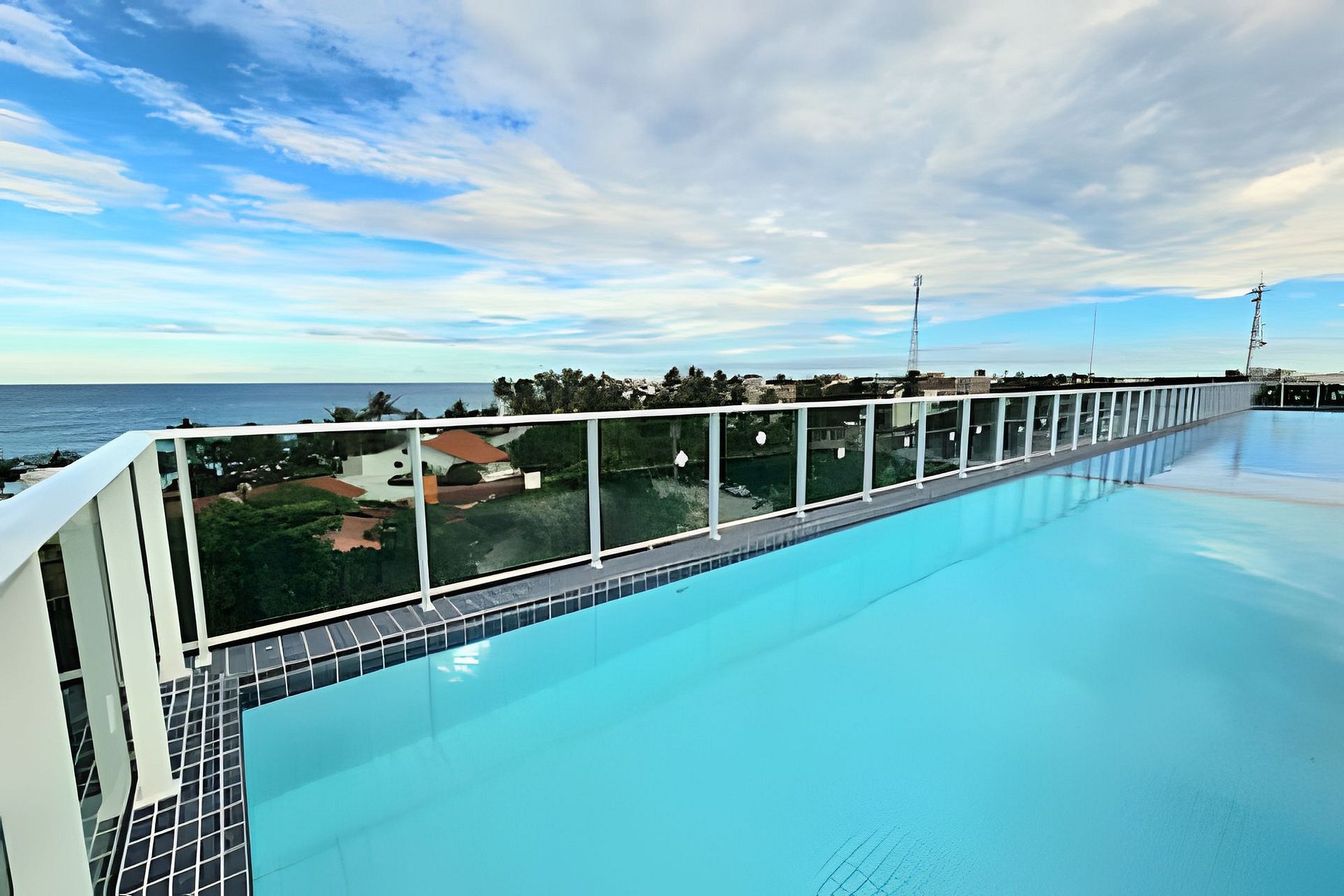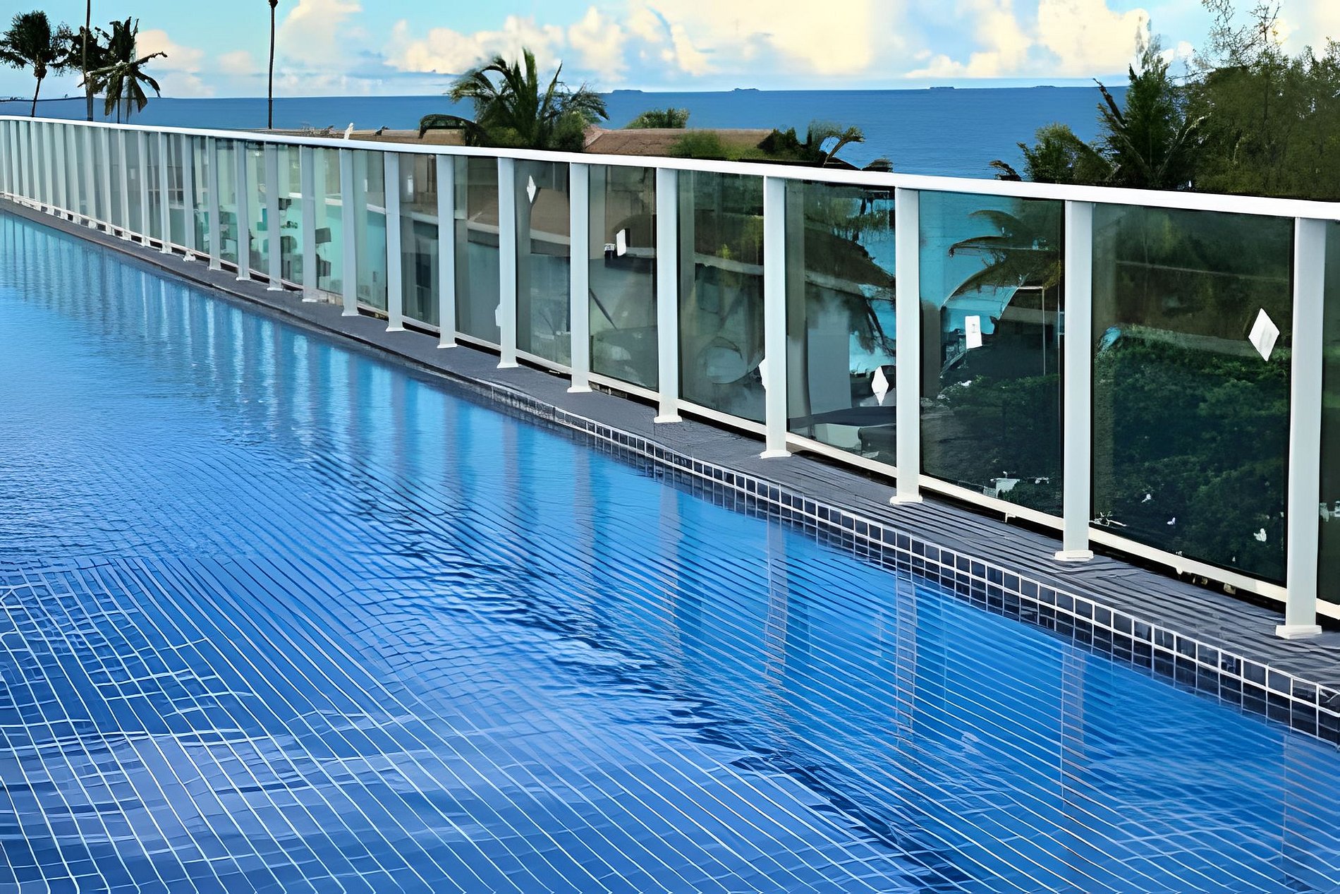 O prédio tem rooftop (cobertura) com a maior piscina de borda infinita de Porto de Galinhas, com vista para as tão famosas piscinas naturais e jangadas.