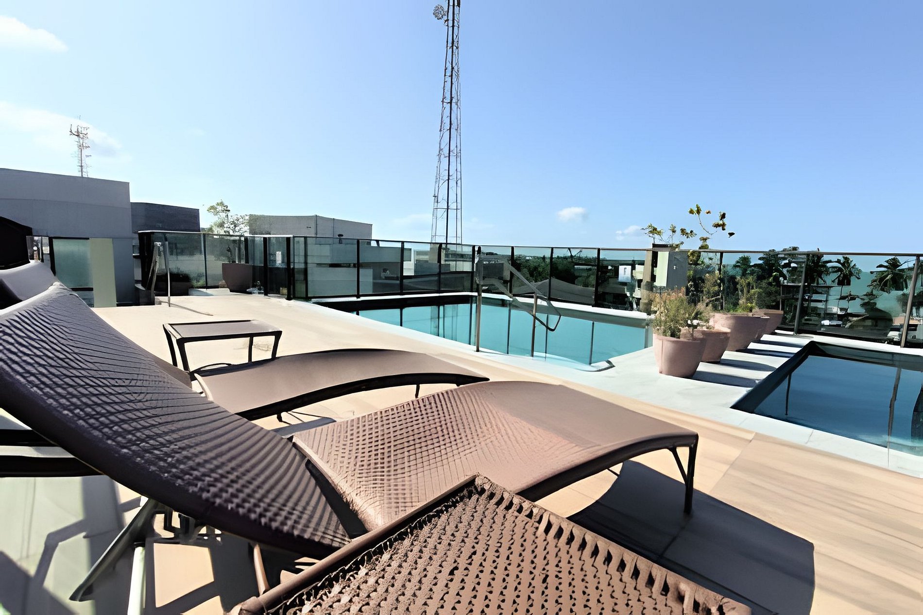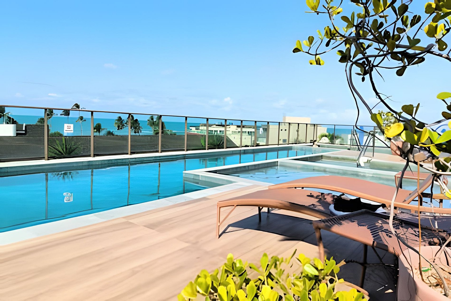 O Rooftop (cobertura) do prédio conta com um espaço fitness, salão de jogos, 2 churrasqueiras com espaço maravilhoso para desfrutar da linda vista da praia e uma área maravilhosa de piscinas e jacuzzis de hidromassagem de cair o queixo, com certeza após o passar um bom momento na praia você vai querer aproveitar a melhor piscina de Porto de Galinhas.