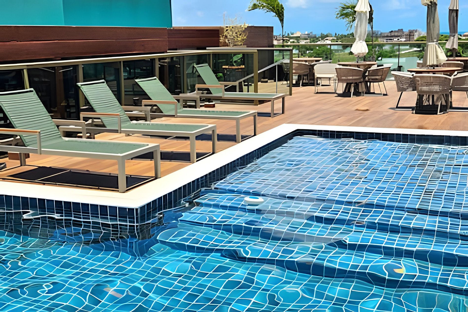 Localizado a 5 min de caminhada da praia, ao voltar para o prédio vocês poderão desfrutar da piscina maravilhosa localizada no Rooftop (cobertura), e preparem-se por que a vista de lá de cima é de tirar o fôlego!