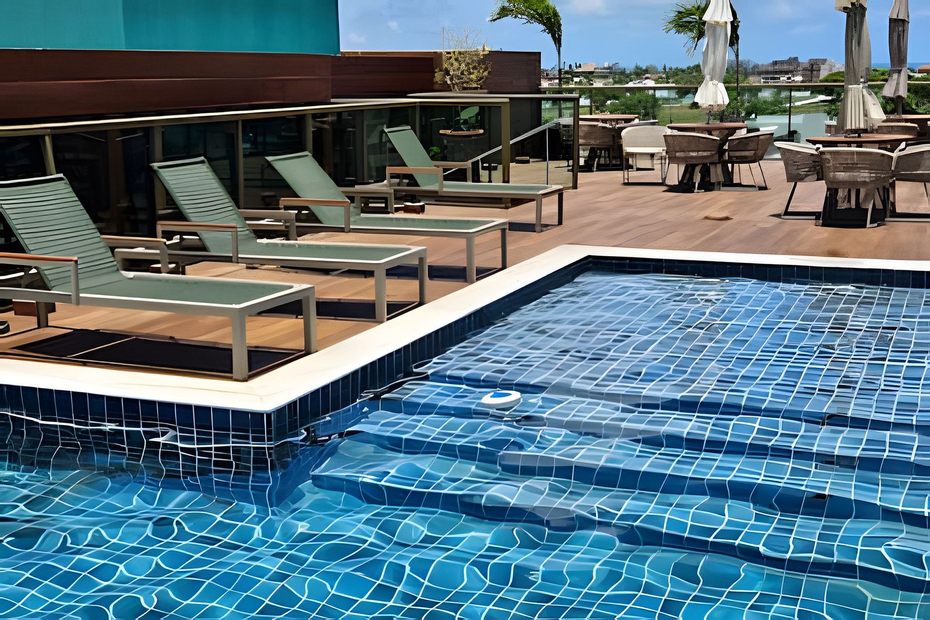 Localizado a 5 min de caminhada da praia, ao voltar para o prédio vocês poderão desfrutar da piscina maravilhosa localizada no Rooftop (cobertura), e preparem-se por que a vista de lá de cima é de tirar o fôlego!