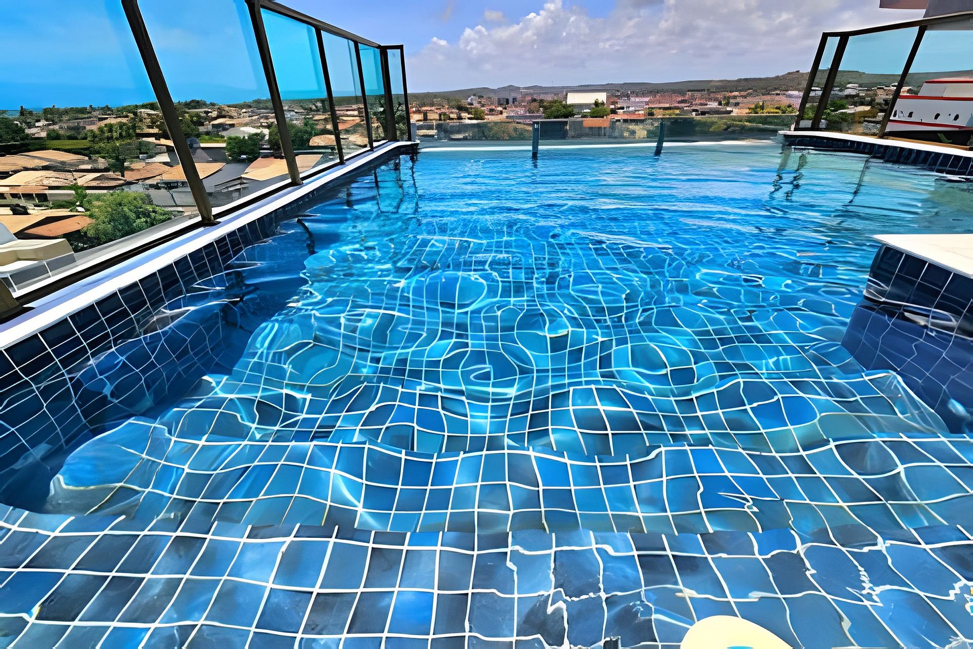 Localizado a 5 min de caminhada da praia, ao voltar para o prédio vocês poderão desfrutar da piscina maravilhosa localizada no Rooftop (cobertura), e preparem-se por que a vista de lá de cima é de tirar o fôlego!