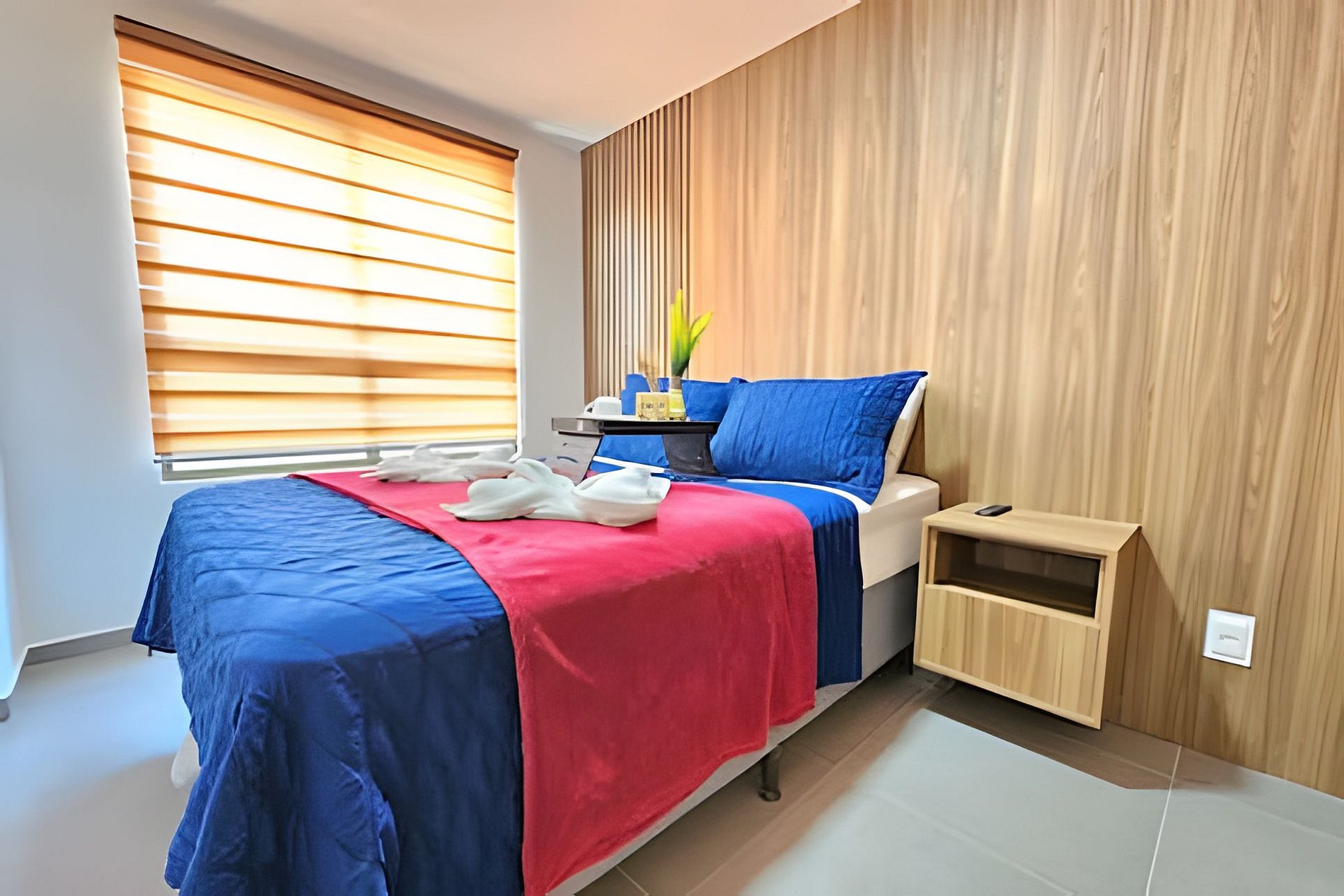 O apto foi pensado, projetado e equipado com itens de qualidade, acomoda até 4 pessoas. dispõe de 1 cama de casal e 1 sofá cama. Apto amplo de 1 quarto, sala, cozinha equipada e sacada privativa.