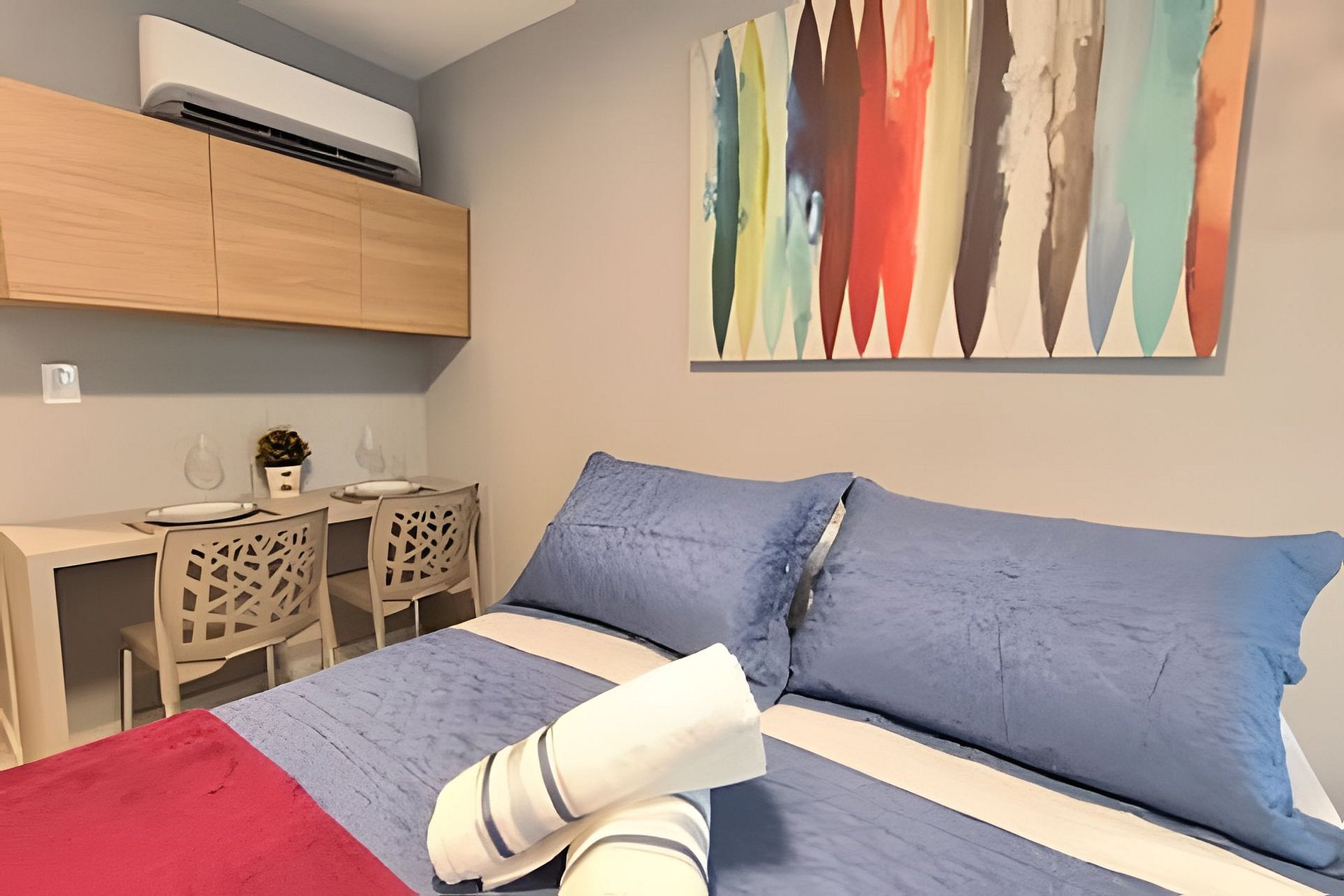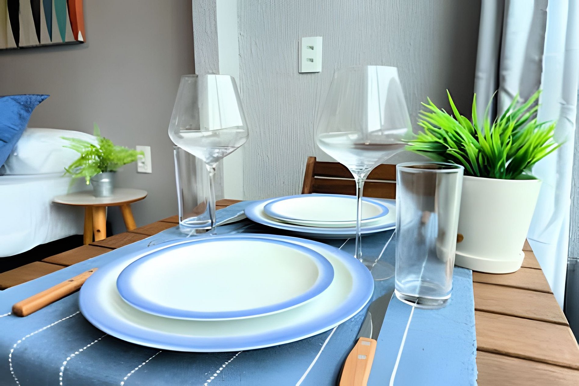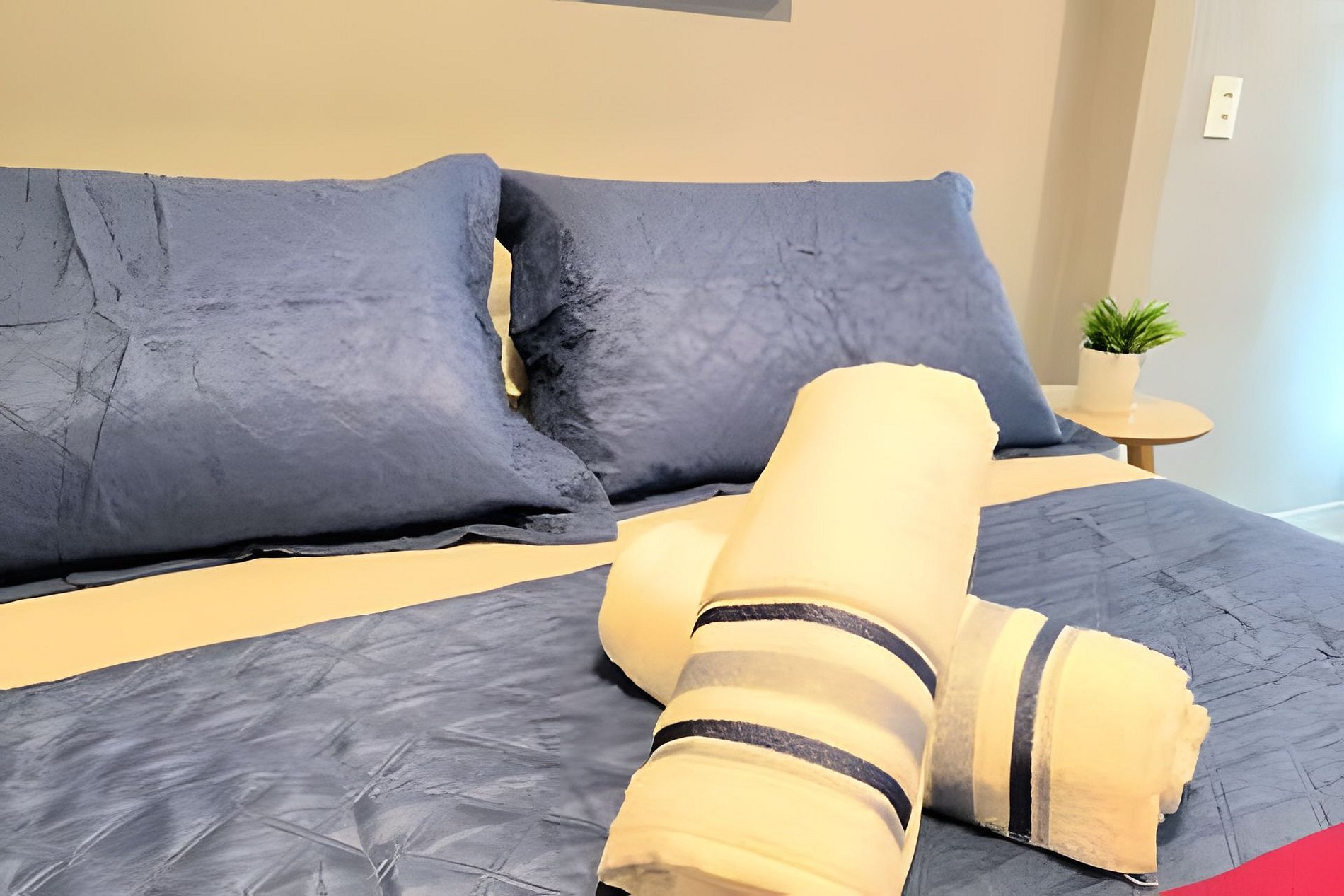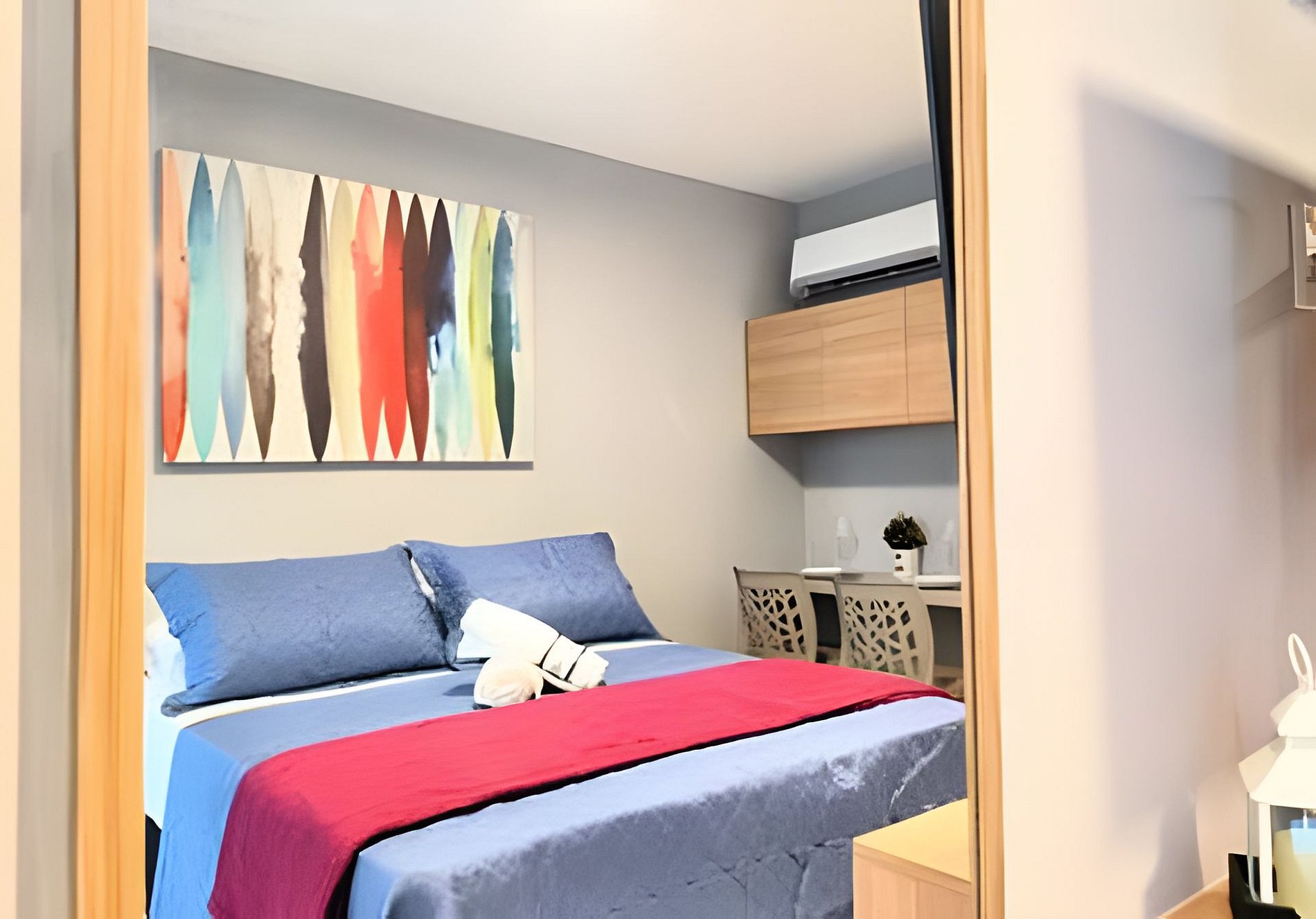 O espaço é formidável para o casal ou no máximo 4 pessoas (1 cama casal, 1 cama auxiliar solteiro e 1 puff dobrável/colchão). Apartamento completo e confortável, muito bem decorado e com toda comodidade. Os melhores eletrodomésticos, incluindo sanduicheira, liquidificador, air fryer, entre outros. Tudo novo esperando por você.