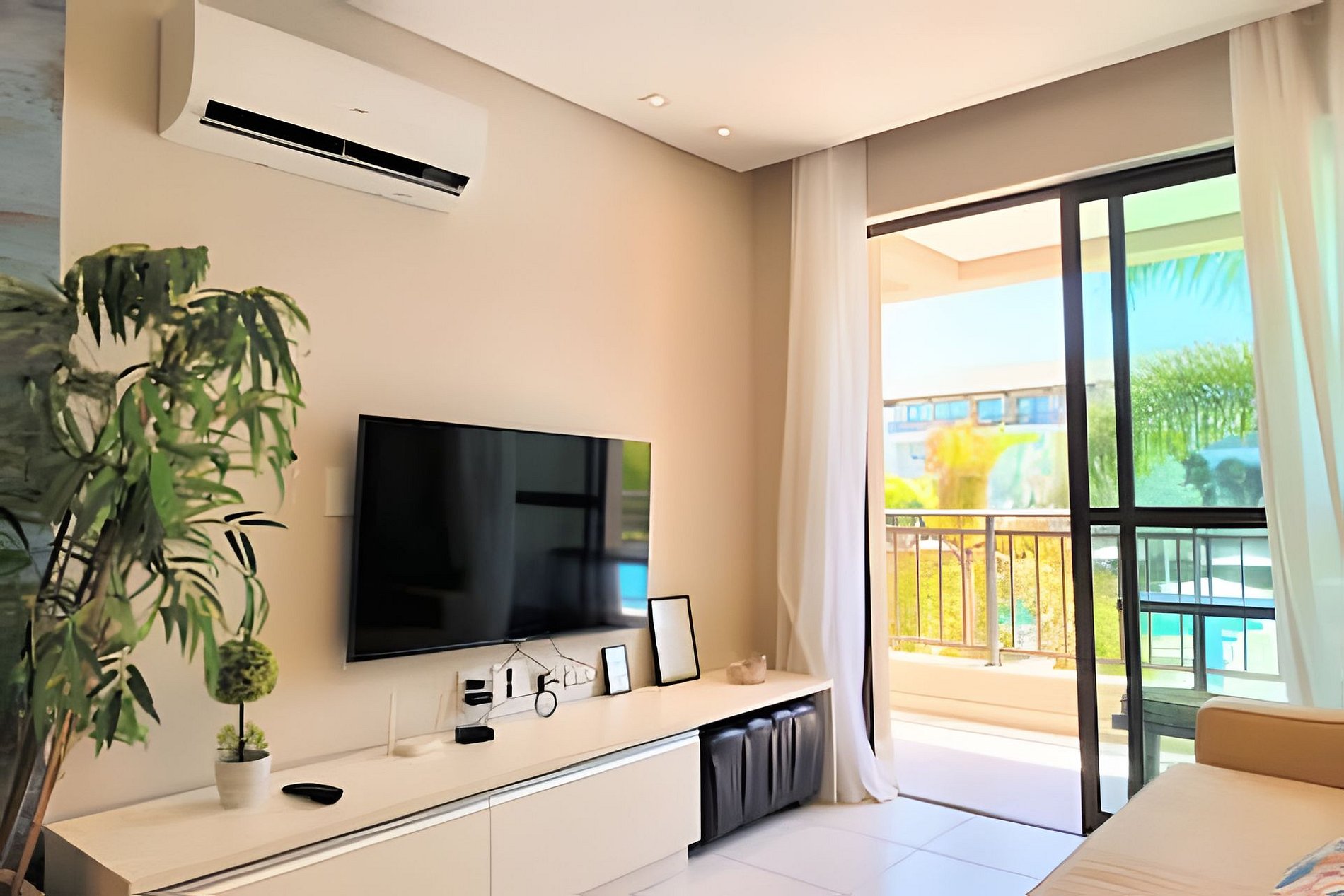 Esse é um Apartamento completo dentro de um Resort, tudo muito bem cuidado e novo, colchão de alta qualidade e ar condicionados silenciosos, temos todos os utensílios de qualidade do cotidiano de uma casa normal. Acomoda até 7 pessoas. 1 cama casal 2 camas solteiros e 2 camas auxiliar solteiro 1 sofá cama.