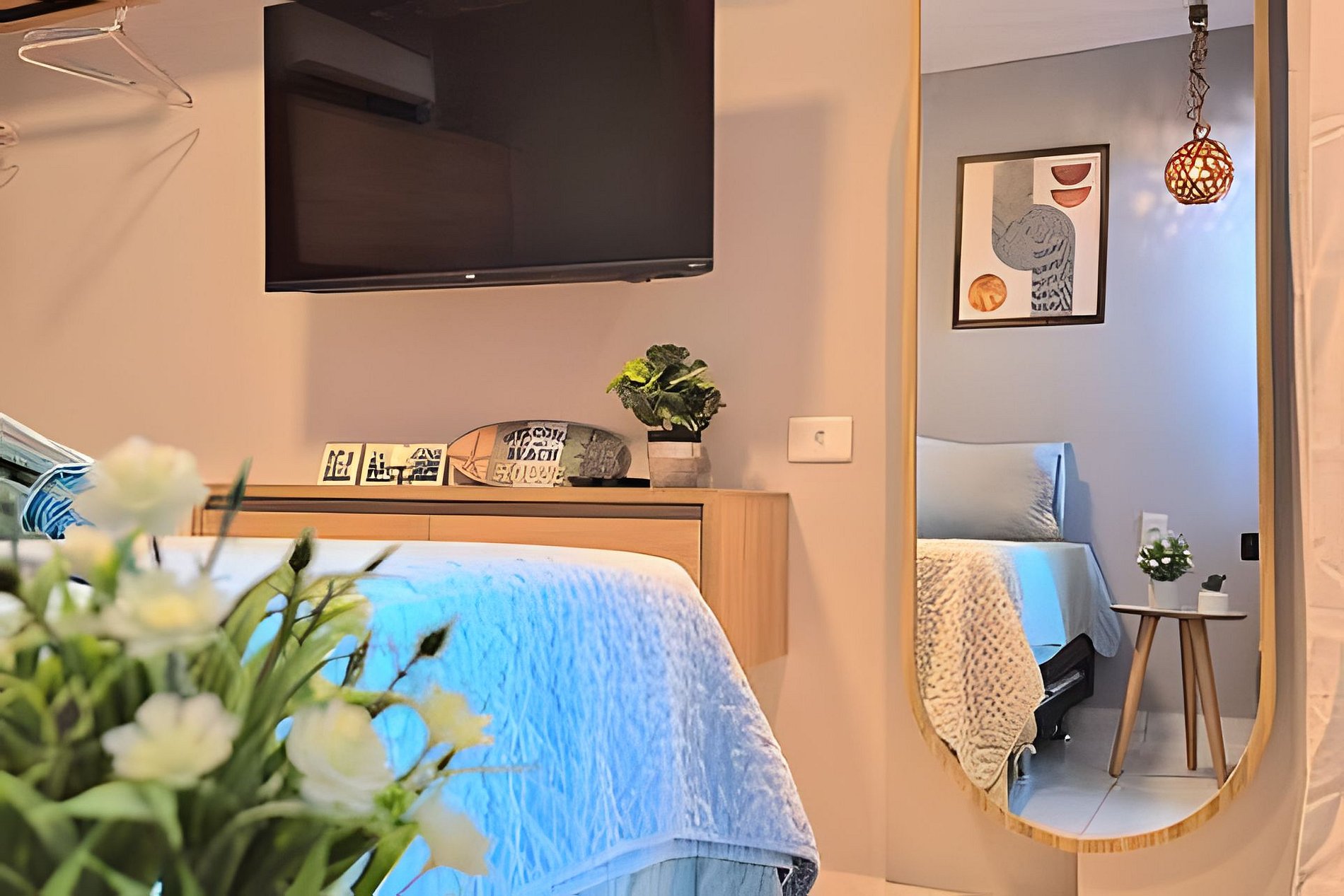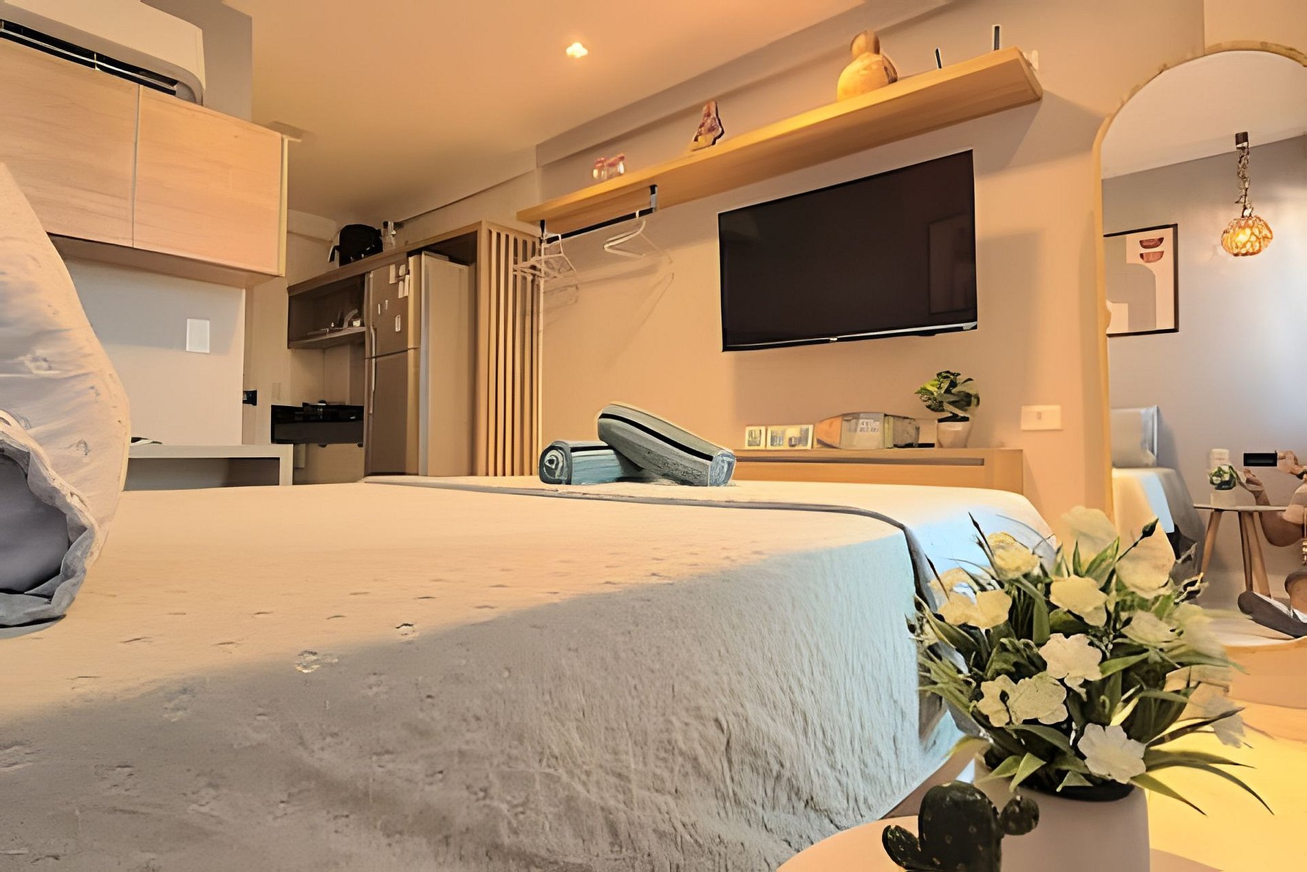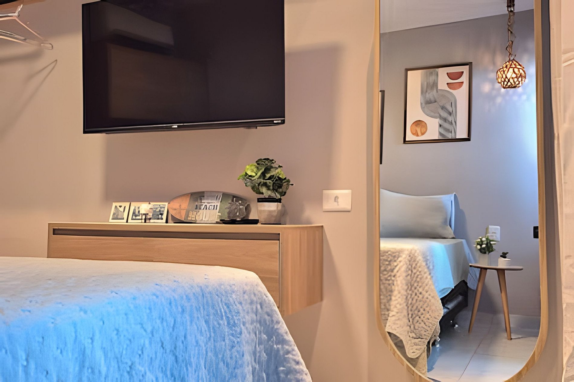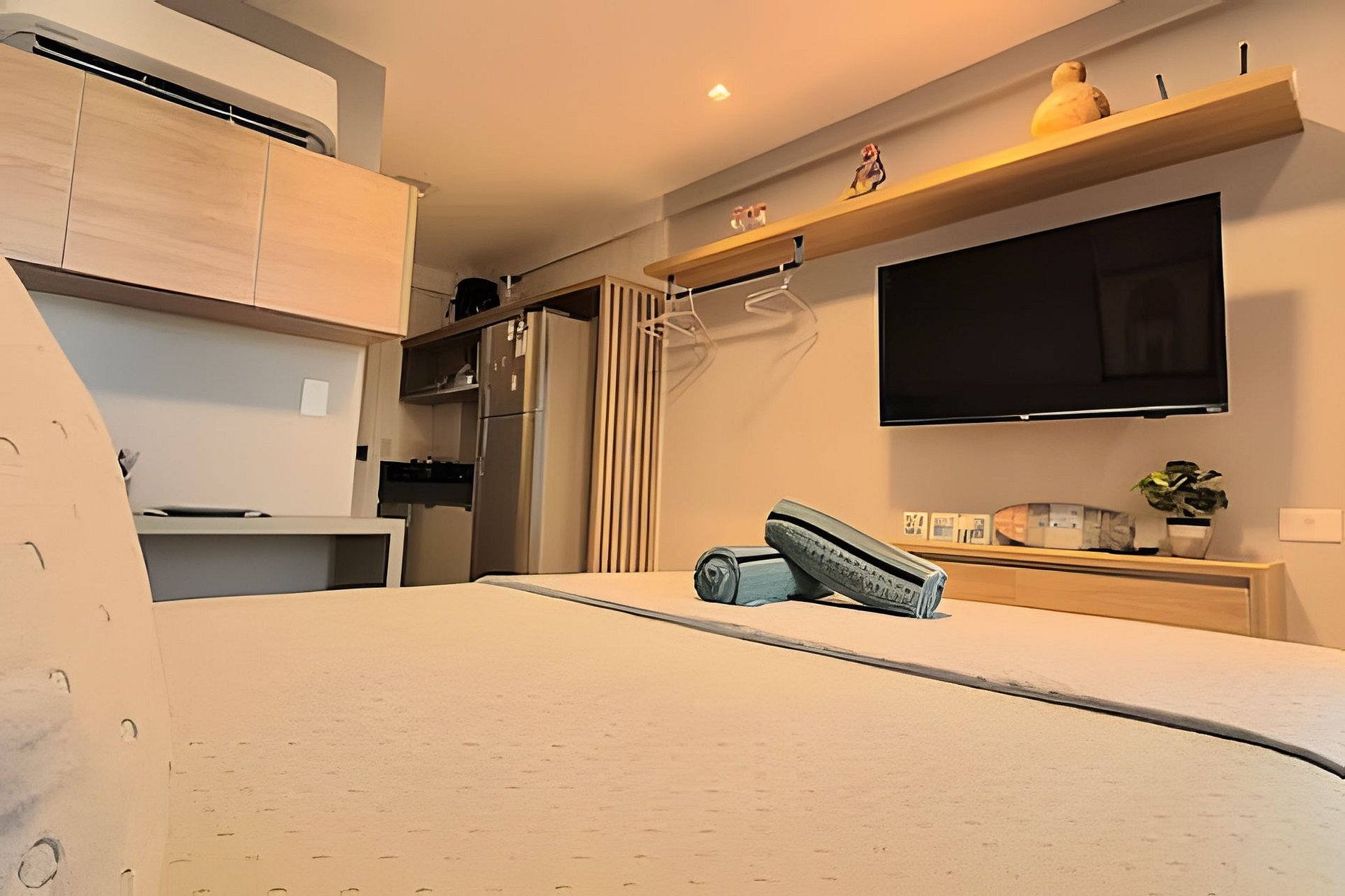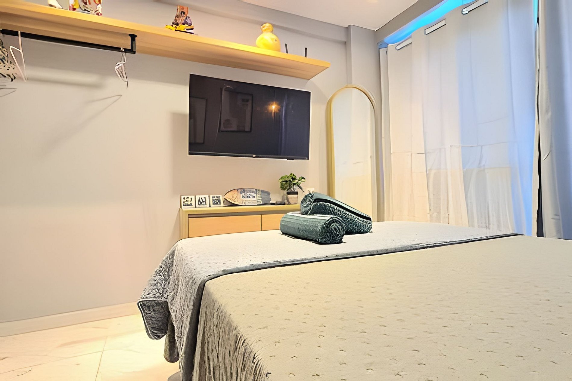 O espaço é formidável para o casal ou no máximo 3 pessoas (1 cama casal, 1 cama auxiliar solteiro ). Apartamento completo e confortável, muito bem decorado e com toda comodidade. Os melhores eletrodomésticos, incluindo sanduicheira, liquidificador, air fryer, entre outros. Tudo novo esperando por você.