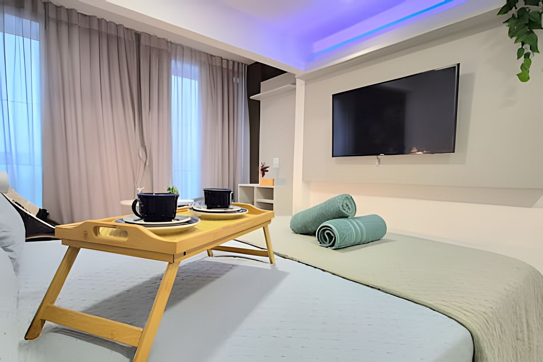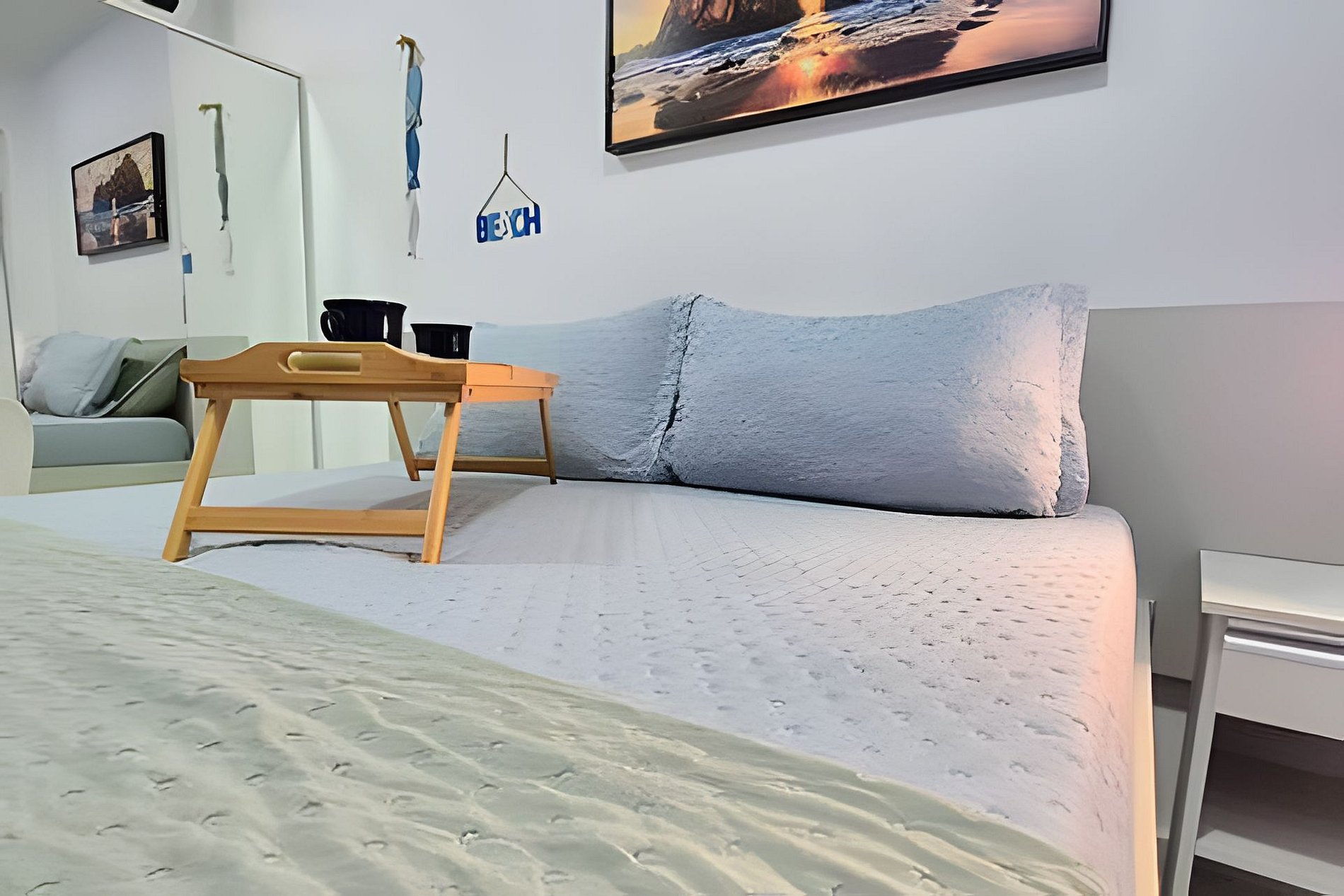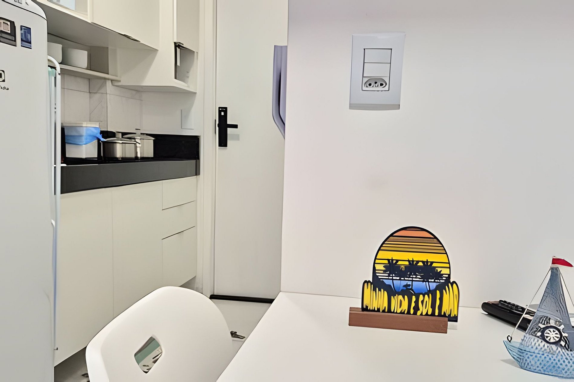 O espaço é formidável para o casal ou no máximo 3 pessoas, apartamento completo e com toda comodidade. Os melhores eletrodomésticos, incluindo sanduicheira, liquidificador, entre outros. Tudo novo esperando por você. Existe uma cama de solteiro que corre por baixo da de casal.