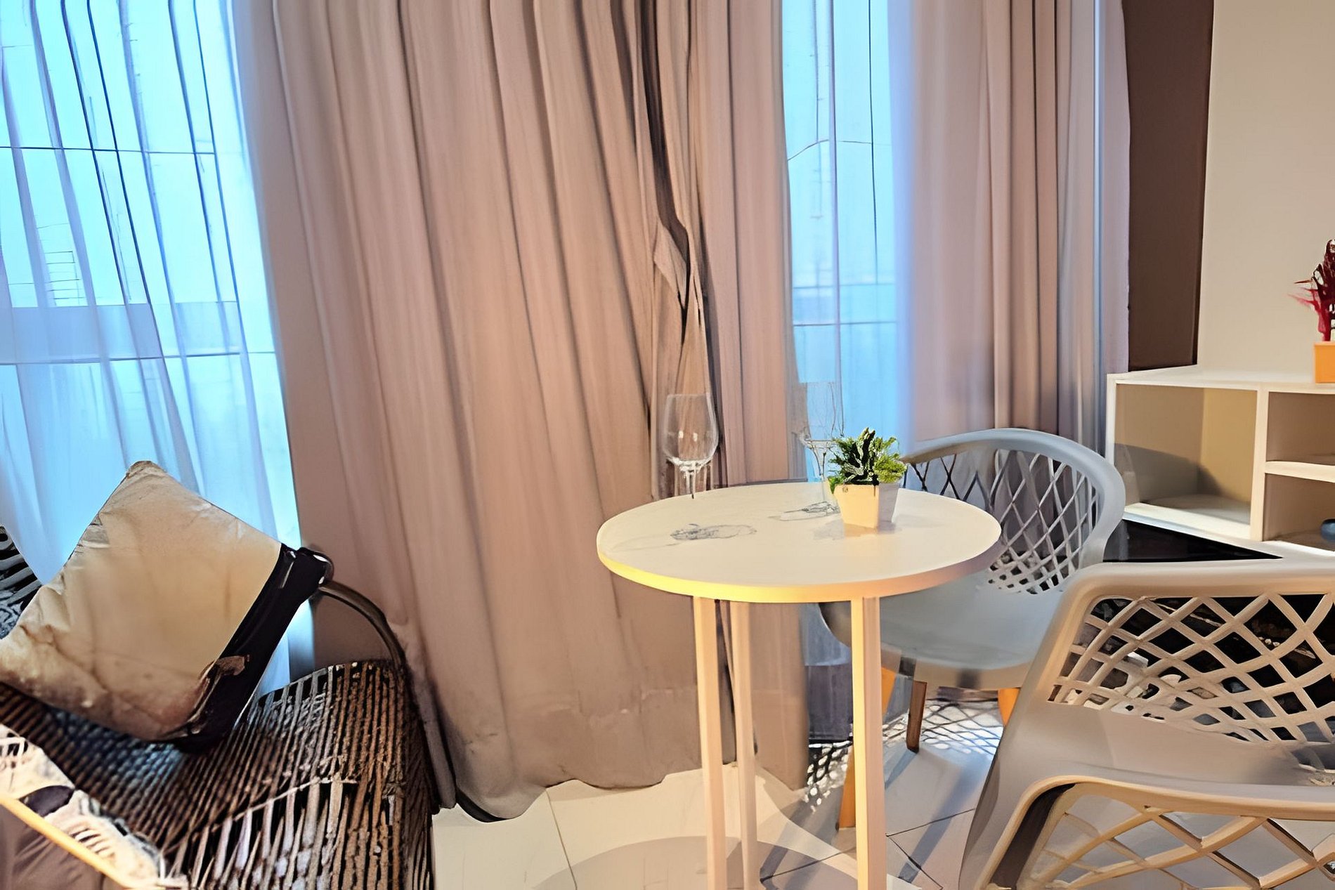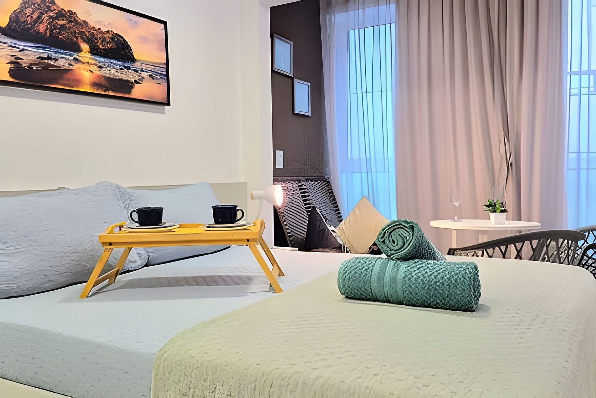 O espaço é formidável para o casal ou no máximo 3 pessoas, apartamento completo e com toda comodidade. Os melhores eletrodomésticos, incluindo sanduicheira, liquidificador, entre outros. Tudo novo esperando por você. Existe uma cama de solteiro que corre por baixo da de casal.
