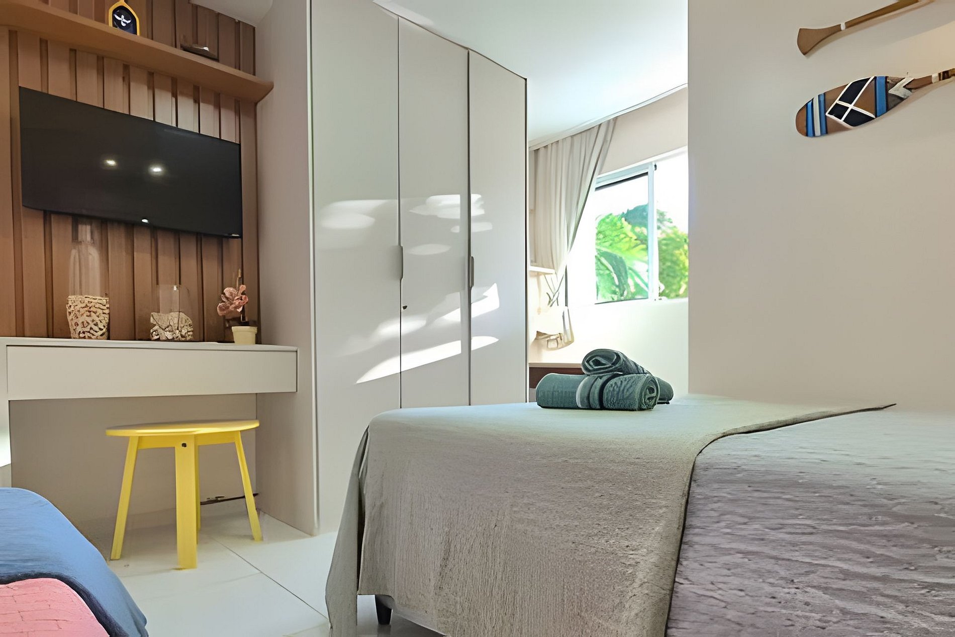 Apartamento com 2 quartos para até 6 pessoas, a poucos minutos do centro de Porto de Galinhas. Conforto, ar-condicionado, cozinha equipada e excelente localização para aproveitar as praias e o comércio local.