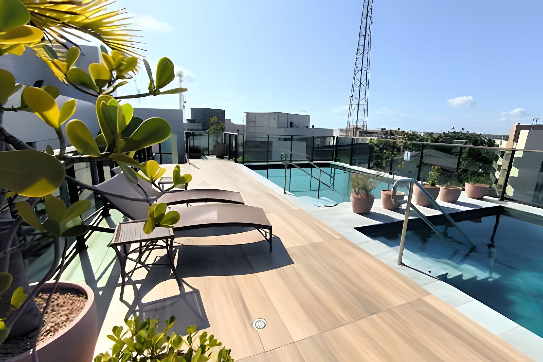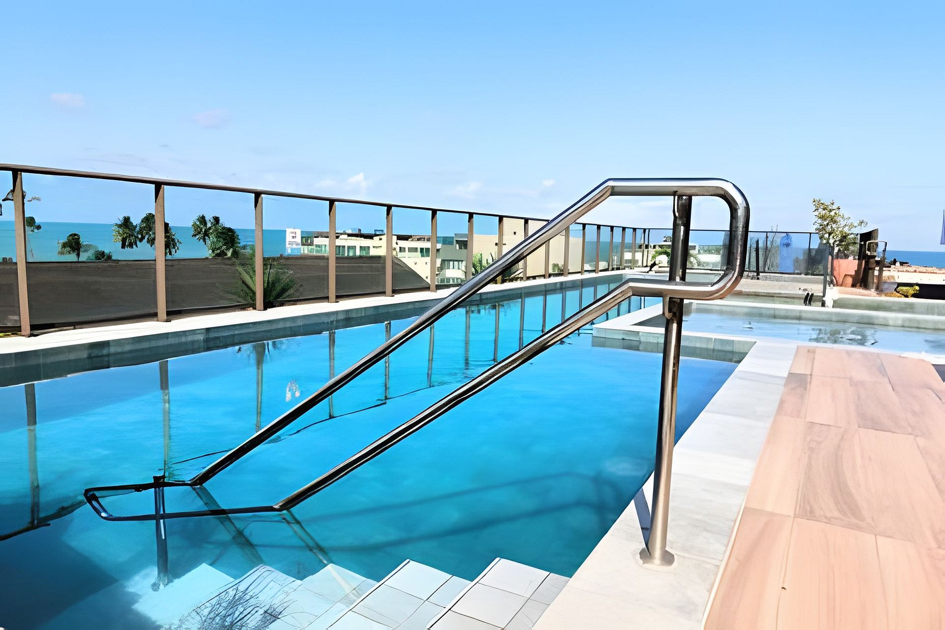 O Rooftop (cobertura) do prédio conta com um espaço fitness, salão de jogos, 2 churrasqueiras com espaço maravilhoso para desfrutar da linda vista da praia e uma área maravilhosa de piscinas e jacuzzis de hidromassagem de cair o queixo, com certeza após o passar um bom momento na praia você vai querer aproveitar a melhor piscina de Porto de Galinhas.