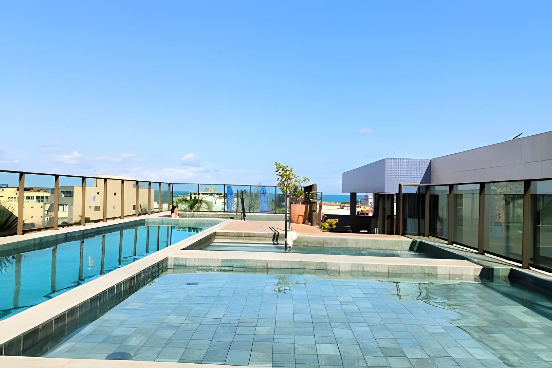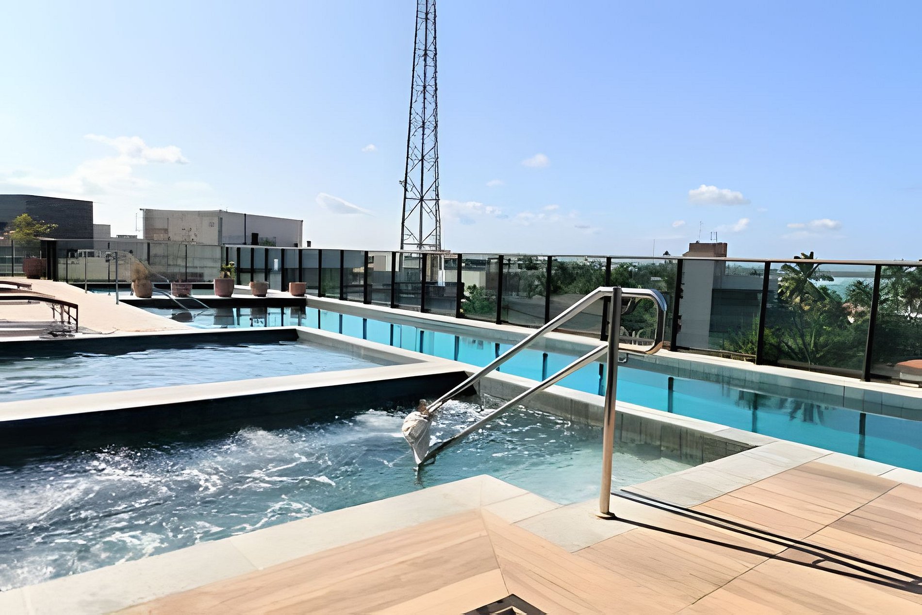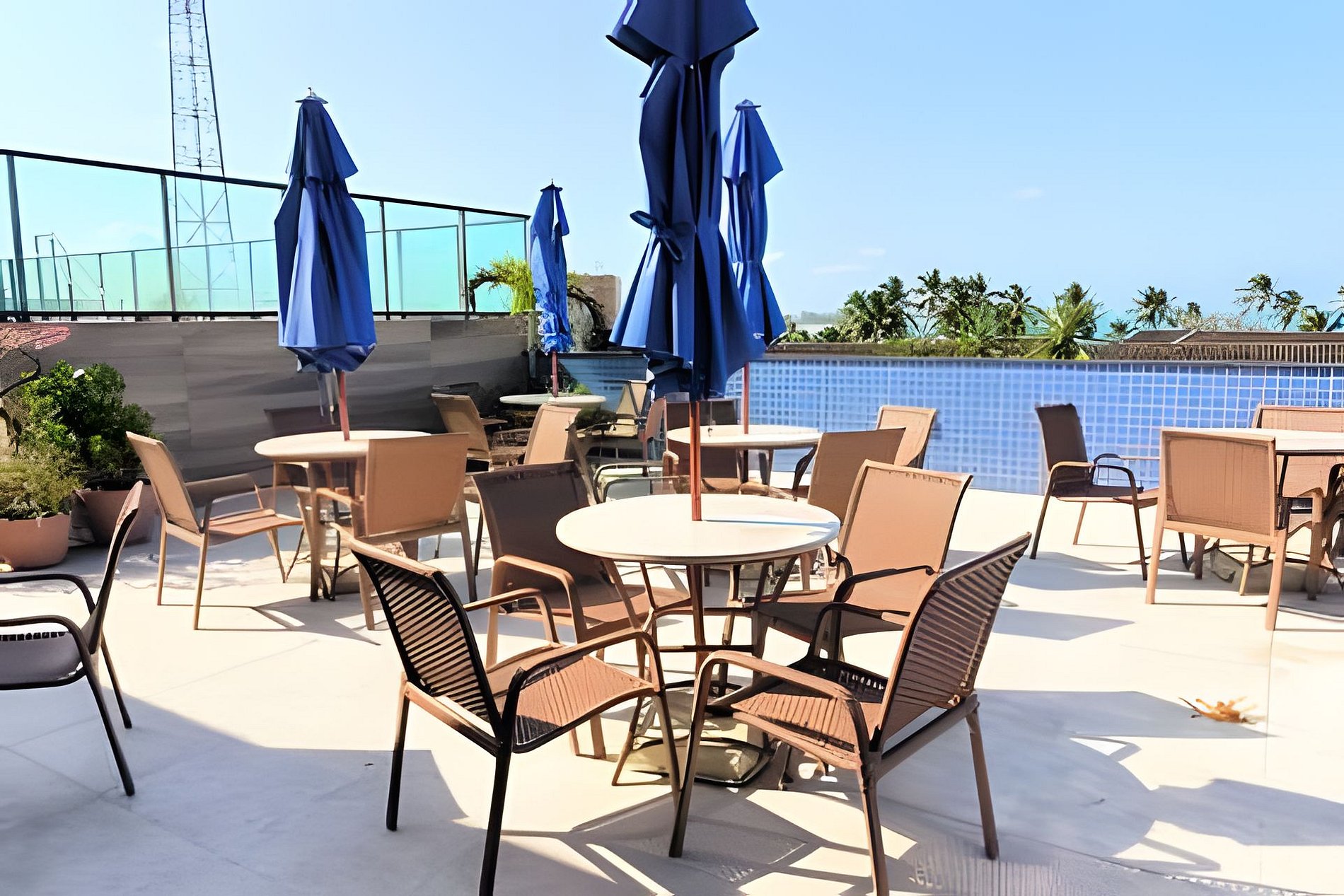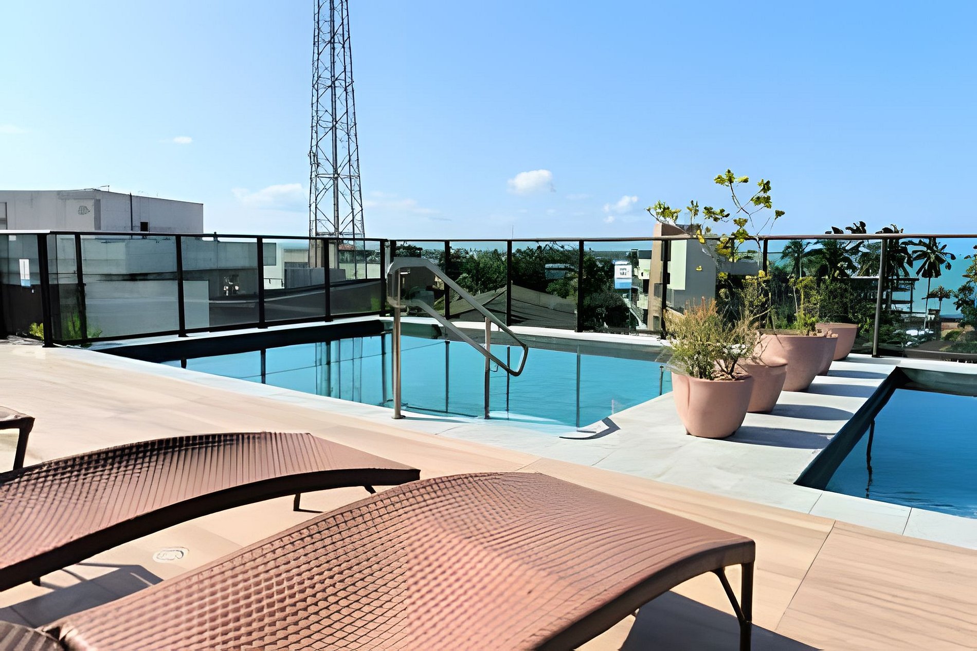 O Rooftop (cobertura) do prédio conta com um espaço fitness, salão de jogos, 2 churrasqueiras com espaço maravilhoso para desfrutar da linda vista da praia e uma área maravilhosa de piscinas e jacuzzis de hidromassagem de cair o queixo, com certeza após o passar um bom momento na praia você vai querer aproveitar a melhor piscina de Porto de Galinhas.